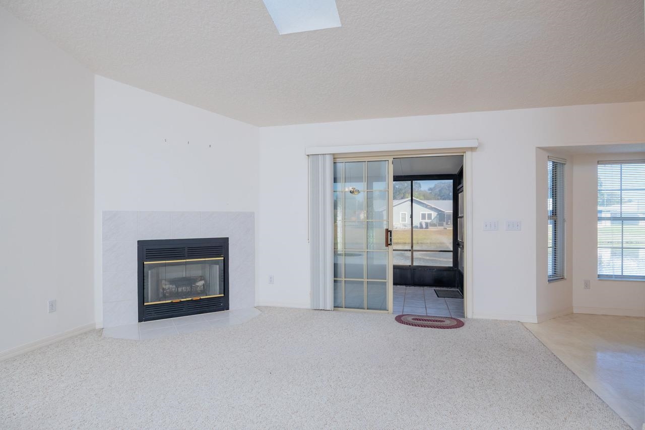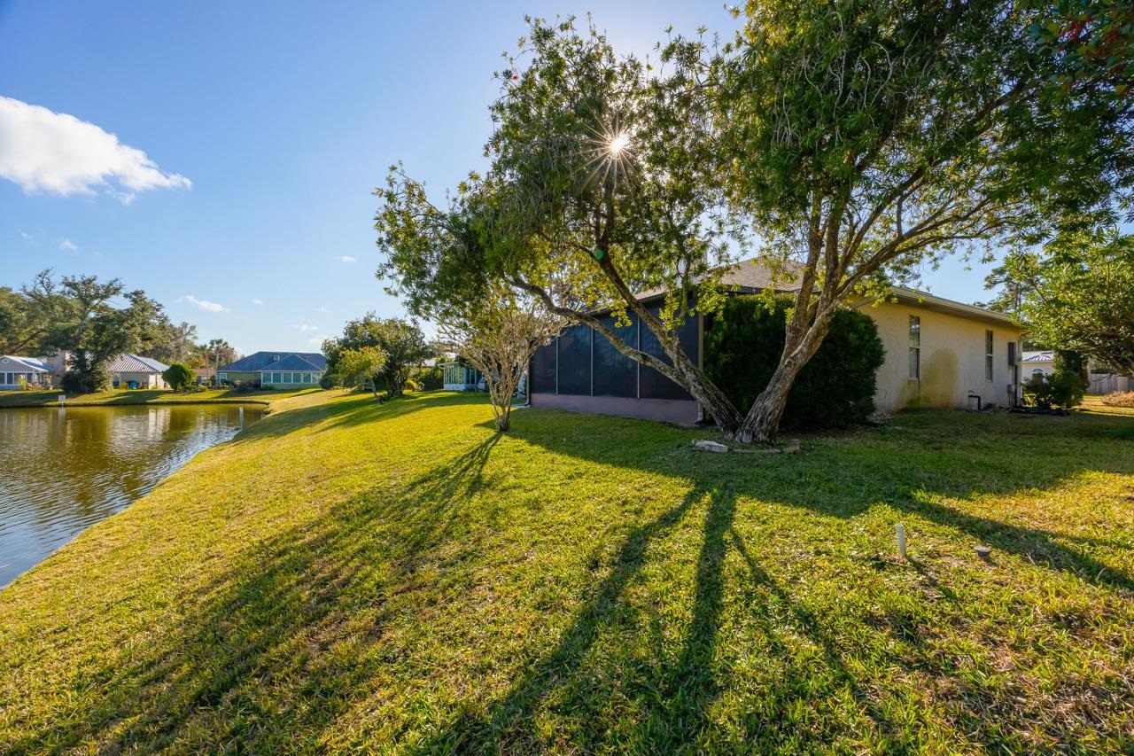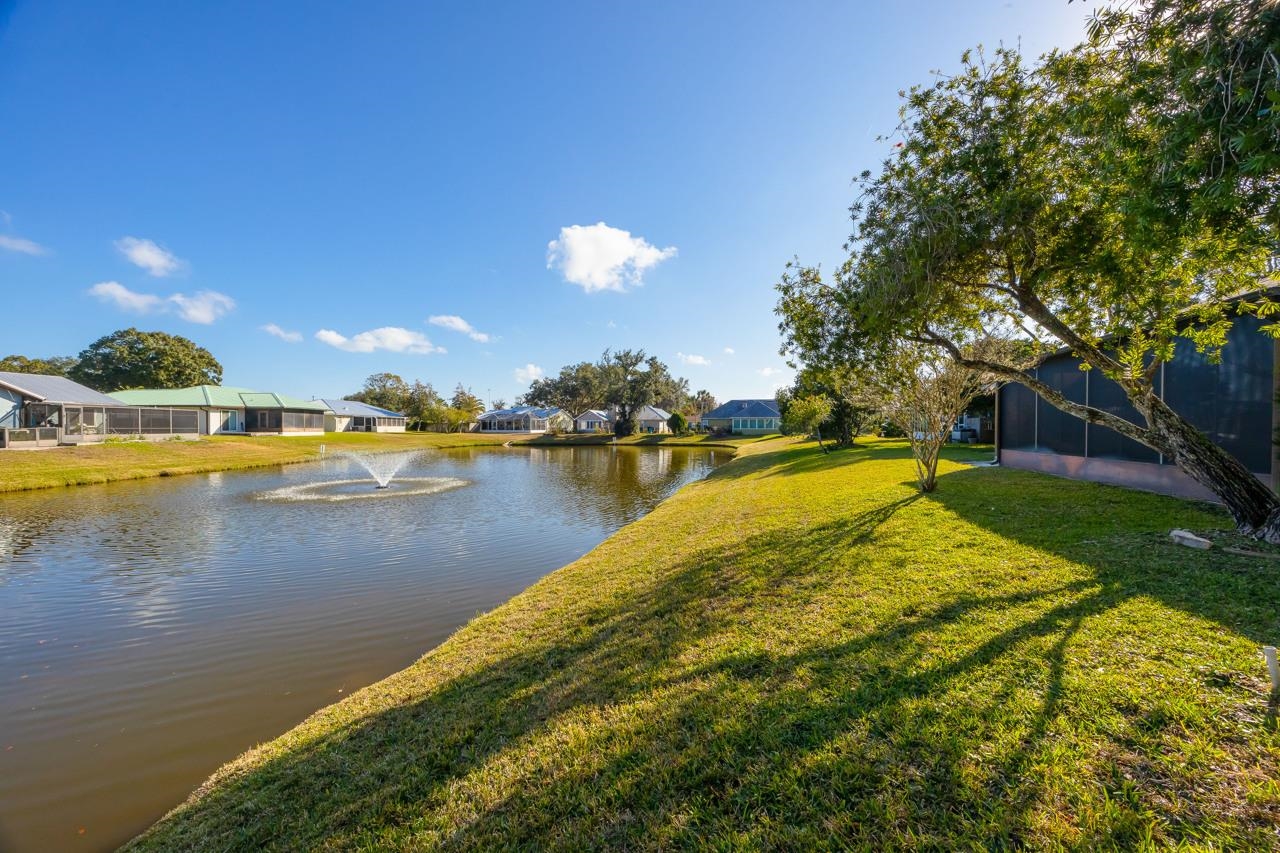Peaceful lakefront living in this 3-bedroom, 2-bath home built in 1995, located in the quiet, well-established community of Captains Pointe. The open floor plan offers a bright, airy feel with a comfortable flow between the living, dining, and kitchen areas—ideal for relaxing or entertaining. A cozy wood-burning fireplace anchors the main living space, adding warmth and charm. Large windows fill the home with natural light while framing beautiful lake views. Additionally, there's a large, screened patio for lakeside chats, morning meditations or evening libations. Thoughtfully maintained and well kept, with updated plumbing for added reliability and peace of mind. Excellent potential to add value through minor cosmetic enhancements. Perfect for buyers seeking tranquility, waterfront views, and the opportunity to personalize a well-cared-for home in a serene setting.