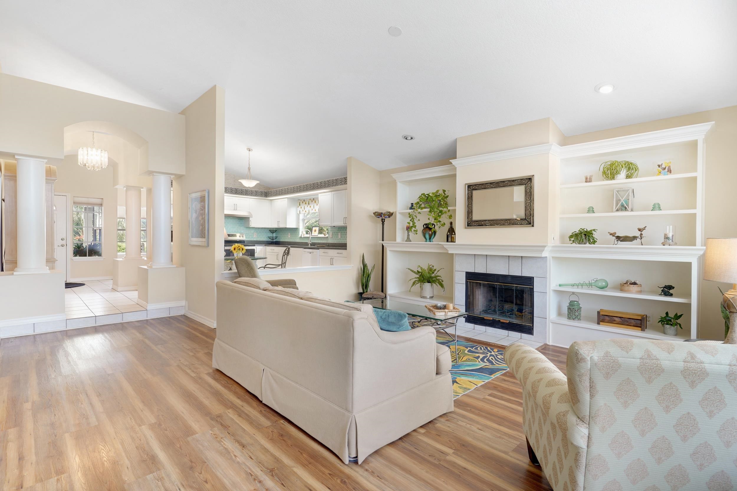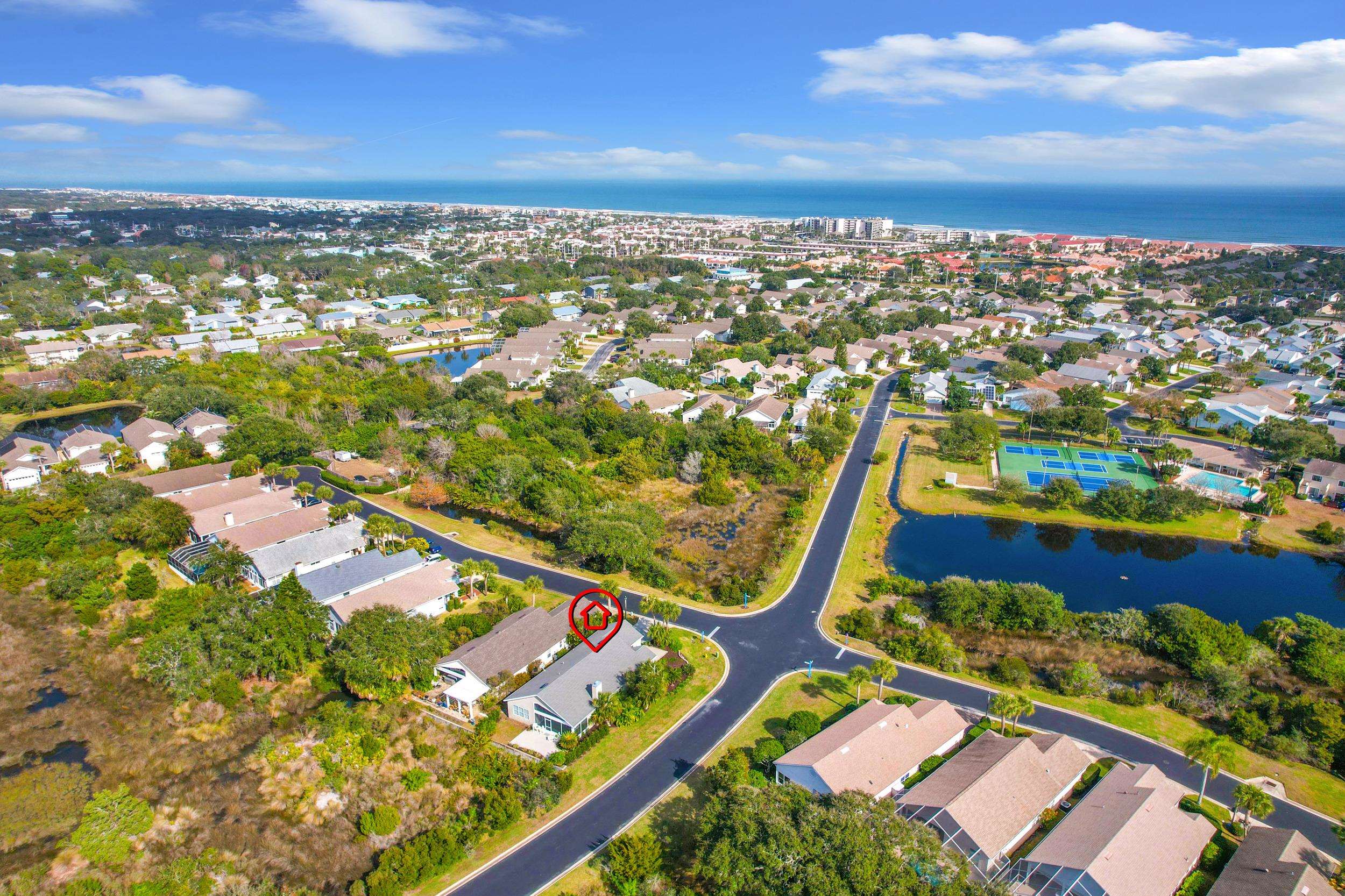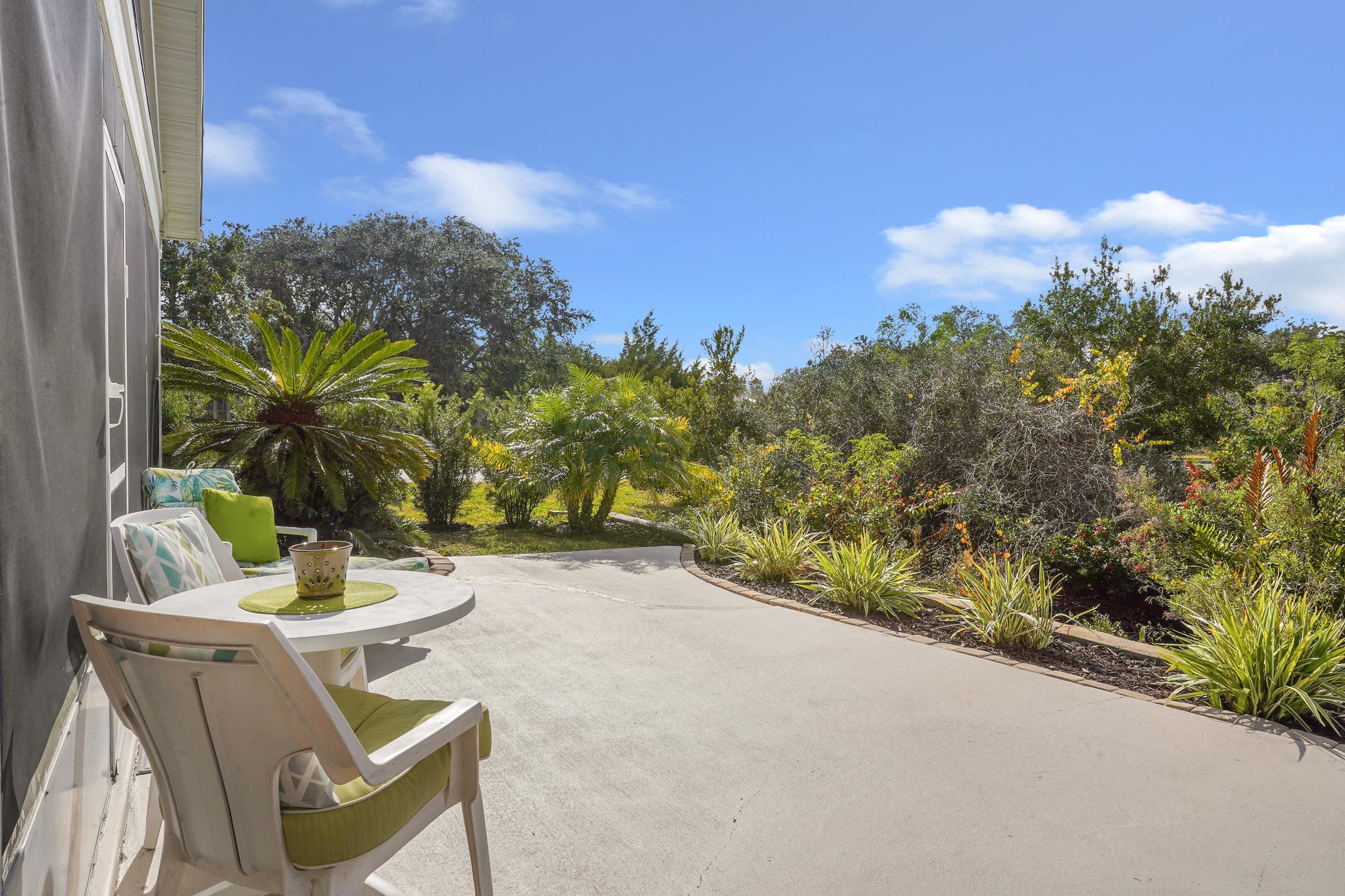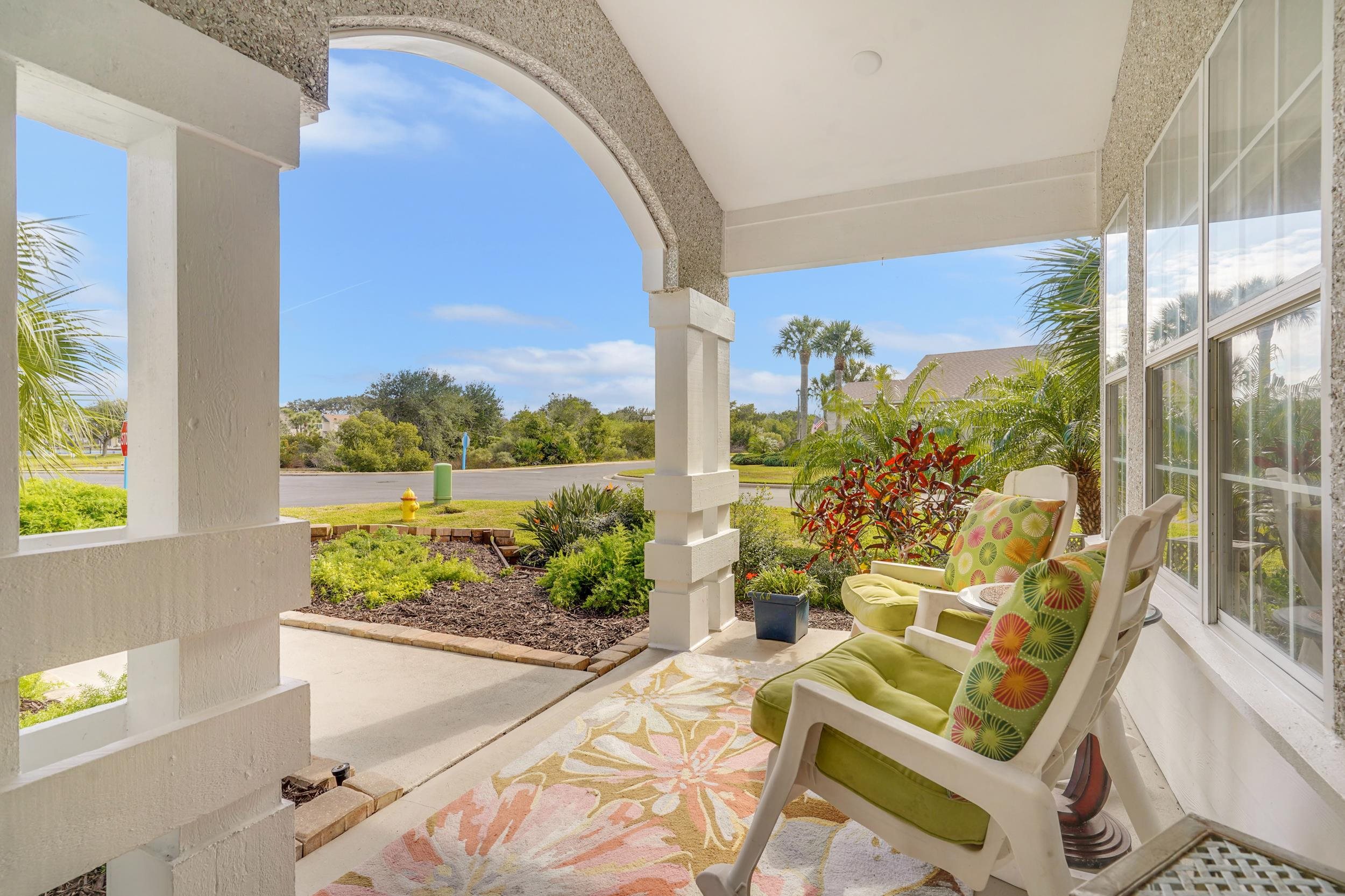 Nestled within a gated community on prestigious Anastasia Island, this refined 2-bedroom, 2-bath residence offers a rare blend of privacy, comfort, and coastal elegance. Positioned on a desirable corner lot and surrounded by a serene preserve, the home provides a tranquil retreat with lush natural views and exceptional seclusion. Soaring ceilings and thoughtfully designed living spaces showcase tile flooring, a separate dining room, an eat-in kitchen, and a stylish wet bar ideal for entertaining. Outdoor living is elevated with a spacious screened porch and private back patio overlooking the preserve. Residents enjoy access to upscale community amenities including a pool, tennis courts, and 3 new pickleball courts, all just a short stroll from the pristine beaches of Anastasia Island.