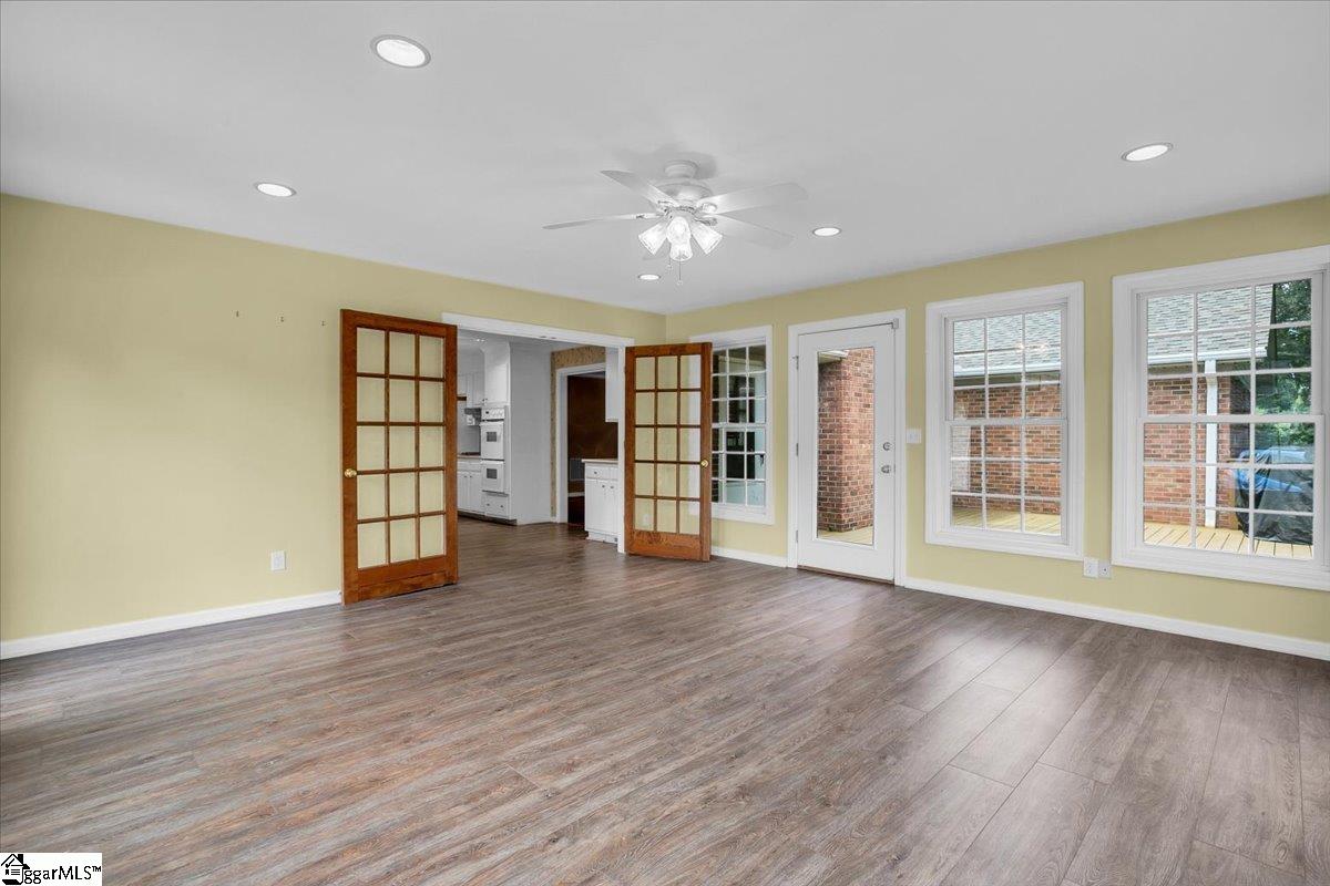 Welcome to 17 Seabury Dr. , a beautifully maintained 5-bedroom, 3. 5-bathroom ranch-style home with a convenient in-law suite, perfectly located on the Eastside of town. With easy access to I-85, I-385, Pelham Road, and Haywood Mall, this property offers the perfect blend of comfort, convenience, and amenities. This well-built home boasts a spacious, single-floor layout, ideal for family living. The formal living room and dining room flow seamlessly into the kitchen, which is equipped with all the essentials. The kitchen leads to the great room, featuring a stunning custom stone fireplace with ventless gas logs, perfect for cozying up on chilly evenings. The main part of the house features four spacious bedrooms, including a large primary suite with a walk-in closet and an en-suite bathroom with dual sinks and a shower. Three additional bedrooms and another full bathroom are located down the hall. A convenient laundry room with a half bathroom is situated between the kitchen and the garage. The home also features a huge sun room, perfect for relaxing and enjoying the beautiful surroundings. The sun room is heated and cooled, making it a comfortable space to enjoy year-round. A large deck overlooks the beautifully maintained yard, complete with a shed that conveys with the property. The garage has been converted into a comfortable in-law suite, complete with a great room, bedroom, kitchenette, and a full bathroom. With a separate entrance, this space offers the perfect solution for extended family or guests. The in-law suite can easily be converted back into a garage if desired. The home has undergone recent upgrades, including a new roof (3-4 years old) and a new main HVAC system (2 years old). The gas water heater features a recirculating pump, ensuring a constant supply of hot water. Overall, this stunning Eastside ranch offers the perfect combination of comfort, convenience, and amenities. Don't miss out on this incredible opportunity to make 17 Seabury Dr. your dream home!