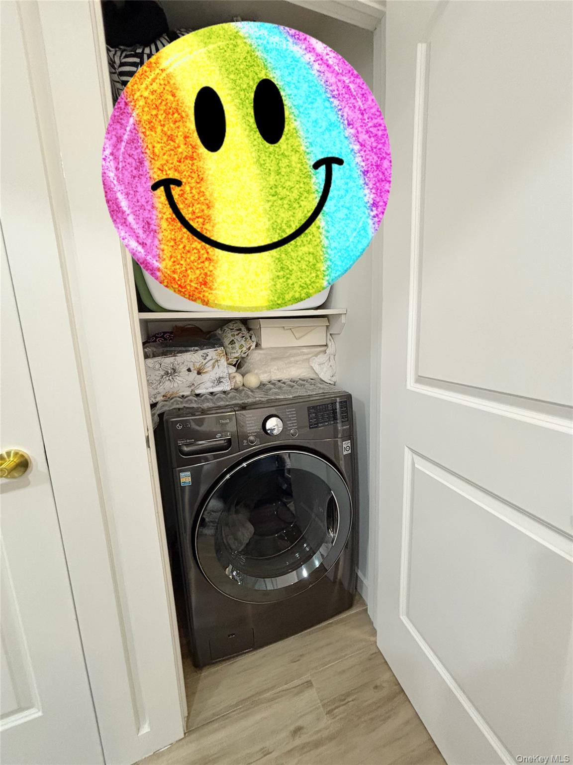 No transfer taxes! Low property taxes $3580/year. Low common charge $324. 72/month. Welcome to this spacious one-bedroom, one-bathroom, top floor corner unit, modern condominium located at 7065 Queens Blvd Woodside. The sleek, modern layout of this home highlights large, floor-to-ceiling windows that fills the living area and bedroom with natural light, private balcony with a beautiful Manhattan view, high ceilings that enhance the sense of space throughout the home, an in-unit washer and dryer for extra convenience, and a modern kitchen complete with a stylish counter island, perfect for preparing meals, entertainment, etc, and contains stainless appliances and a range hood. The bathroom is clean and polished, featuring a floating sink with an attached mirror, an elegant bathtub, toilet, and storage compartment. The bedroom includes a well-sized built-in closet and provides plenty of room for comfortable living . Residents are greeted by a grand and open lobby. The building offers a courtyard, gym, bike storage, package room, a daytime doorman, a virtual doorman, intercom system, and indoor parking available for purchase or rent. Enjoy easy access to a variety of everyday services, including local supermarkets, restaurants, shops, and more, plus excellent transit options providing a convenient NYC commute. Including LIRR and 7, E, F, M, R train and multiple buses. Connect easily to major highways, 8 mins to LGA airport. A must see!