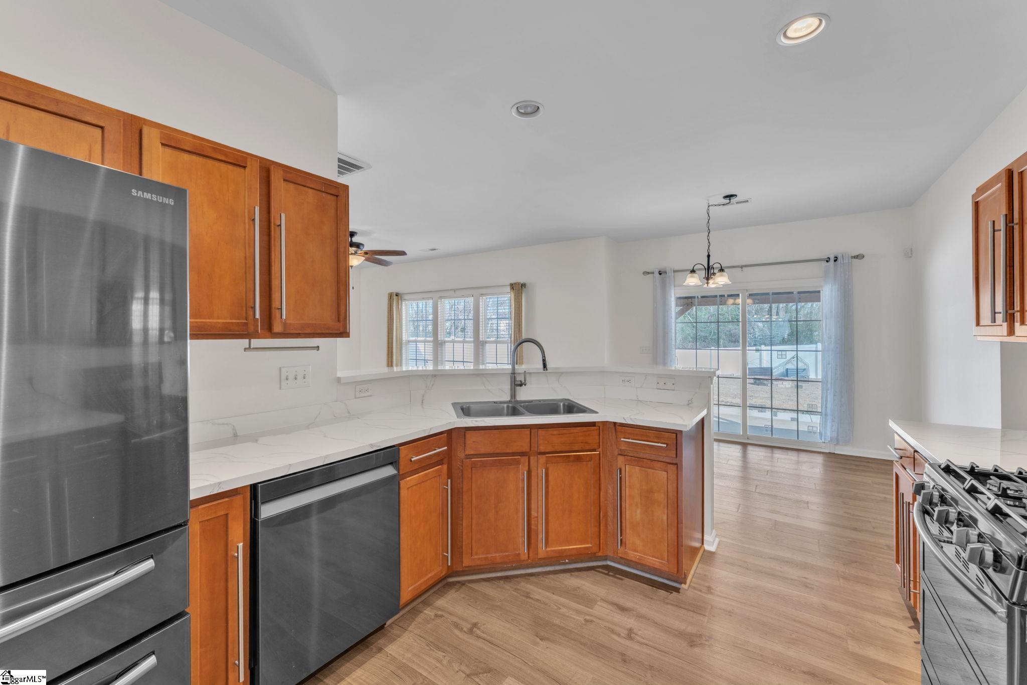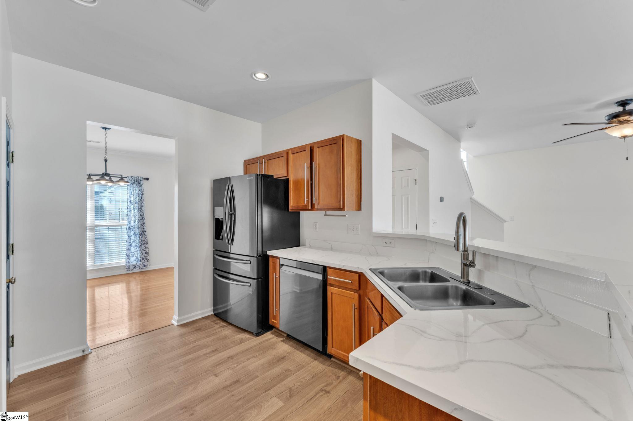 Welcome to this bright and inviting home tucked away on a quiet street in the heart of Simpsonville, where convenience, thoughtful design, and meaningful updates come together. Located just minutes from shopping, dining, medical offices, and everyday essentials, most daily needs are within a five-mile radius making life here both simple and efficient. The home is positioned to take full advantage of natural light, with morning sunshine filling the backyard and covered patio that's perfect for coffee while afternoon sun warms the front of the home. A small wooded area behind the property creates a sense of privacy and is further buffered by community green space, including picnic areas, open fields, and a playground. Inside, the layout is open and functional, designed to keep everyone connected whether cooking, watching TV, or gathering around the table. The kitchen offers generous workspace and storage for cooking and baking, while the spacious living area easily accommodates a sectional yet maintains a cozy feel. This flexible floor plan adapts easily to today’s needs, home offices, playrooms, homeschooling spaces, music rooms, or libraries making it a home that can grow and change with its next owners. Recent updates and improvements include: • New roof (2020) • Fenced backyard and storage shed (2020) • Samsung kitchen appliance package (2019) + dishwasher (2022) • Water heater with expansion tank (2022) • New garage door (2023) • Enlarged patio, gazebo with gutters, lighting, and fan (2024) • New HVAC system and dryer vent (2024) • Whole-home surge protection, electrical updates, and hard-wired smoke detectors (2025) • Updated upstairs bathrooms (2025) • Interior repainting in Greek Villa (downstairs) and Capitol White (upstairs) (2025) • Active termite bond with Massey Pest Services paid through April 2026