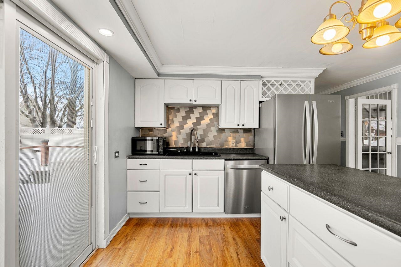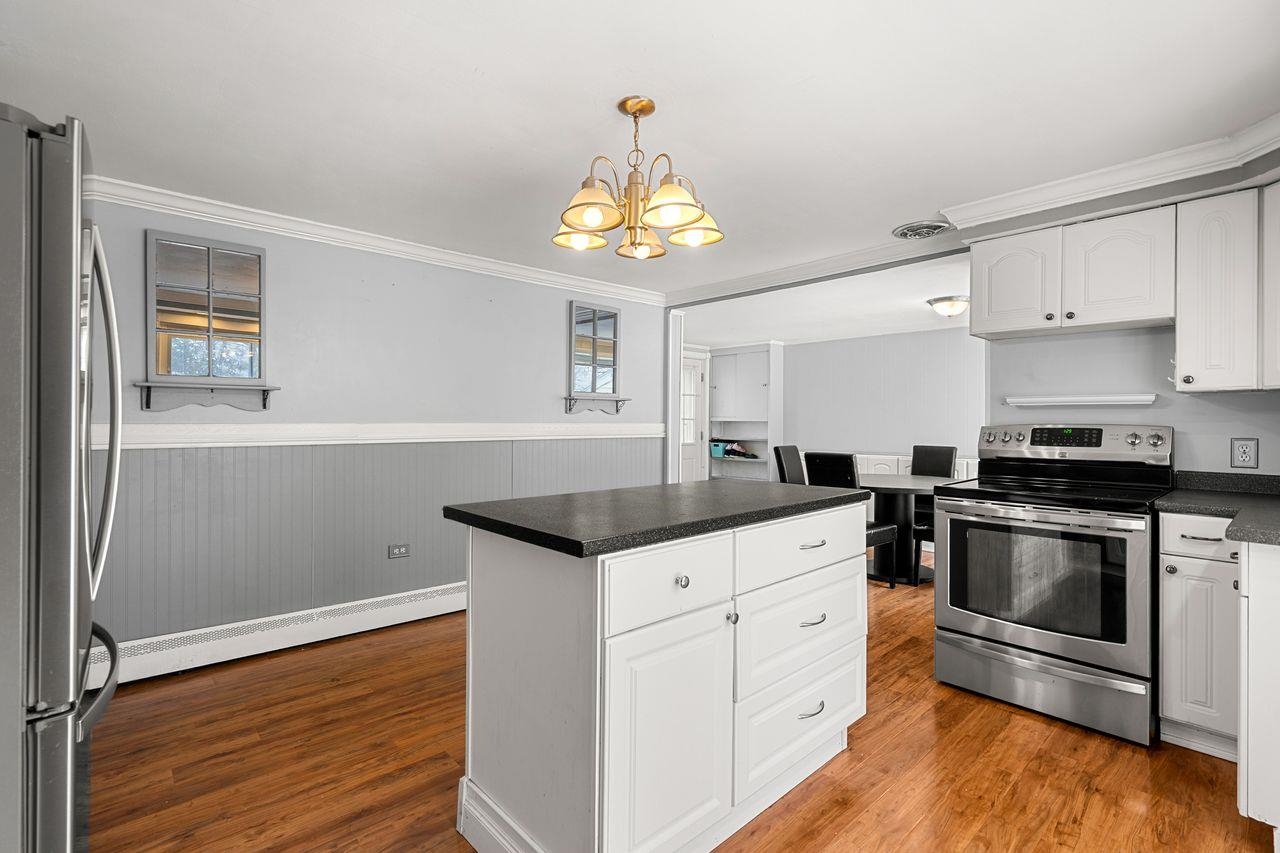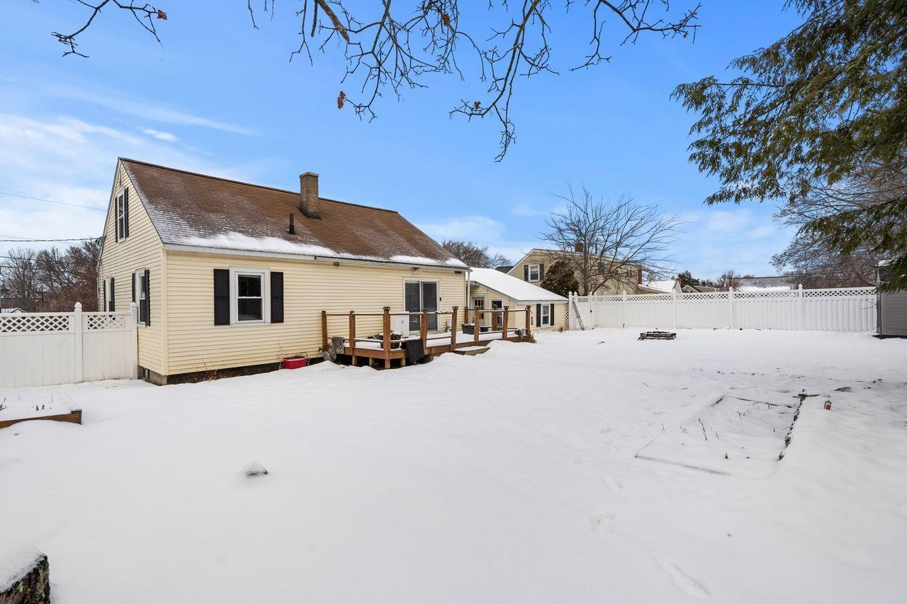 Welcome to this Charming and versatile 4-bedroom, 2-bath Cape with exceptional space and function! This inviting home features hardwood floors throughout and a thoughtfully designed layout perfect for everyday living and entertaining. The oversized kitchen is a standout, offering a center island, stainless steel appliances, and ample cabinetry—ideal for cooking, gathering, and hosting. The main level includes flexible bedroom options and a bath, while the upper level provides additional bedrooms for privacy and comfort. A cedar closet adds a touch of classic charm and practical storage. Enjoy additional living space with the option to finish the spacious basement—perfect for a recreation room, home office, gym, or playroom. The one-car garage provides convenience and extra storage. Step outside to a flat backyard with partial fencing, ideal for outdoor activities, pets, or gardening. With its timeless Cape style, generous layout, and desirable features, this home offers comfort, character, and potential in one complete package. Schedule your showing today. Being Sold as is.