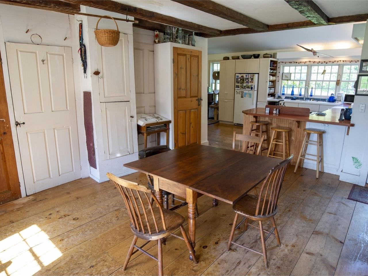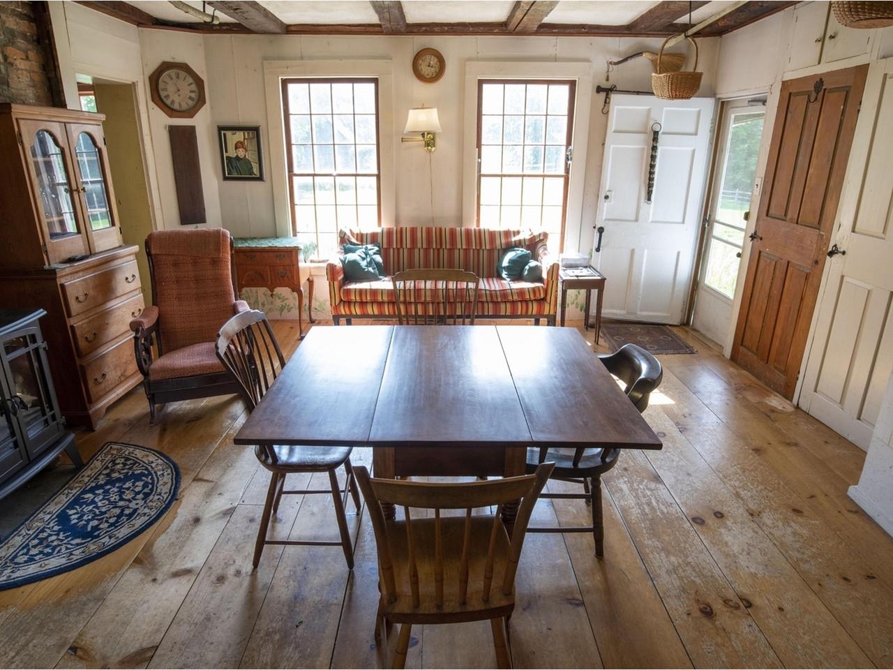 At the end of a town-maintained road, discover a haven of privacy and tranquility at this extraordinary property. With views of the Worcester Mountains and encompassing 228 acres, 223 of which are conserved by VT Land Trust, the landscape is a tapestry of open meadows and a network of winding trails meandering through the woods. Spectacular sunsets. In the same family for over 70 years, the traditional New England cape has been enlarged and had some renovations over the years, but the charm of 1850 remains with original features like wide pine floors, exposed beams, and interior doors. Enter through the tiled mudroom and into the light-filled kitchen boasting wall to wall windows. The open kitchen/dining room is well suited for meals and guests. Cozy living room with original fireplace. First-floor primary bedroom with en suite bath. Another 3/4 bath with laundry rounds out the first floor. The second floor is highlighted by three more bedrooms, a full bath, and lots of bookshelves and cozy nooks for reading those books! High-speed fiber internet for home office needs. Double car garage with electric car charger hook up and attached barn. Clear meadows fenced for horses and other loved animals. A forest of sugar maples. Landscaped gardens. Brand new septic system! The property is ideally suited for cross-country skiing, snow-shoeing, and hiking. U-32 School System. Despite its privacy, Fifers Ride is conveniently located to a diverse array of amenities and activities.