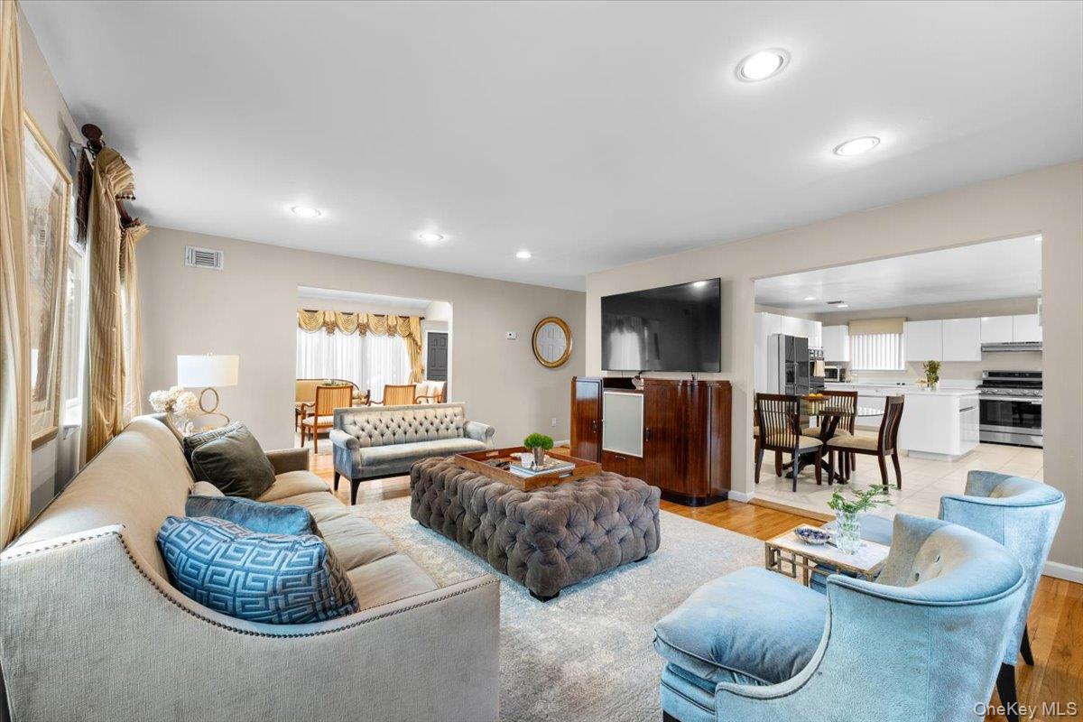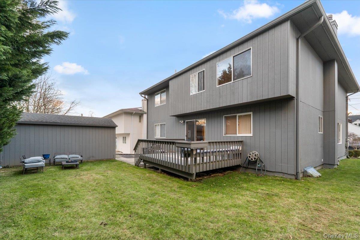 This well-maintained young Colonial offers a spacious and functional layout featuring a large living room, formal dining room, den, eat-in kitchen, and powder room on the first floor. The second level includes four bedrooms and two full bathrooms. A full finished basement provides additional living and recreational space. The eat-in kitchen opens directly to an outdoor deck, perfect for entertaining and everyday enjoyment. Conveniently located in the Village of Great Neck close to shopping, transportation, and local amenities.