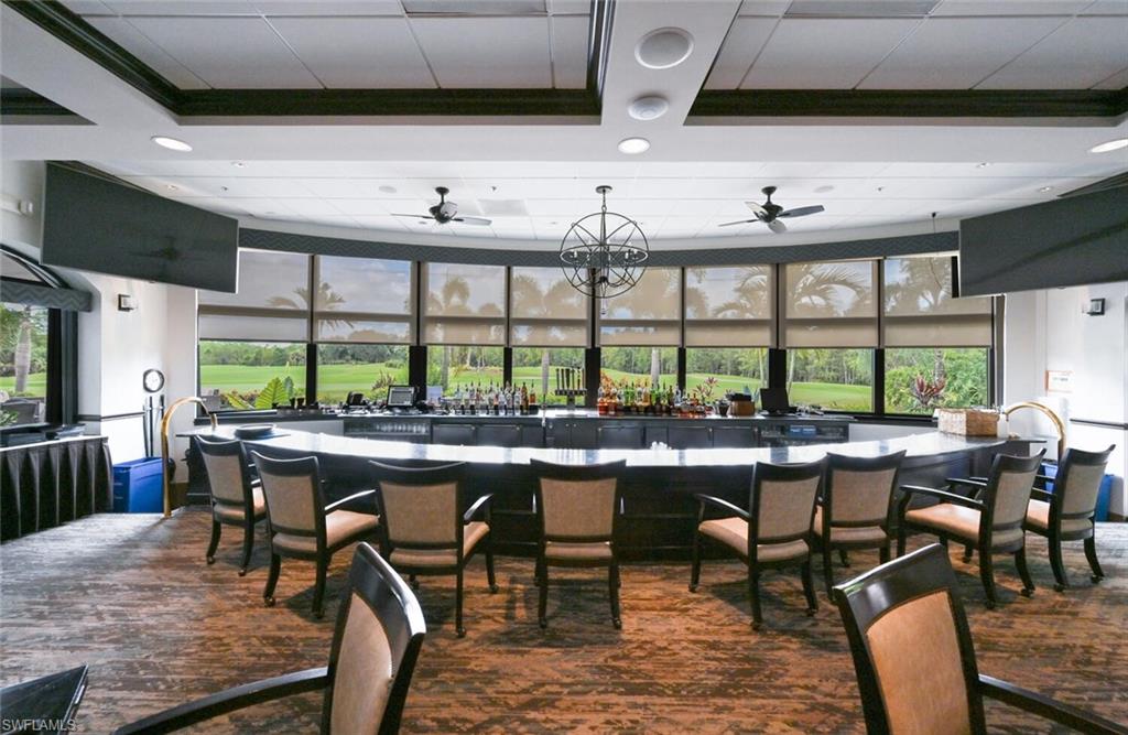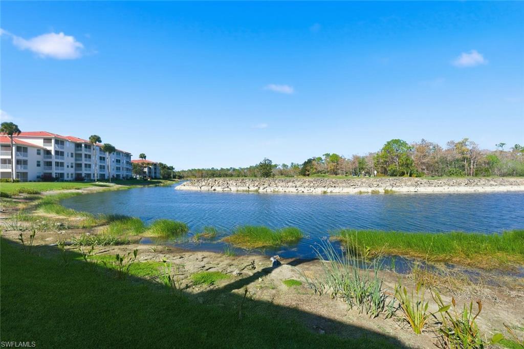 Here it is the highly sought after property many are searching for the first floor end veranda Abbey with 1660 square feet of living space and ready to move into. Two beds, two bath with den with a window giving ample light throughout the living area. You will be enamored with the view overlooking the water and rock scape to the signature twelfth hole where you can watch the golfers go by in the distance. Just a short jaunt to the beautiful Naples Heritage clubhouse and fantastic amenities with indoor and outdoor dining, championship golf, resort style lap pool with bar area and outdoor dining, fitness center with classes, tennis complex and coming in 2026 a brand new Pickleball and Bocce Ball complex. Granite countertops in kitchen. Completely tastefully decorated in neutral decor this larger condo is only slightly smaller than a villa. All of this and so close to downtown Naples, Fifth Avenue and the beaches.