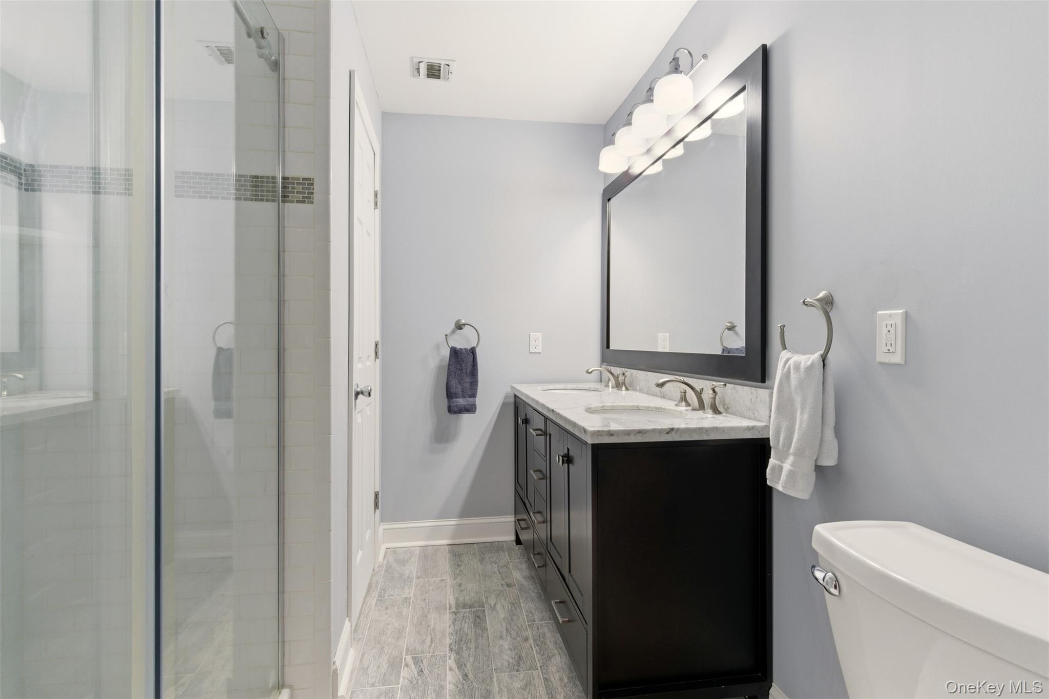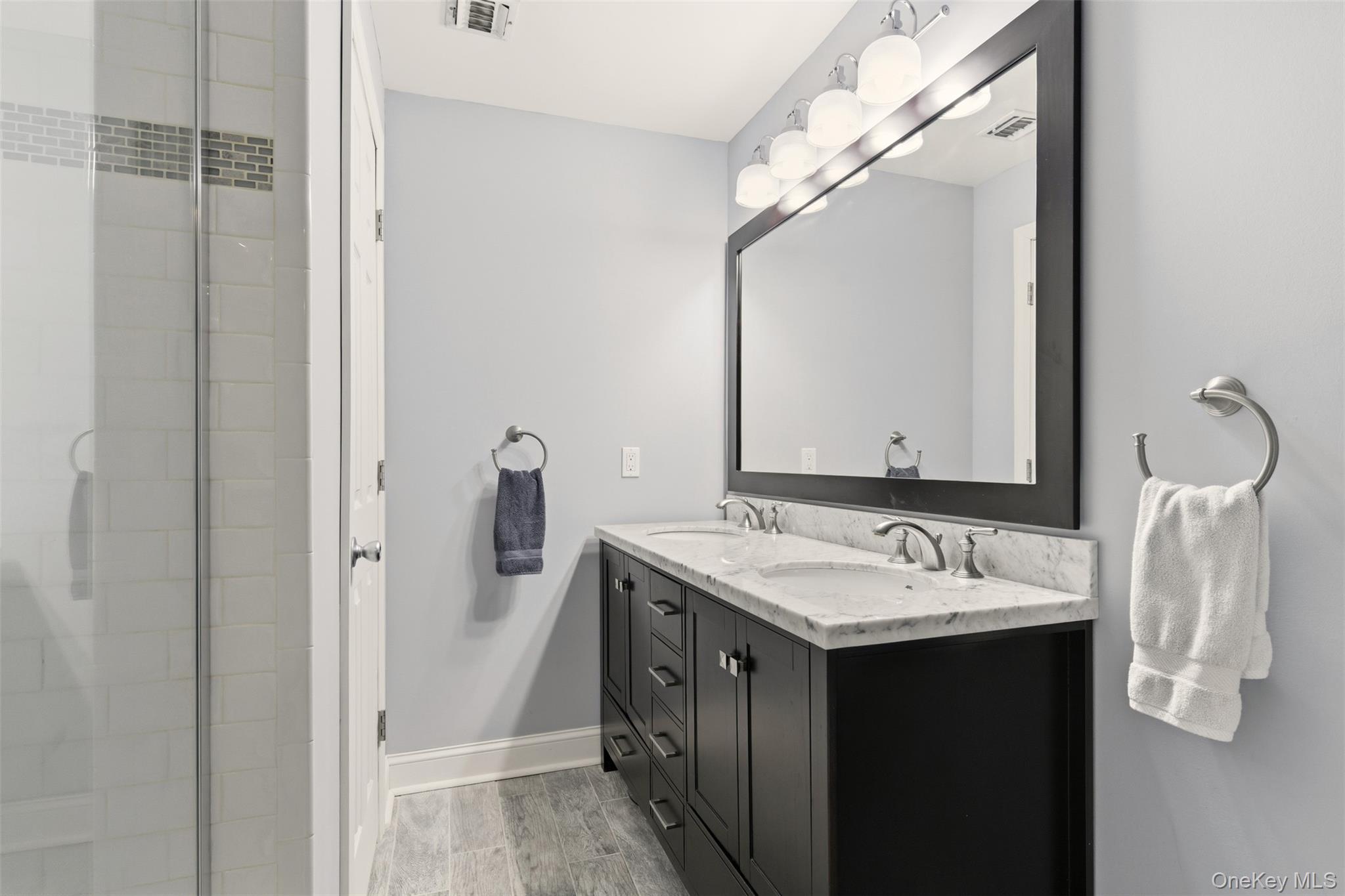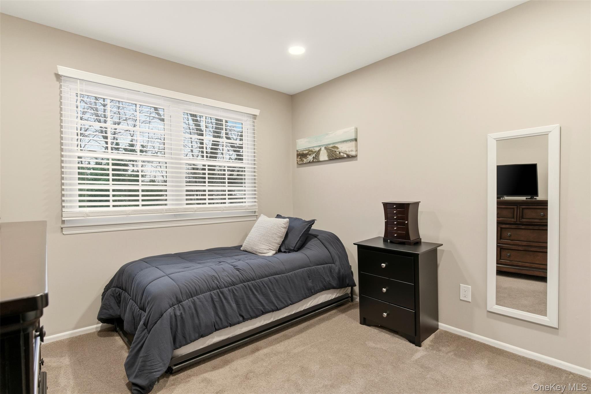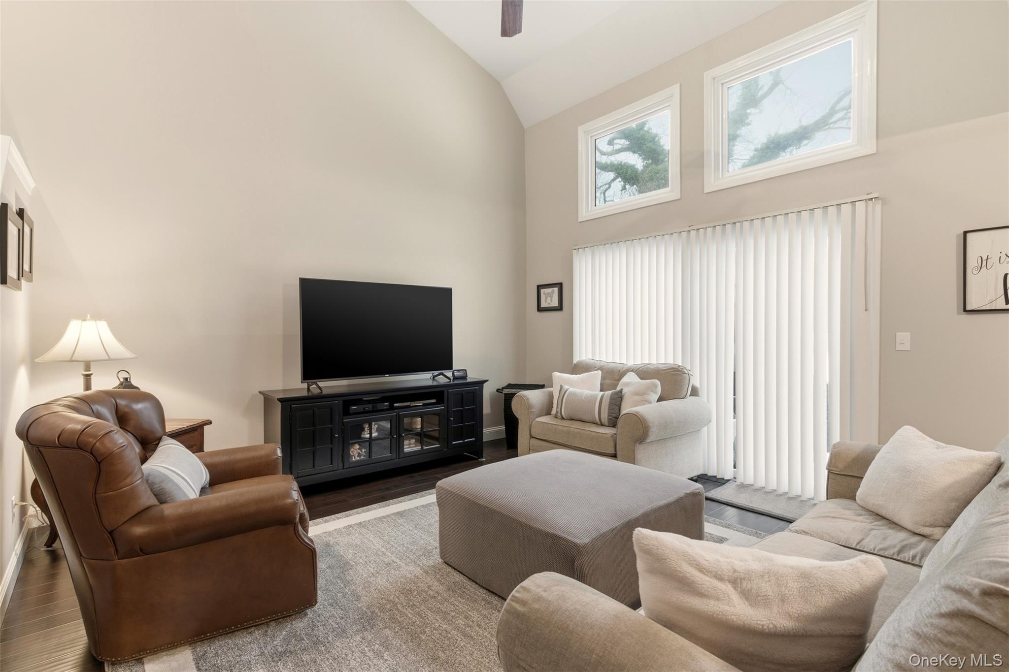 Welcome home to this beautifully maintained residence in The Meadows of Kings Park. This home features an updated eat-in kitchen with hardwood floors, stainless steel appliances, and an abundance of cabinetry—plus a pantry for extra storage. The kitchen flows seamlessly into the formal dining room and living room, highlighted by high ceilings, oversized windows, and sliding glass doors leading to a private patio—perfect for entertaining, with serene tree views and no rear neighbors. The main level also offers an updated powder room with ceramic tile and a convenient laundry area. As you head to the second level, you’ll enjoy an open view overlooking the main floor. Two generously sized bedrooms feature double closets and plenty of natural light, along with a hallway linen closet. The spacious primary suite includes a walk-in closet and a private primary bath with double sinks, a large walk-in shower, and an additional linen closet. Additional features include a one-car garage ideal for extra tools and storage, plus a pull-down attic with stairs for even more storage.
