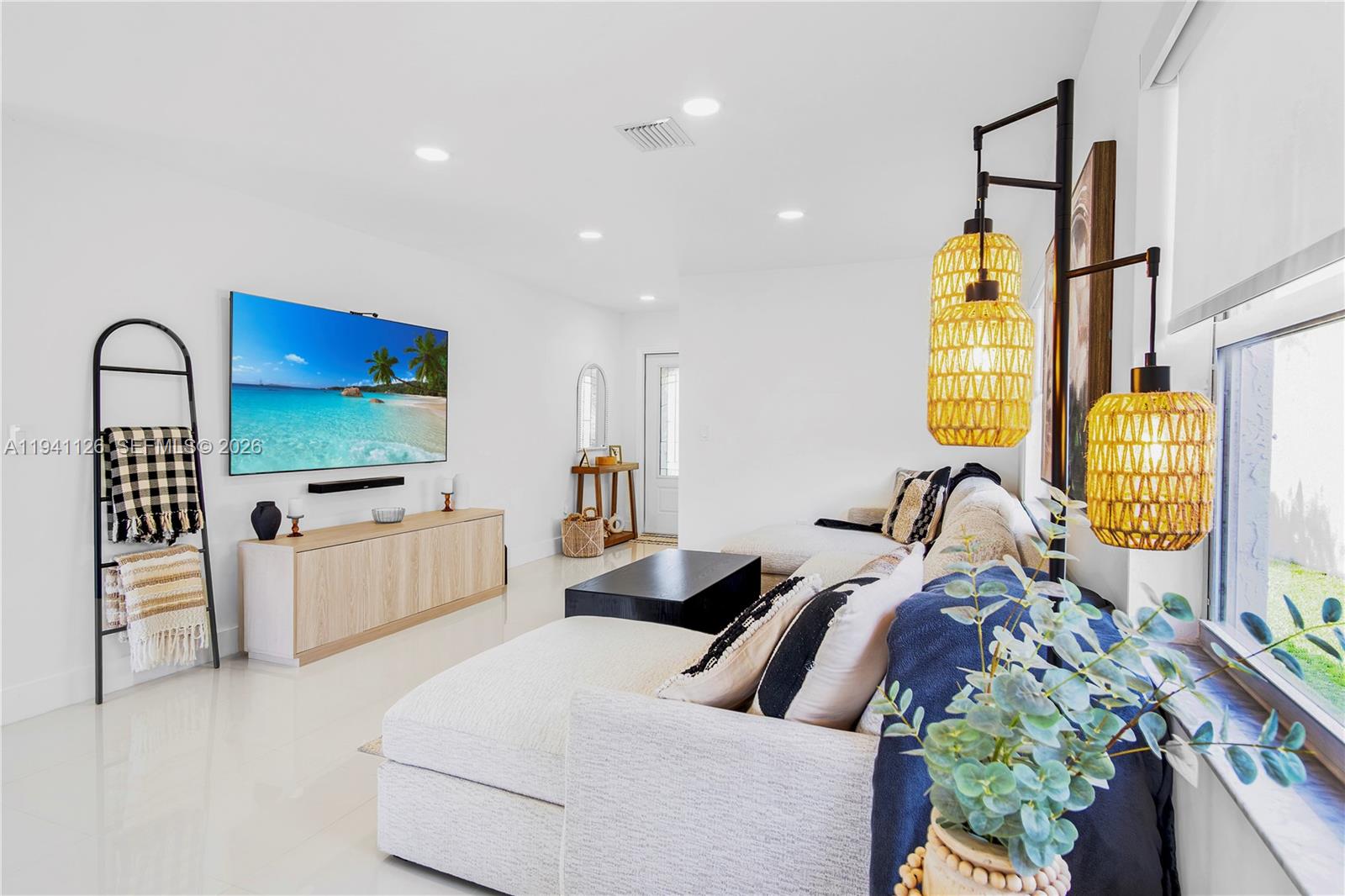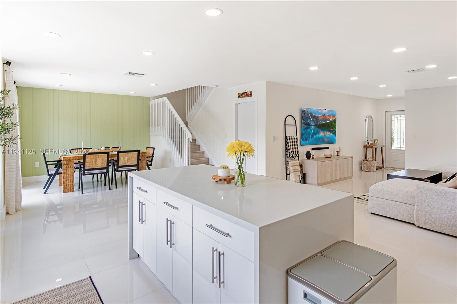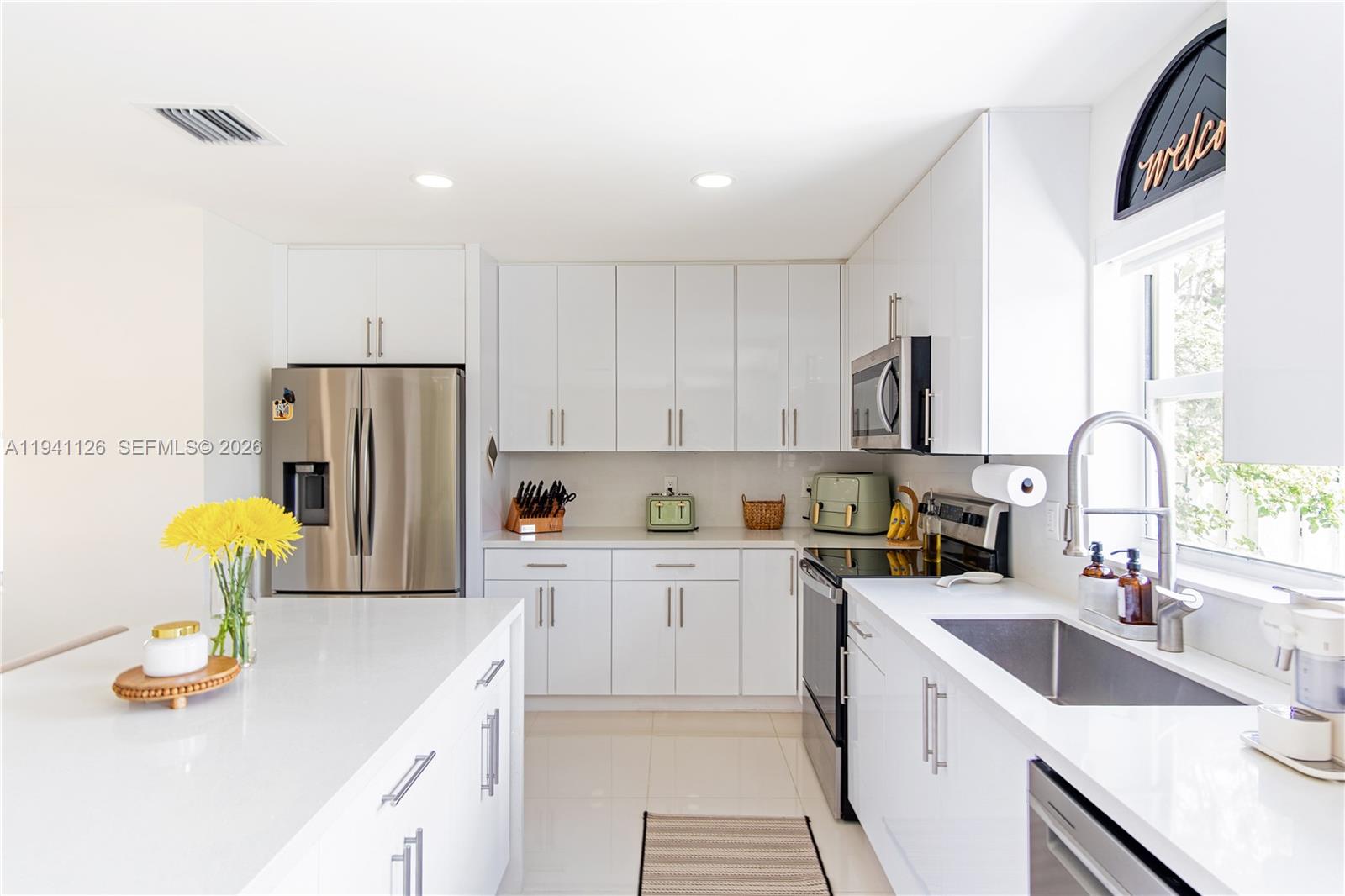 Lakefront luxury! This beautiful home in the Huntington community has been completely renovated. This modern oasis boasts remote control blinds, a beautiful kitchen with a quartz waterfall island, & porcelain tile throughout. Enjoy stunning views & bright spaces with dimmable lights. Features: stainless steel appliances, upgraded washer/dryer, impact door, & 2022 AC. Gated community with lakefront perks! Can be sold furnished.
