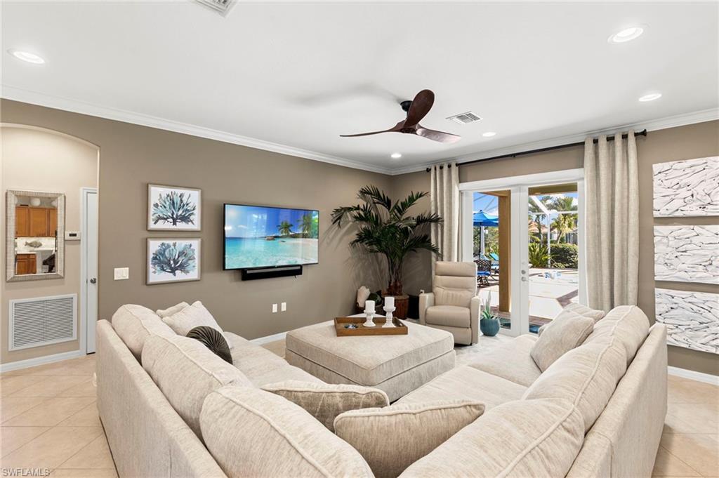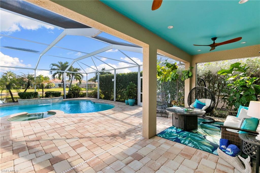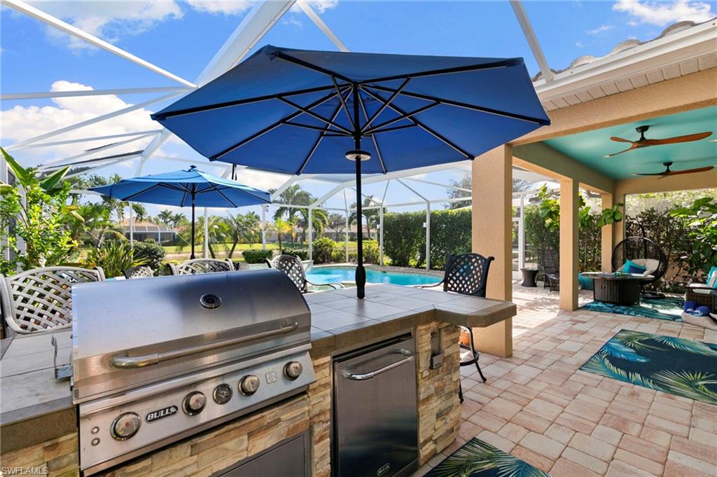 Step through French doors into your private oasis: a massive 1, 840 sq. ft. screened lanai with 16-foot ceilings and a hardscape deck. The outdoor space is anchored by a custom-designed, heated saltwater resort-style pool and spa with a waterfall, complemented by a full outdoor kitchen.