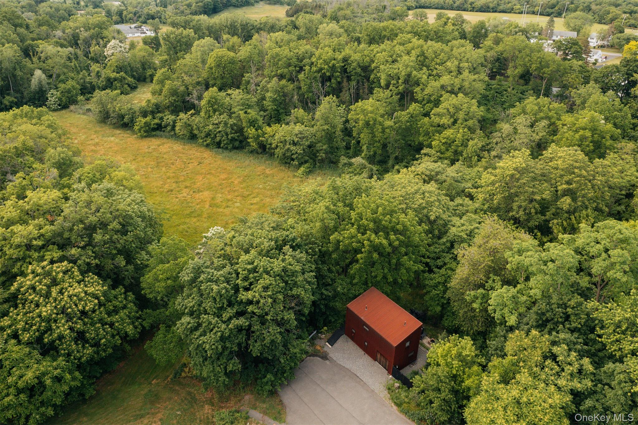 Overlooking ten acres of city-owned green space, this passive house is just two blocks from the best restaurants and shops that Hudson has to offer but a world away. The site is entirely unique within Hudson, the terraced yard is exceptionally private and overlooks pastoral fields, and a small waterfall out back can be heard from the house. The backyard is enveloped by trees, this is one of a few in-town locations where you'll find no neighbors in sight. Built c2015, the incredibly efficient home has 3 bedrooms and 2 full baths spread out over two stories. The main living space is an open kitchen and living room, both walk out onto the deck where one can enjoy the outdoors right in Hudson proper. On the lower level you’ll find radiant concrete floors. The home is clad in COR-TEN steel siding and the European windows are triple-pane. Outside, stone walls terrace the yard, there is a built-in grill/firepit, a large storage shed and off-street parking. This incredibly unique location offers in-town convenience and proximity to nature— it is truly the best of both worlds.