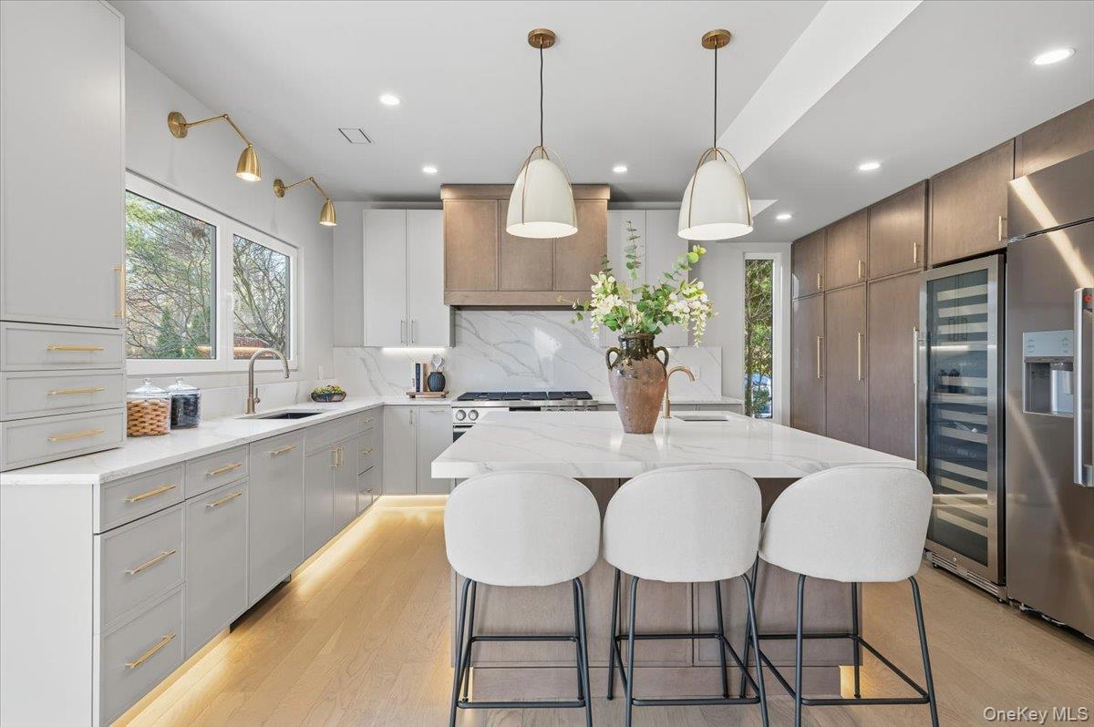 Welcome to 26 Windemere Way, a spectacular luxury residence offering over 5, 000 square feet of open floor plan living, where elegance meets modern convenience. This fully renovated 6 bedroom, 6 bathroom home is a masterpiece of architectural design, featuring soaring 25 foot ceilings that seamlessly flow from the grand entry foyer through the oversized great room and into the primary suite, located conveniently on the main floor. The custom chef's kitchen is a culinary dream, equipped with top of the line appliances and exquisite finishes, perfect for both everyday living and entertaining. The great room is the social hub of the home, featuring a stunning stone fireplace and a built in bar that enhances the space's allure for hosting gatherings. Upstairs find 4 large bedrooms, 2 full bathrooms and a convenient separate laundry closet. Set on a scenic community pond, this property offers serene views and a peaceful ambiance, making it a perfect escape from the hustle and bustle of daily life. Don't miss your chance to make this extraordinary home yours. Syosset School District, Walt Whitman Elementary.