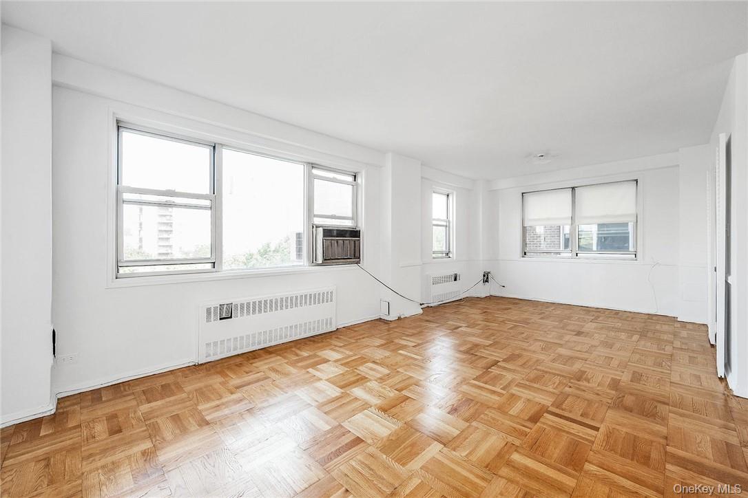 Sponsor unit - no board approval required. This bright and spacious, 3 bedroom, 2 bath, 1800 sq ft unit is located in the desirable Parkway House. This full service building in central Riverdale has a 24-hour doorman, full-time super, laundry room, bike room and playground. Features include an entrance hallway with walk in closet, large foyer, oversized living room with balcony, eat-in kitchen plus generous closets and refinished wood floors. There is a dining L, which can be converted into a bedroom or den. Relax in the spacious master bedroom with ensuite bath. Two more large bedrooms and hall bath complete this unit. The bathrooms are original. The apartment has 8 large closets and can easily be converted to four bedrooms. Located within walking distance to Johnson Avenue and Riverdale Avenue shopping as well as parks, schools, libraries, restaurants, easy access to parkway, express bus to NYC, local buses, and rail shuttle link to Metro North Railroad. Additional Information: Heating Fuel: Oil Below Ground. The photographs are from the same apartment but on a different floor. The bathrooms are the original pink. The kitchen is somewhat updated. This unit is on the lobby floor and should be seen. It has just been painted and the floors have been refinished. The second and third bedroom have new floors. Cable is $72 and in March it will be $80. There is an assessment of $124. 57 per month until Dec 2026. Parking is waitlisted. Unit is being sold “as is”.