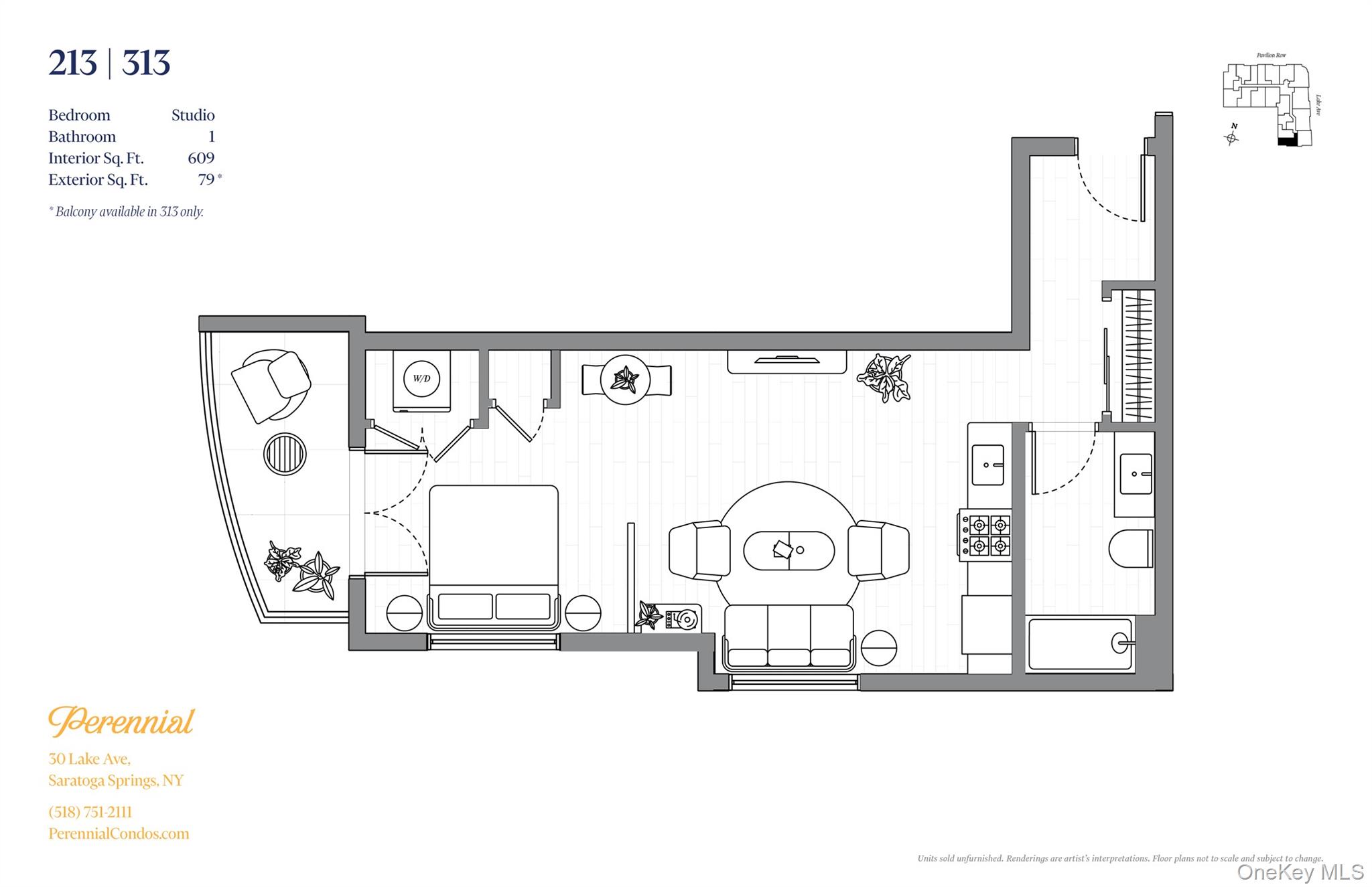 Perennial Condominium - a collection of 48 residences in the heart of Saratoga Springs. Timeless in design and modern in comfort, these homes range from efficient Studios and One Bedrooms to spacious Two-Bedrooms and Duplex Penthouses, all offering incredible value in Saratoga’s most sought-after location. Condo amenities include two rooftop terraces with BBQ and firepit, a fitness center, a large resident lounge with billiards and wet bar and a furnished lobby with package room. On-site parking is available for purchase and convenient, off-site parking is also available. Unit 213 is a large Studio offering 609 SF of interior living space with east exposure. Creative and efficient in its layout, the unit features woodgrain flooring throughout, a full stainless-steel kitchen, a spacious bathroom with contemporary vanity and brushed nickel finishes. Additional unit features include washer/dryer and ample closet & storage space. Saratoga Springs – The renowned crown jewel of upstate New York has been a luxury resort destination since the early 1800s, into the Gilded Age and right up to the present. Blending historic & authentic charm with a thriving, modern lifestyle, Perennial lies in the center of town only one block from Broadway, the town’s main corridor offering numerous retail, hospitality, restaurants, cafés, galleries and cultural venues. Just a few minutes away is the iconic Saratoga Racetrack, Skidmore College, Saratoga Lake, Saratoga Performing Arts Center (SPAC) and numerous historic spas and parks. Photos may not be of actual unit.