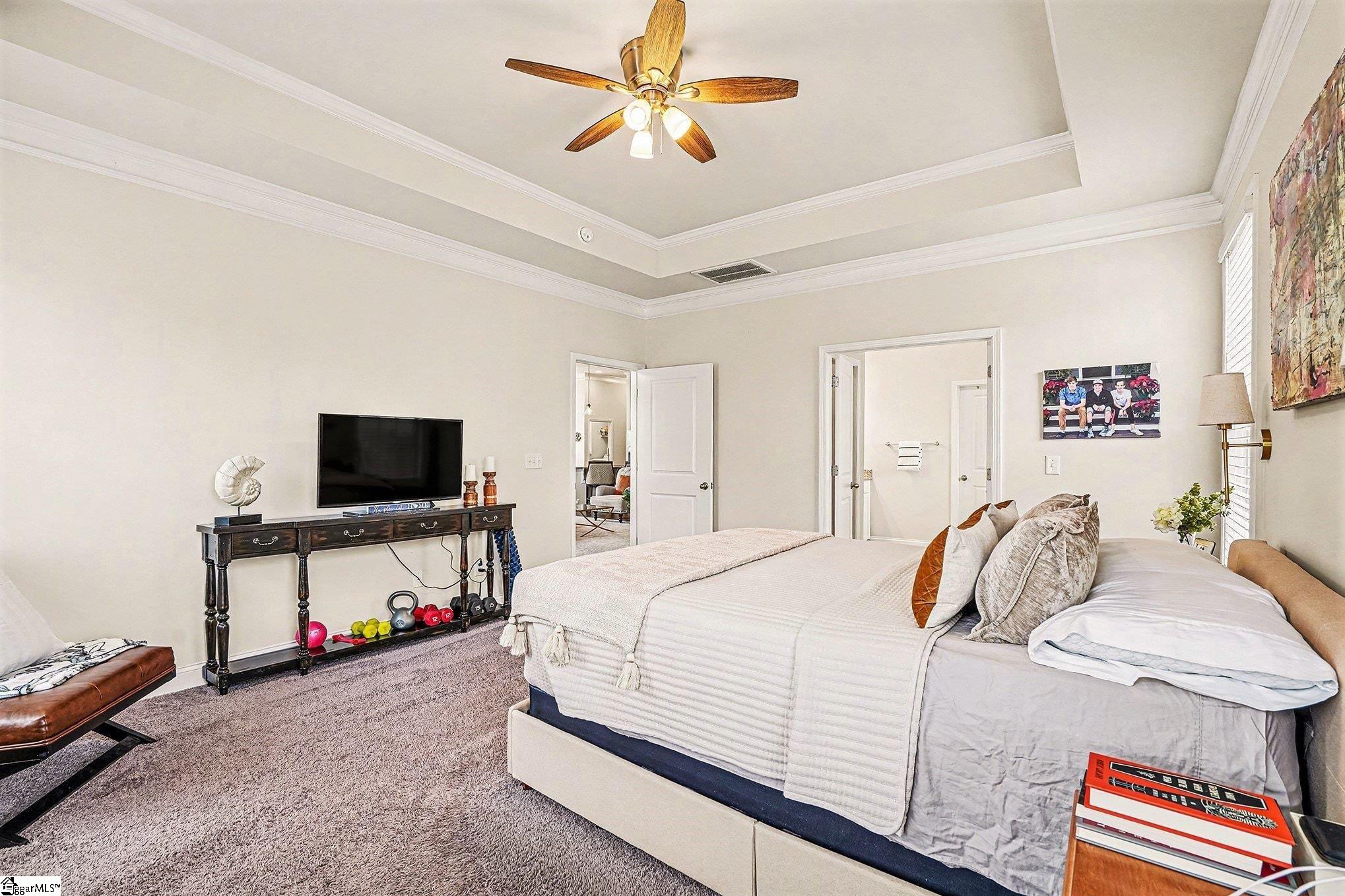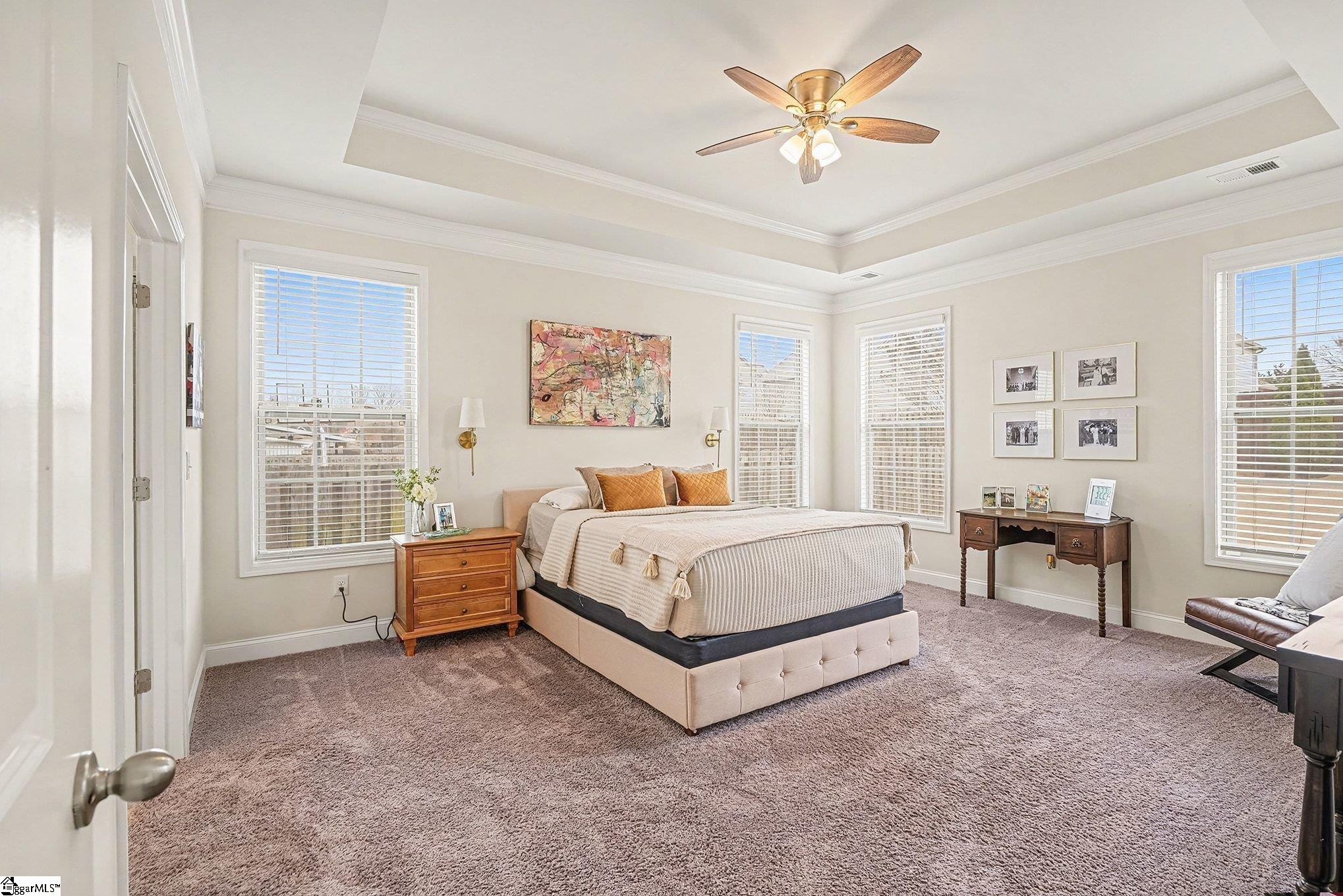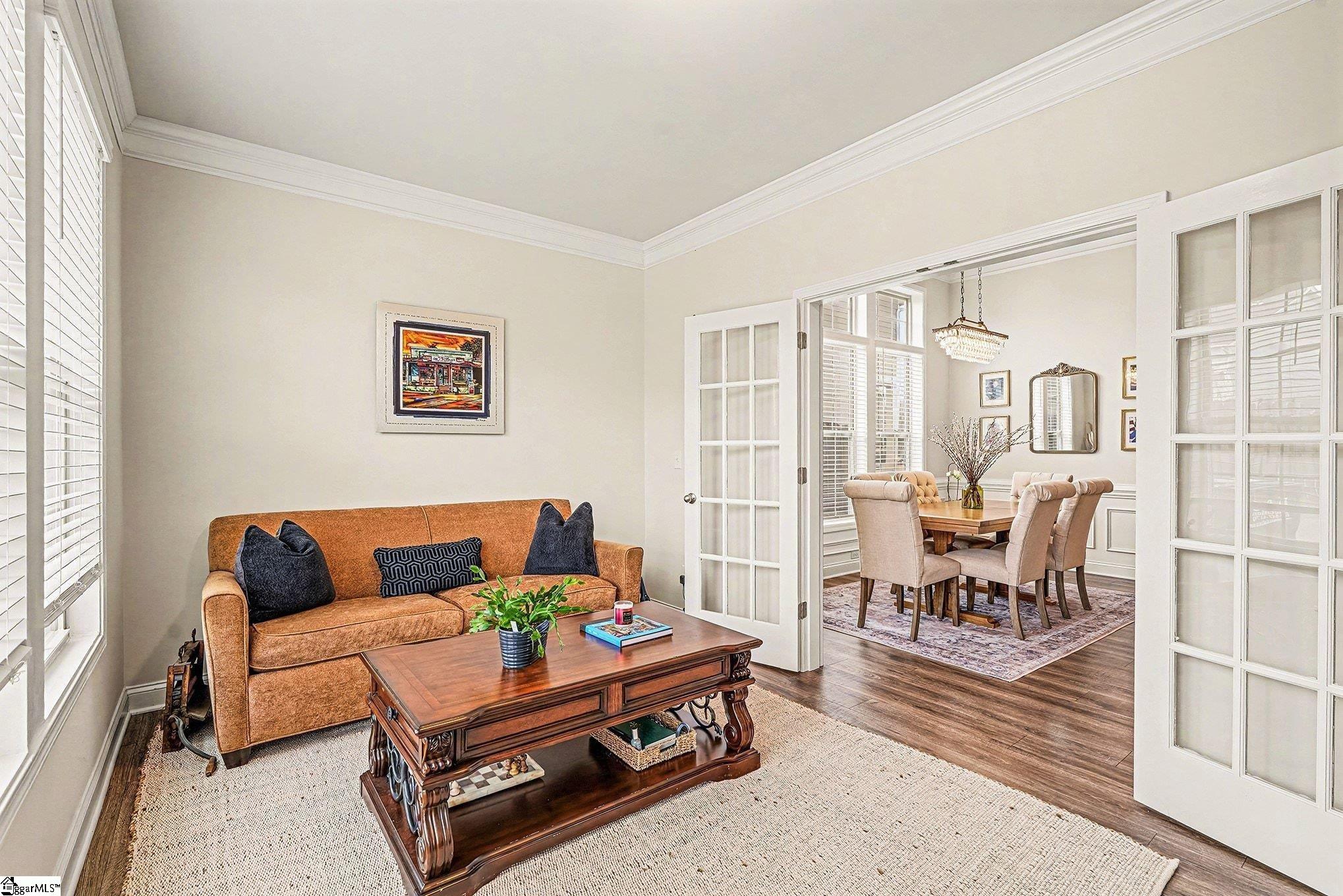 Welcome home to this beautifully maintained ranch style home. From the moment you step through the double front doors, you're greeted by a spacious foyer with trey ceiling that opens into a light filled, open concept living space designed for comfort and everyday living. Upscale finishes and details will elevate your lifestyle with beautiful trim/moldings, designer lighting and plumbing, transom windows and beautiful wallpaper in powder room. Great Room features soaring ceilings and a cozy gas log fireplace open to the kitchen with granite countertops, abundant cabinetry, gas stove and a large peninsula ideal for casual dining and entertaining. A formal DR offers flexibility for gatherings, while a private office with glass French doors provides the perfect work from home or flex space for workout room, playroom etc. . In addition, a light filled sunroom provides an inviting space filled with natural light for a den that can be used for family gatherings, entertaining or relaxing at home. Covered back porch overlooks level, fenced backyard. Primary suite features trey ceiling, dual sinks, walk in closet, a garden tub and separate shower. Two bedrooms are separated up front with a full bath in their own hall creating privacy. Located conveniently to shopping, dining and award winning schools. Easy access to I-85 with easy commuting to downtown Greenville, Clemson, Anderson and more.