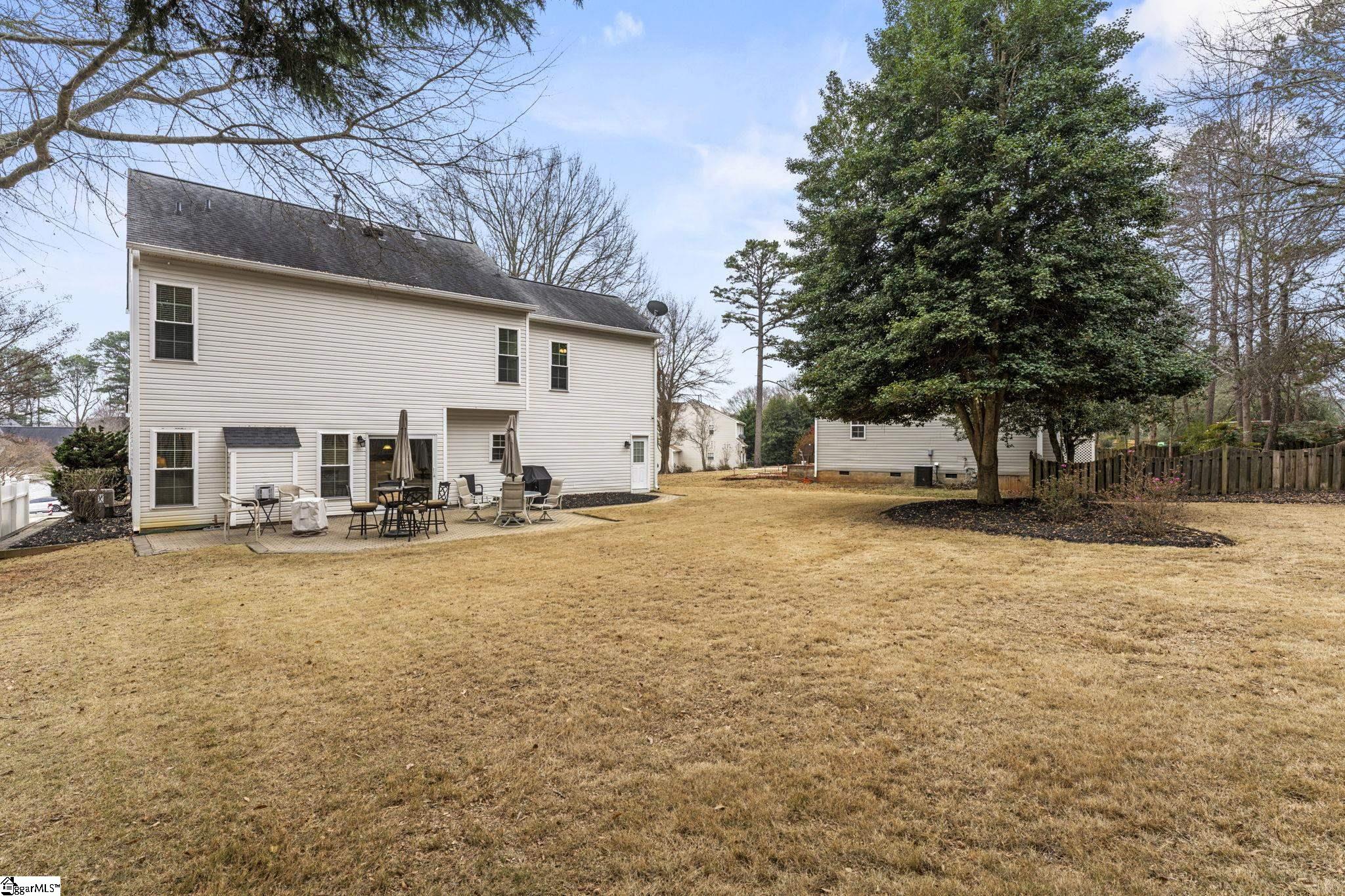 Move-in ready 4-bedroom home on one of the best lots in the neighborhood, and in a prime location that's convenient to everything! This home in Windsor Forest has only been owned by one owner, and the pride of ownership is evident through-out. Originally purchased from the Builder back in 2000 and used as a primary residence till 2021, and a short-term rental since then. The owners have made numerous updates to the home over the years - all new Taylors windows were installed in the home in 2020 (approximately $11, 000), upgraded appliances (Samsung microwave and range and Bosch dishwasher), upgrades to the kitchen cabinets, granite counters, tile backsplash, separate kitchen sinks, a huge paver patio in the back yard, Pella sliding door, a Larsen front storm door, and the list goes on. The layout is ideal - the main level features a spacious dining room, a great room and kitchen that is open to each other, a walk-in laundry room, and a powder room. And upstairs you'll find the primary suite with attached bathroom and walk in-closet, plus three more bedrooms. The outdoor space includes a beautiful paver patio and large back yard. And if you're looking for a home that could be used as a short-term rental, this home is turn-key. . . 87 5-star reviews on AirBnB alone, plus the owner is a super-host and guest favorite, and all the furnishings are available for sale separately. Note that the 2025 property taxes are at 6% - for an owner occupant, per Greenville County's tax estimator, taxes at 4% at a $375K taxable value would be $2130 per year.