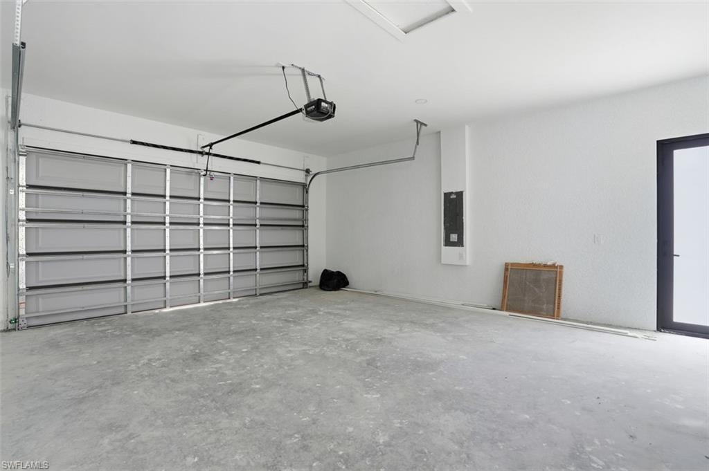 The garage is equipped with a split air conditioning system, offering climate-controlled comfort for storage, hobbies, or a workspace.