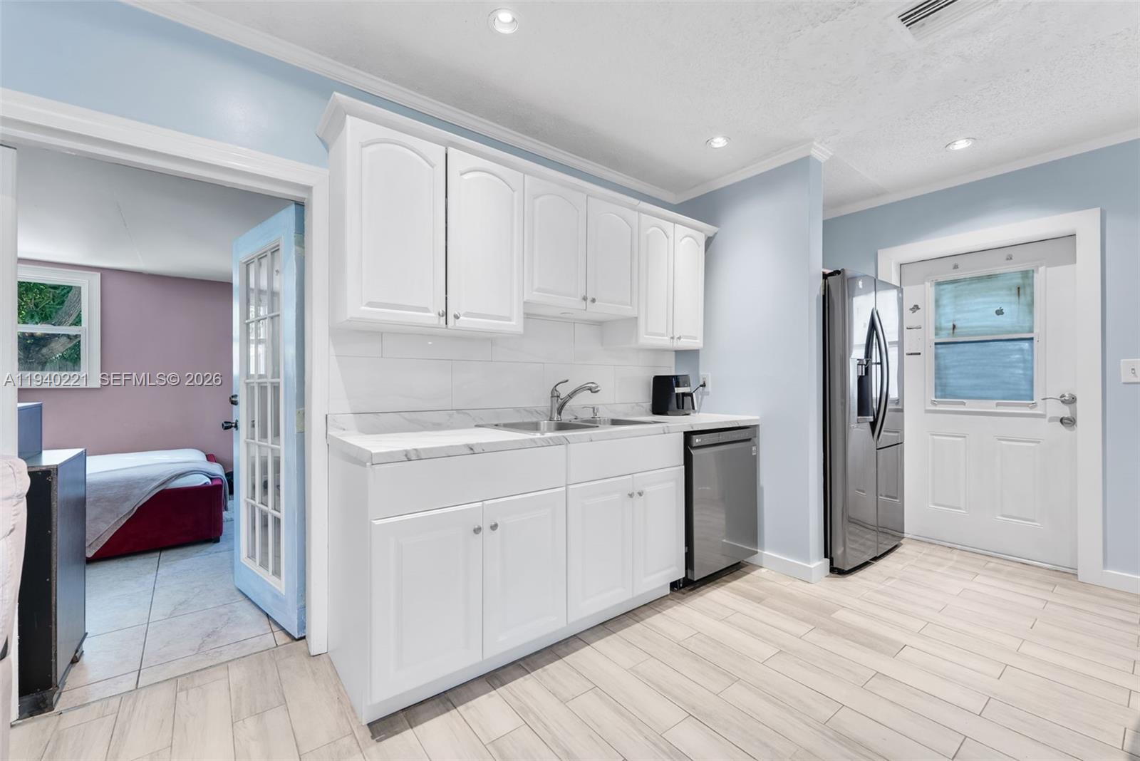 Located in northeast Oakland Park this 3-bedroom, 2-bath single-family has been thoughtfully updated. The features wood cabinetry with generous storage, updated porceliain tile flooring throughout and remodeled bathrooms. The main living area offers an additional large flex space (more room under air!) with a laundry that can be used an office, playroom, gym or creative space. One room has a separate interest and could be rented out separately for extra income. The ample backyard has room for a playset, BBQ or even a pool. This home is conveniently located near shopping, major roadways, North Andrews Gardens Elementary, Rickards Middle School and Northeast High School, minutes from I-95 and US-1, and the beach. This home blends comfort, functionality, and location seamlessly. All it needs are your personal touches. Objects virtually removed from some photos.