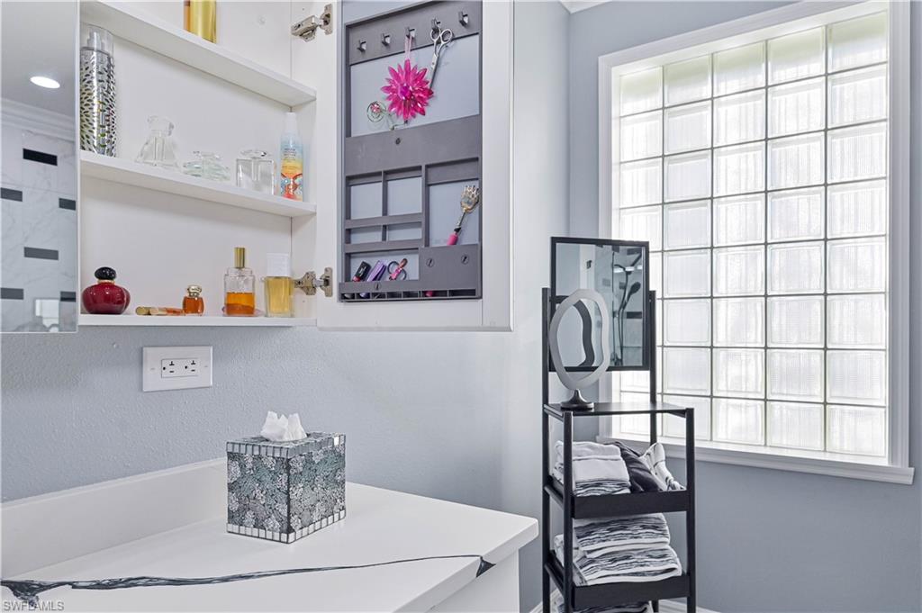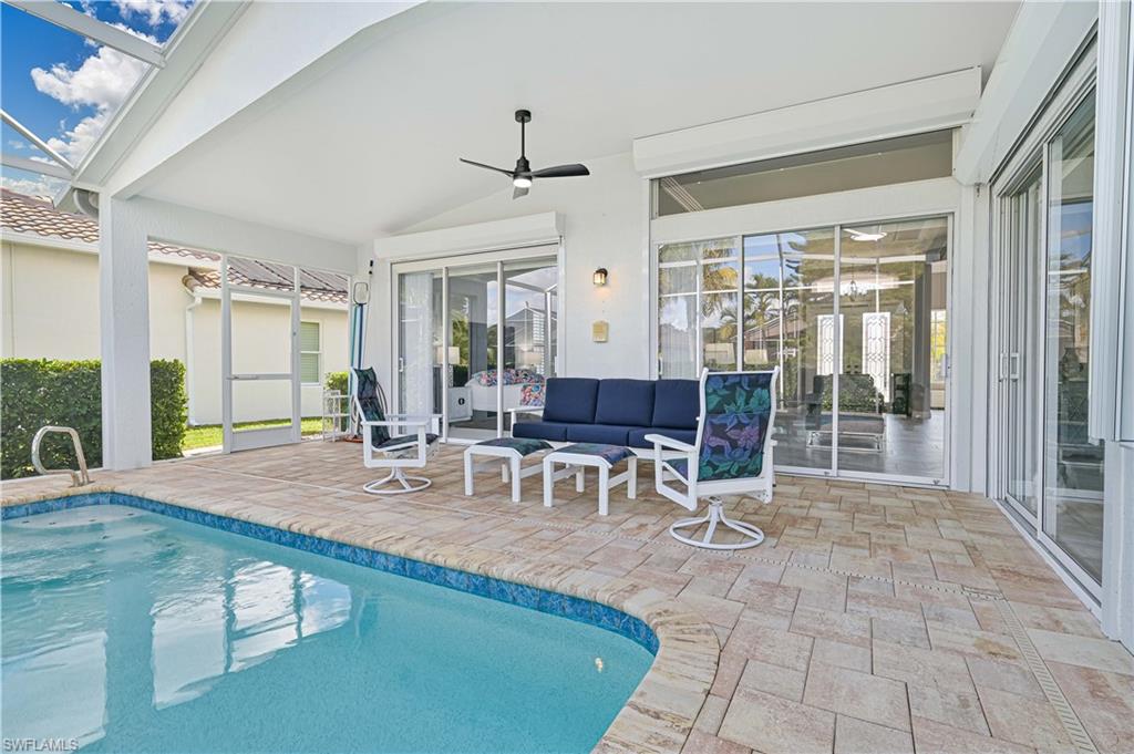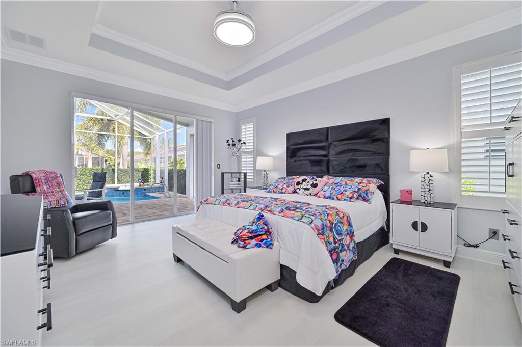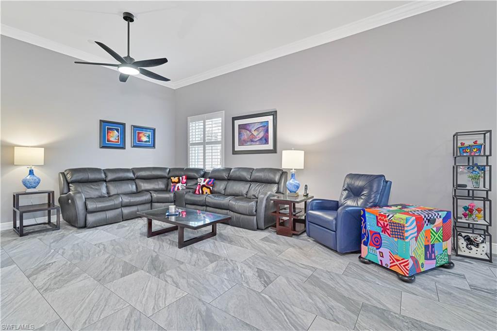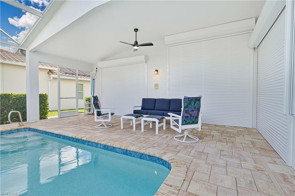 Welcome to this luxurious, meticulously maintained home in the highly sought-after and updated 55+ gated community of Cascades at Estero, offering over 2, 600 square feet of thoughtfully designed living space. This residence features three spacious bedrooms, two and a half baths, and a versatile bonus room adjoining the primary suite—ideal for an office, gym, or sitting area. From the moment you arrive, mature landscaping enhances the home’s exceptional curb appeal. Inside, you’ll find plantation shutters covering all windows throughout , crown molding, newer interior and exterior paint, tile flooring in the main living areas, and LVP flooring in the bedrooms. The chef-inspired kitchen has been beautifully updated with refaced cabinetry featuring crown molding, soft-close doors, pull-out drawers in the lower cabinets and pantry, quartz countertops, a stylish backsplash, and newer refrigerator and dishwasher. The primary suite is a true retreat, offering two large walk-in closets and an updated bath showcasing dual floating vanities with quartz countertops, an oversized walk-in shower, and custom mirrored cabinetry for added storage. The remaining bathrooms have also been tastefully updated. Step outside to a private outdoor oasis featuring a heated in-ground pool and spa within an expansive screened lanai—perfect for entertaining or peaceful relaxation while enjoying privacy. Additional highlights include a whole-house generator, electric roll-down shutters on the front and rear of the home, accordion hurricane shutters covering windows, a 2020 A/C system, a 2023 water heater, a laundry room with utility sink, and a two-car garage. Residents of Cascades enjoy an active, vibrant lifestyle with resort-style amenities in one of Estero’s most desirable 55+ communities, making this exceptional home a perfect blend of luxury, comfort, and peace of mind.