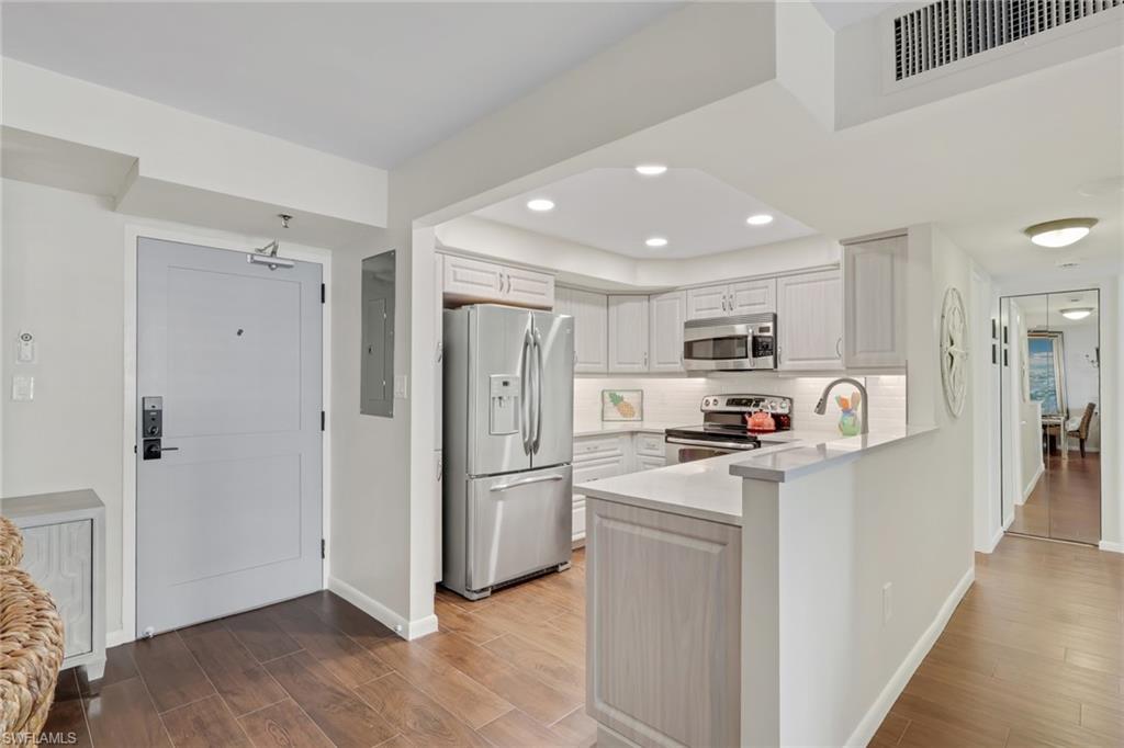 Rarely available 08 unit just listed. Completely updated 2 bedroom 2 bathroom. Be wowed by stunning South west views of Tigertail beach and sunsets year around. Hurricane impact windows have been installed throughout. Enjoy spectacular views from your oversized lanai area, which 08 units offer compared to other units. Upon entering the unit your brand new kitchen with custom cabinets throughout including a trash pull out, quartz counters, under cabinet lighting with new stainless steel appliances. Wood blank tile flooring throughout, only main bedroom offers carpet. Newly remodeled ensuite offers single oversized vanity and walk in shower with an spacious custom main closet with California closet system. Wake up to stunning gulf views from your main bedroom. Guest bathroom has a shower tub combo and single vanity. 2nd bedroom offers two twin beds and a custom closet system, as well as stunning gulf views. In addition what makes these units so special is the short distance to elevator and laundry room without the noise nuisance. Unit comes with its own laundry cabinet in the laundry room. South seas tower 1 has amazing amenities including the shortest distance to the beach via private board walk area, as well as pool and a newly remodeled club room. Enjoy great restaurants and shops close by.