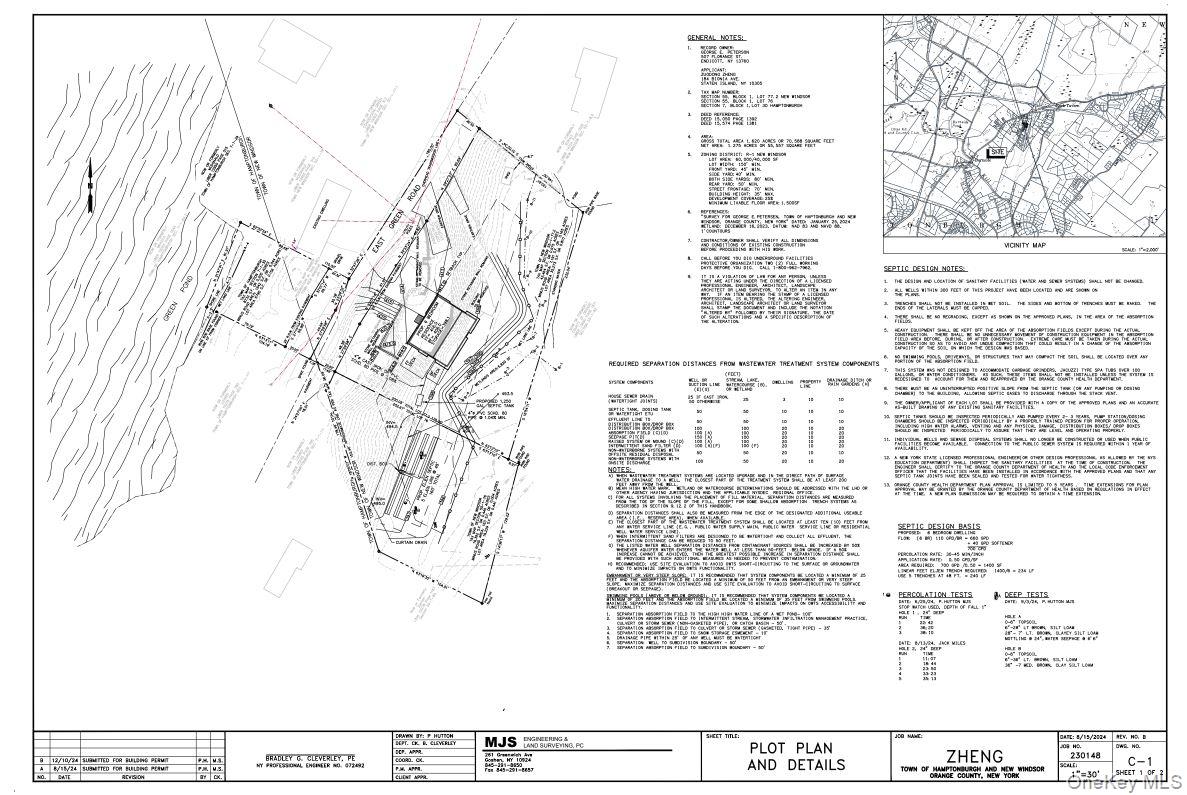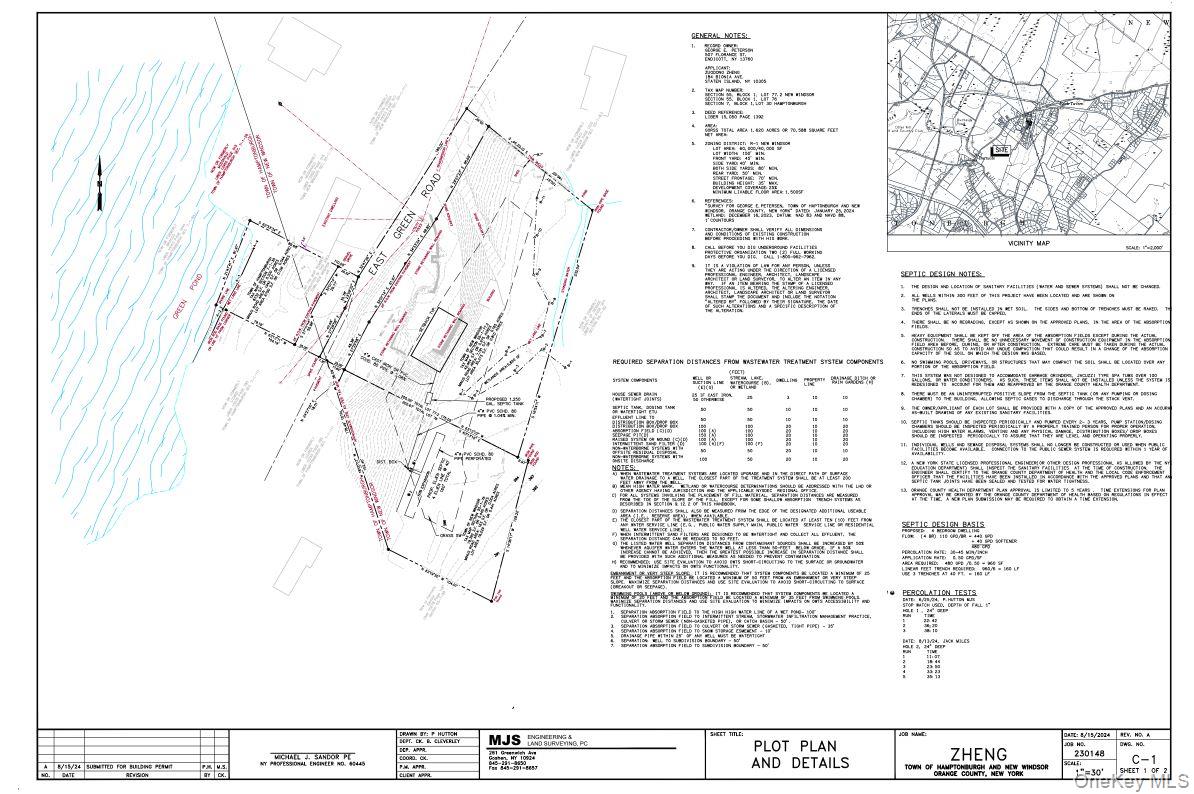 Shovel-ready residential homesite offering approximately 1. 6 acres with completed surveys, engineering, site plan, and architectural drawings already prepared for permit review. Extensive pre-development work has been completed, including septic, well, drainage, and construction access design—significantly reducing build timeline and uncertainty. The offering includes architectural plans for a modern single-family residence, featuring a cost-efficient 4-bedroom primary design, as well as an alternative larger 6-bedroom option. Sale also includes a separate deeded waterfront parcel directly across the street, offering approximately 81 feet of frontage on Green Pond (recreational use or improvements subject to town approvals). Located within the Washingtonville School District. Plans, surveys, and engineering documents available upon request.
