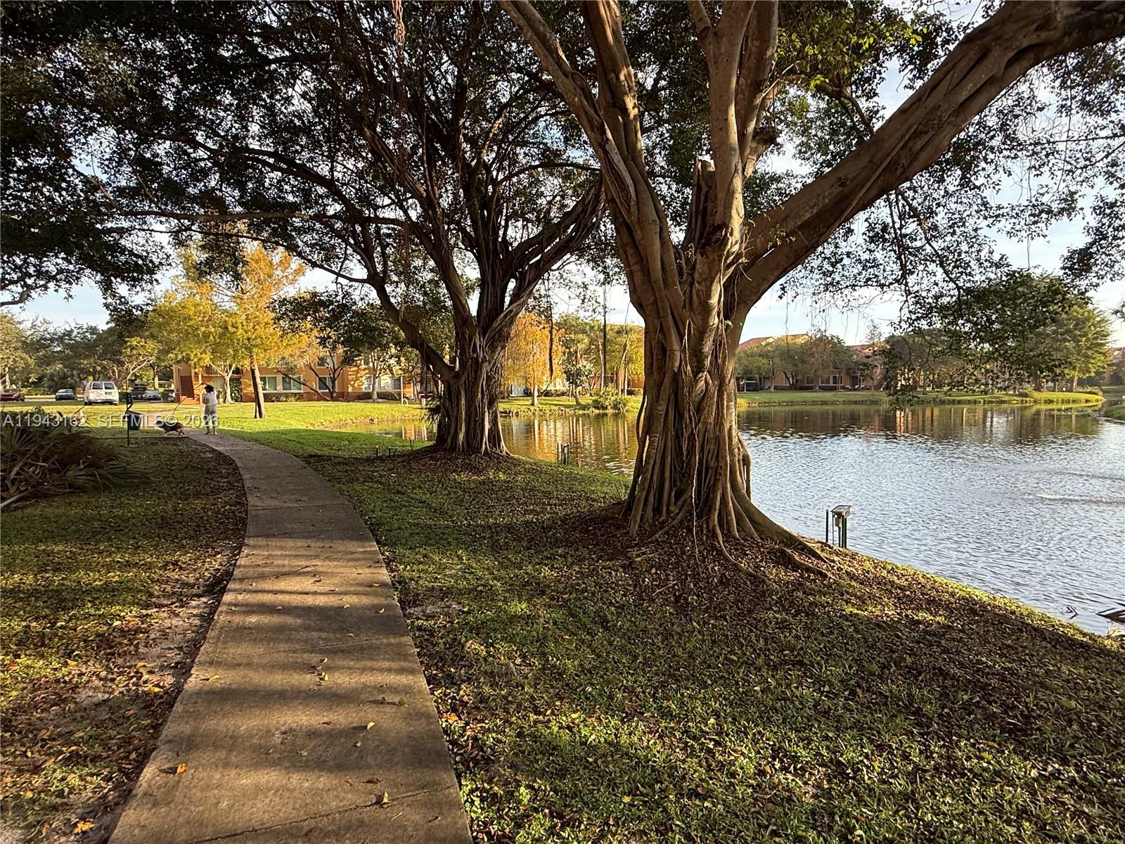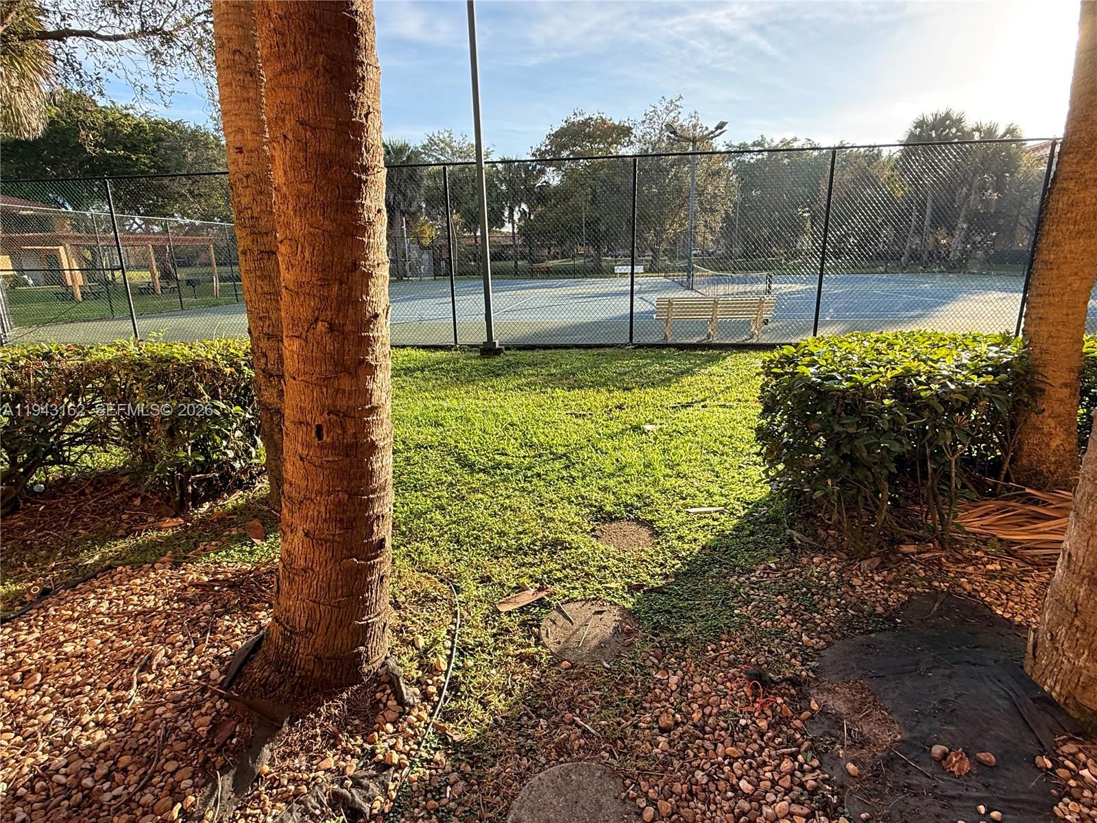 Bright ground-floor apartment with peaceful tennis court views. Features in-unit washer and dryer and an open, well-lit layout. New kitchen cabinets. Community offers resort-style amenities including pools, tennis courts, barbecue area, lake, fitness center, rentable clubhouse, and scenic walking paths surrounded by nature.