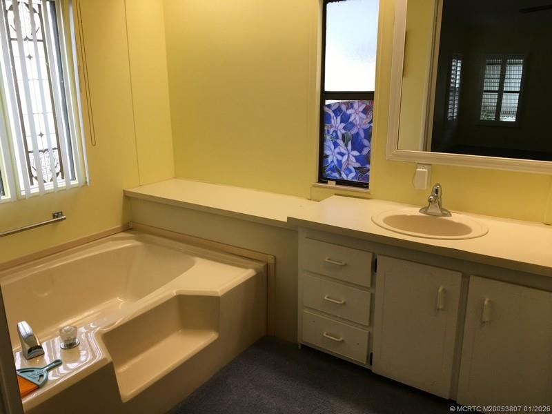Spacious floor plan on pleasant outer lot. One yr old Roof & A/C 4 yrs old, also new duct & insulation. New rain gutters & downspouts. Hi max kitchen counter tops & LG stainless stove, Bosch dishwasher , whole house water softener, osmosis water filter in kitchen. Laundry room has 3yr old LG Large washer & dryer. Home has WIFI thermostat, ring solar power cameras with lights, ADT security system transferable, new up to code electric outlets & GFI electric, updated whole house surge protection and power panel. Pleasant porch with windows. Private backyard has three tiered levels. Transparent hurricane shutters for kitchen eating area. Bahamas Hurricane shutters on other windows. Lot rent includes lawn care and many amenities from two swimming pools, club house, shuffle board, golf course with restraunt & Bar. This home is nestled in a charming 55 plus community in Indiantown, Florida with a charming peaceful rural atmosphere and still providing easy access to modern conveniences,