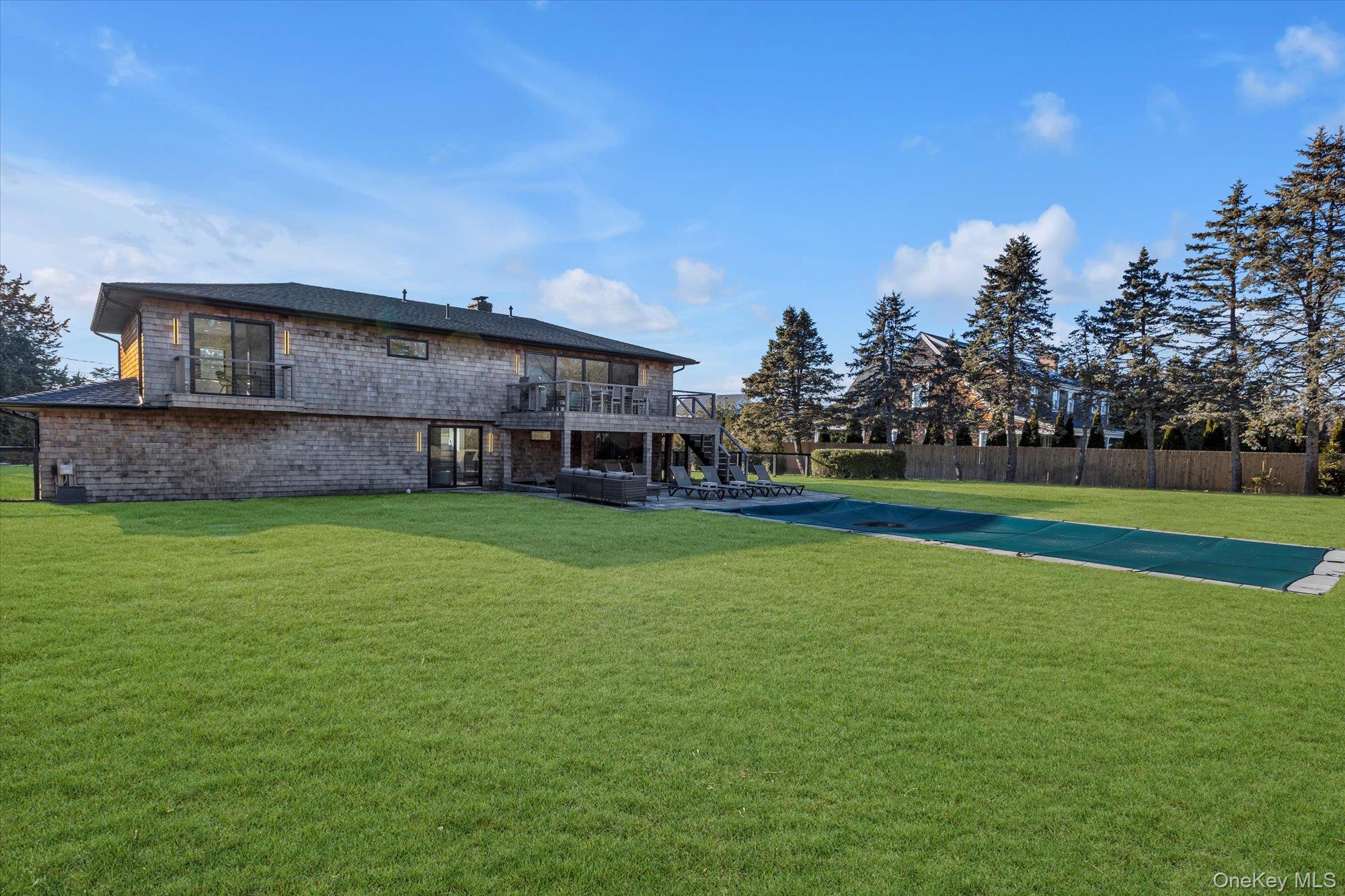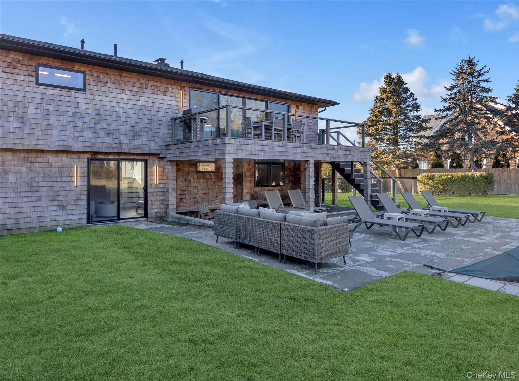 Recently completed and fully staged, this impeccably priced five-bedroom residence sits on a generous lot in a picturesque neighborhood just moments from both ocean and bay beaches. Surrounded by world-class golf courses and conveniently close to the village of Southampton, the home offers the perfect blend of luxury, lifestyle, and location. Thoughtfully designed from the ground up with no detail overlooked, this new home features a seamless indoor–outdoor layout ideal for entertaining. The open-concept kitchen showcases high-end finishes and premium appliances, flowing effortlessly into the dining area and living room, and anchored by a custom fireplace. A dramatic 16-foot glass slider opens to an expansive deck, a hidden outdoor living room, and a sun-drenched patio overlooking the beautifully landscaped backyard and heated gunite pool with discreetly housed new pool equipment. Private living spaces are equally impressive, led by a serene primary suite complete with a sitting area, Juliette balcony, spa-like bath with double vanity, water closet, oversized walk-in shower, and generous walk-in closet. Four additional bedrooms, three additional baths, and a den provide ample space for entertaining. Additional interior highlights include oak flooring and tiling plus all new lighting throughout, a spacious two-car garage with mudroom entry, and two laundry rooms. The all new exterior is finished with a shingled roof, half-round gutters, cedar Hamptons-style shingle siding, mahogany decking, Andersen windows and doors, and extensive custom stonework throughout the walkways, patios, and driveway. Behind the scenes, the home is fully outfitted with new modern infrastructure, including energy-efficient spray insulation, a gas furnace, Navien hot water system, two-zone HVAC, new plumbing and gas lines, a 200-amp electrical system, and underground utilities. The advanced I/A OWTS wastewater system allows for future expansion, complemented by a nine-zone irrigation system, a 1, 000-gallon propane tank, and both town and well water. A rare opportunity to own turnkey luxury in one of Southampton’s most desirable settings.