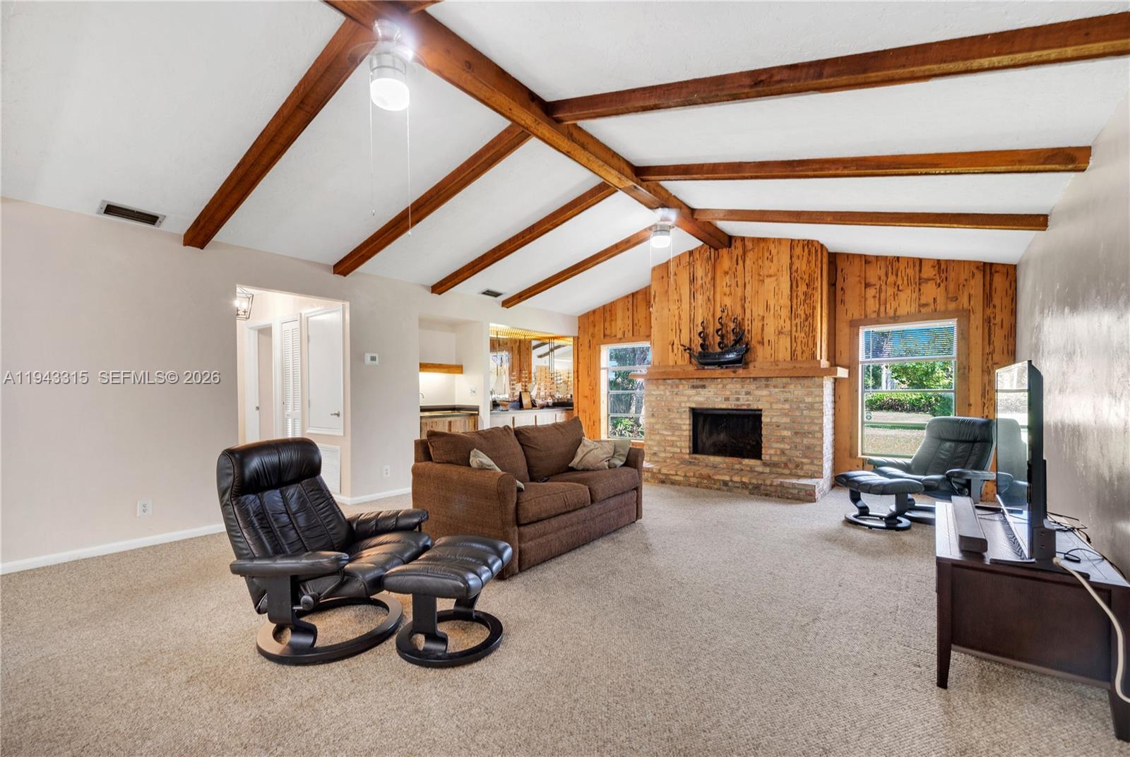 Discover this spacious 3BR, 2. 5BA home in sought-after Marcano Estates, Plantation! Offering 2, 801 sq ft of living space on an oversized 16, 560 sq ft lot at the end of a quiet cul-de-sac. Inside, enjoy an open floor plan with soaring volume ceilings that create an airy, elegant feel, an oversized family room with fireplace, a large sunken living room, and a split-bedroom layout for privacy. The primary suite is a true retreat, opening through French doors to a large deck with serene views of the sparkling pool and lush backyard. Step outside to your private oasis, complete with an oversized pool—perfect for sunny Florida days and entertaining family and friends. Additional highlights include dual A/C units (both newer: 2019 & 2021), solar panels for significant energy savings (likely just a nominal connection fee), freshly painted interior/exterior, refurbished sprinkler system, new landscaping, new blinds, and a 2-car garage with updated walls and floor. No HOA! A perfect opportunity to renovate and customize in a peaceful neighborhood close to parks, schools, shopping, and major highways.
