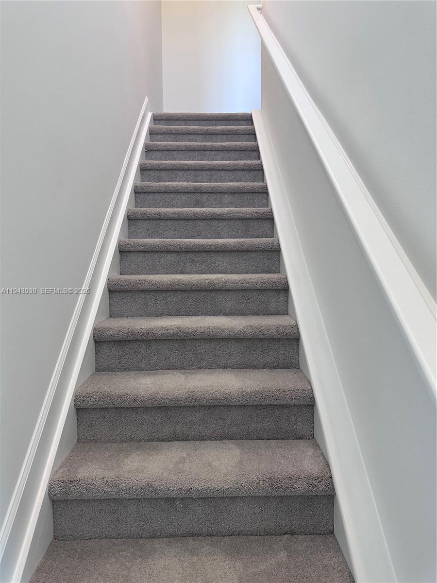 room and living room. Sliding glass doors is a terrace for outdoor relaxation. Upstairs carpet to all three bedrooms,