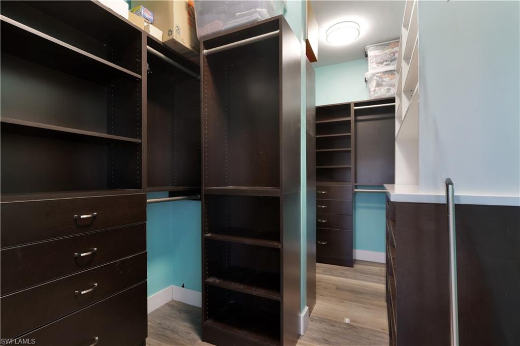 The upgraded garage features AC, epoxy flooring, hurricane-rated door with new lifter, Tesla charging station, and generator hookup. The chef’s kitchen showcases JennAir appliances, Fisher & Paykel paneled refrigerator, JennAir appliances and wine cooler, oversized sink, in-island microwave, Milky Way quartz countertops, and custom solid walnut island and cabinetry, plus ample storage with pantry and roll-out spice rack.