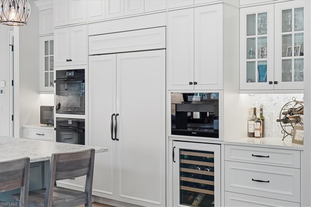 Welcome to 12888 Pond Apple Drive West, a stunning 4-bedroom plus den, 4. 5-bath residence that combines timeless architecture with refined interiors, all set within a lush and private oasis. The stately exterior, featuring manicured landscaping, mature palms, and a paver circular driveway, makes an unforgettable first impression. Inside, light-filled living spaces boast soaring ceilings, intricate millwork, and dramatic coffered ceiling designs, exuding elegance and sophistication. The main living area is centered around a striking stone fireplace with custom built-ins, creating a warm yet polished focal point for both everyday living and entertaining. Wide-plank wood flooring flows seamlessly through the main living areas, enhancing the home’s inviting coastal charm. The gourmet kitchen is a chef’s dream, offering custom cabinetry, a spacious center island with seating, premium appliances, and designer lighting. Its open-concept design effortlessly connects to the living and dining areas, making it perfect for hosting gatherings of any size. Expansive windows and sliding glass doors flood the home with natural light and provide serene views of the outdoors. Designed for both comfort and versatility, the home also features an upstairs family room, ideal for additional living or recreational space. Step outside to your private outdoor retreat, where a resort-style pool and spa create the ultimate setting for relaxation and entertaining in true Southwest Florida style. Located in the prestigious Quail Creek community, this home offers access to a gated golf lifestyle with 36 holes of golf, which are set to undergo a complete renovation by 2027. Additionally, estate homes in the community will be updated within the next 24 months, further enhancing the neighborhood’s appeal. Just minutes from world-class shopping, dining, beaches, and top-rated schools, this residence delivers the perfect balance of luxury, privacy, and convenience.