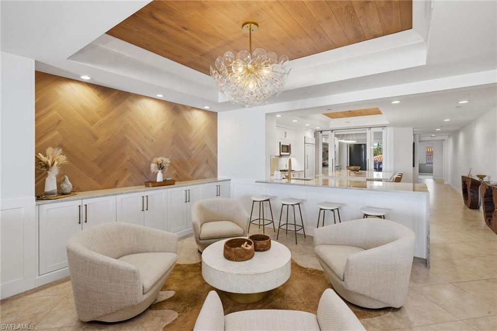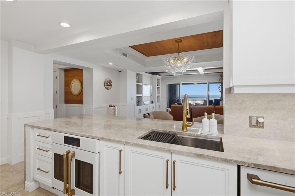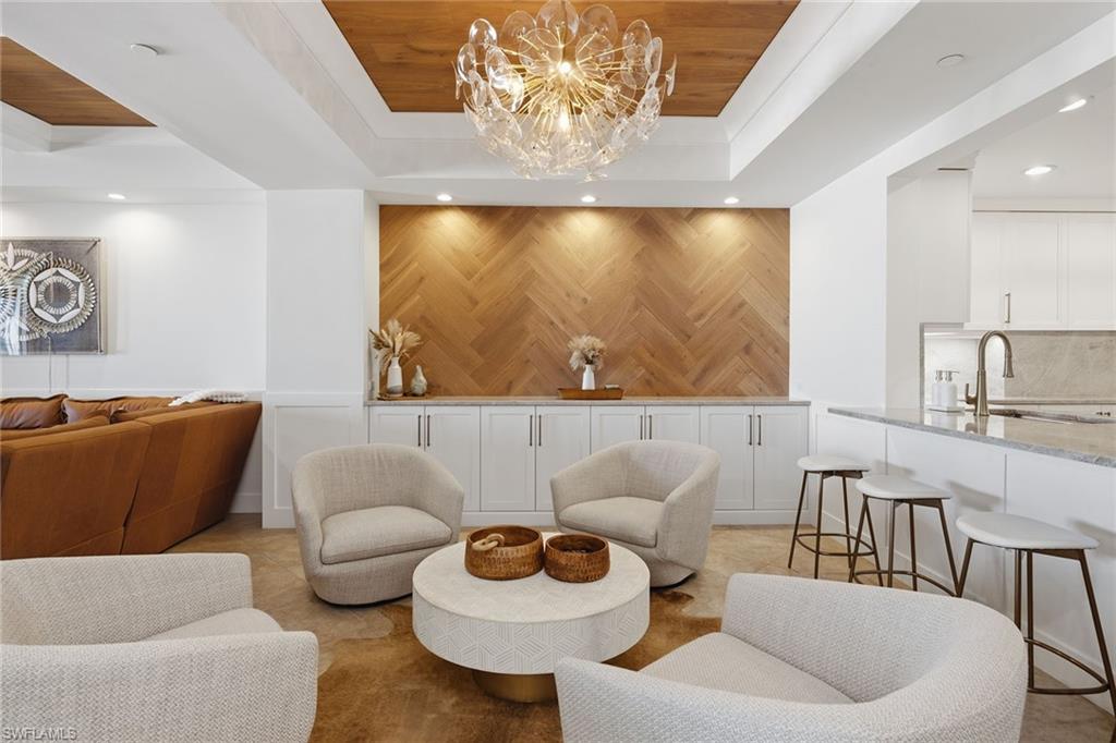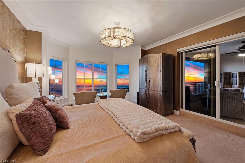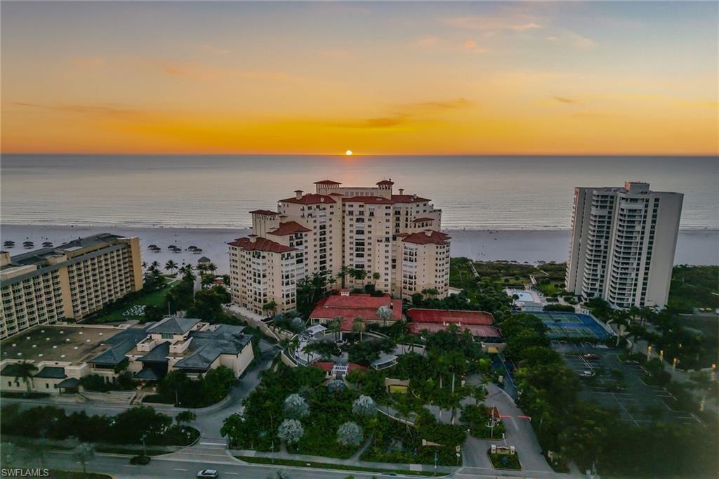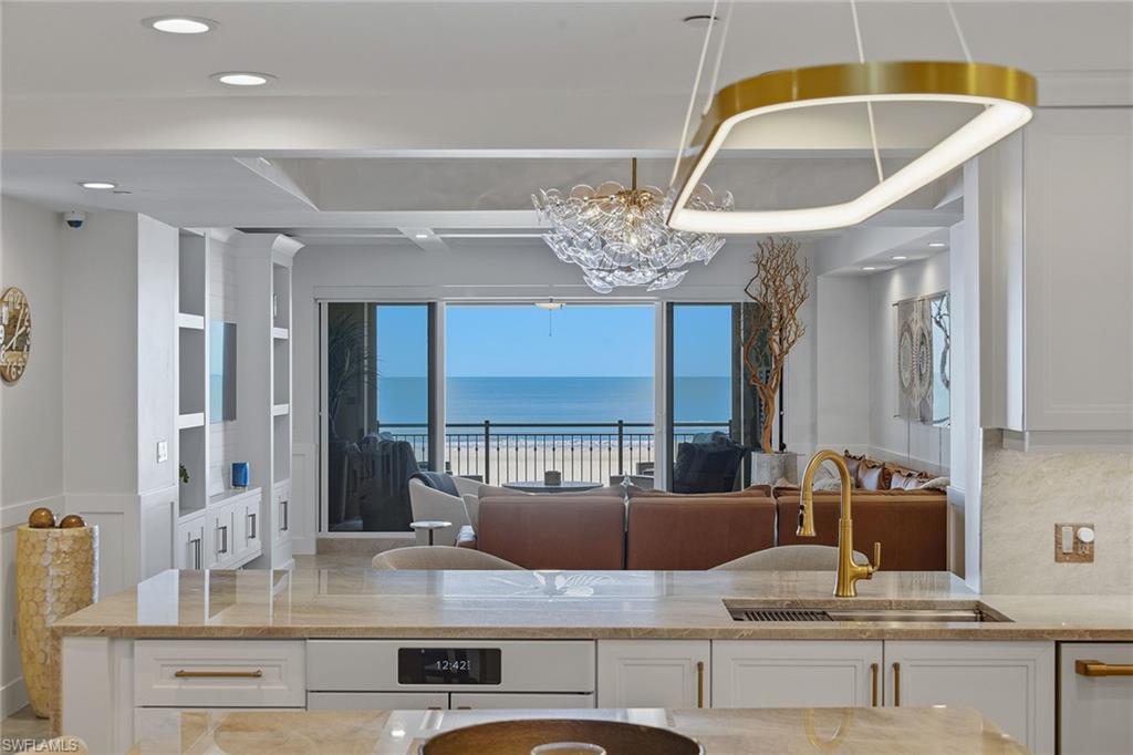 Positioned with desirable western exposure to enjoy breathtaking sunsets on Marco Island’s award-winning, two-mile crescent-shaped beach, this updated front-unit residence captures sweeping, unobstructed views of the Gulf’s turquoise waters, pristine white sands and lush tropical grounds, offering an exceptional beachfront lifestyle within the prestigious and sought-after Madeira community. Ideally adjacent to JW Marriott Marco Island and just moments from Residents’ Beach, the impressive setting provides the rare balance of tranquil seclusion and effortless access to world-class dining and vibrant island amenities and activities. Offered turnkey furnished for immediate enjoyment, the thoughtfully designed floor plan features three bedrooms and two-and-a-half baths, blending refined coastal elegance with everyday comfort. The living and dining areas are beautifully enhanced by diagonal-set porcelain tile flooring, a striking copper ceiling with wood inlay, crown molding, recessed LED lighting, custom built-ins and quartzite-topped cabinetry, all flowing seamlessly toward expansive Gulf views. The chef’s kitchen, with a beach and water view, is exquisitely appointed with quartzite countertops and island, full quartzite backsplash, premium cabinetry, under-cabinet lighting, a compass inlay detail and high-end appliances including a Wolf gas cooktop, French-door wall oven, Sub-Zero refrigerator, built-in microwave, dishwasher and beverage refrigerator. A versatile bedroom/den with glass-front barn doors, custom cabinetry, electric shades, and private balcony access serves effortlessly as a home office, media room or guest retreat. The serene primary suite offers plush carpeting, breathtaking Gulf views, electric blinds, custom closet systems, and a spa-inspired bath featuring marble vanities, jetted soaking tub, walk-in shower with dual showerheads and elegant marble accents. A gracious guest suite with an en-suite bath, a stylish powder room and a well-equipped laundry room add to the home’s functionality. Outdoor living is elevated with two balconies, including the expansive covered beachfront balcony, ideal for relaxing or entertaining while enjoying unforgettable sunsets over the Gulf, complete with porcelain tile flooring, ceiling fan, impact glass and electric roll-down storm shutters. Madeira residents enjoy an exceptional amenity collection, including a resort-style beachfront pool and spa, barbecue area, pickleball and tennis courts, fitness center, billiards and theater rooms, guest suites and 24-hour security, all set in one of Marco Island’s desired beachfront locations where peaceful coastal living meets unparalleled convenience. The desirable Madeira building is ideally relaxing on the beach, exploring, fishing and beach yoga, and convenient to everything we love about Marco Island, including yacht clubs, executive airport, boutiques, library, parks, museum and popular restaurants.