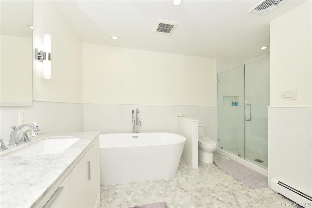 Welcome to this exquisite five-bedroom Colonial located in East Hills' highly sought-after Nob Hill neighborhood. The main level features an elegant foyer, a generous living room, a powder room, w/ radiant floors. . The incredible kitchen, updated two years ago, showcases stainless steel appliances including a Thermador oven/stove, an eat-in space, and a pantry adjoining the laundry room. A formal dining room and a den with a wood-burning fireplace and outdoor access complete the floor. Upstairs, a grand primary suite w/ a luxurious, brand-new bathroom featuring a soaking tub, dual vanity, and separate shower. A secluded junior suite offers an en-suite bath and expansive walk-in closet. Three additional sizable bedrooms with ample storage, a second staircase, and a large, skylit landing define the upper level. The Basement is fully finished, and ready to be used as an office, a rec. room or a guest hangout. Plenty of storage and a utility room complete the space. The completely fenced property includes a magnificent backyard oasis with a heated vinyl pool, a spa, and a new cover. Newly refinished wood floors span the entire residence, complemented by a wine fridge and a two-car garage with soaring ceilings and new double front entry doors. The home include four-zone gas heat, 2 Zone central air, indirect water heater, and smart thermostats.