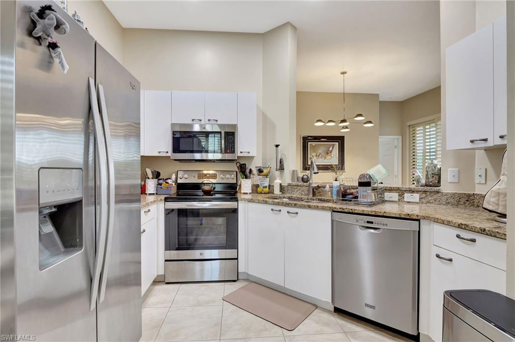 Lakeview Condo in Concord at the Vineyards – Rare Opportunity! Welcome to your slice of paradise in the heart of Concord Vineyards! This beautifully bright and spacious second-floor 3-bedroom, 2-bathroom condominium offers serene lake and fountain views from a large screened-in lanai—perfect for relaxing mornings or peaceful evenings. Designed with a thoughtful split floor plan, this home features soaring high ceilings, creating an open and airy atmosphere throughout. The kitchen is a chef’s delight with granite countertops, stainless steel appliances, and ample cabinetry for storage. Each bedroom boasts generously sized walk-in closets, and there's plenty of additional storage throughout the home. Enjoy the convenience of having your private garage on the ground floor and living space all on one level above. A new roof was installed in 2024. The home comes semi-furnished, offering a great start for seasonal or full-time living. As a resident of Concord at the Vineyards, you'll have access to a community pool and fitness area. Optional memberships at Vineyards Country Club provide access to world-class amenities including golf, sports, social events, dining, and more—with packages tailored for every lifestyle, including young professionals. Located just minutes from premier shopping, dining, boating, beaches, and top-rated hospitals, this condo truly offers the best of Naples living. Don’t miss out on this rare gem—schedule your showing today. It won’t last!