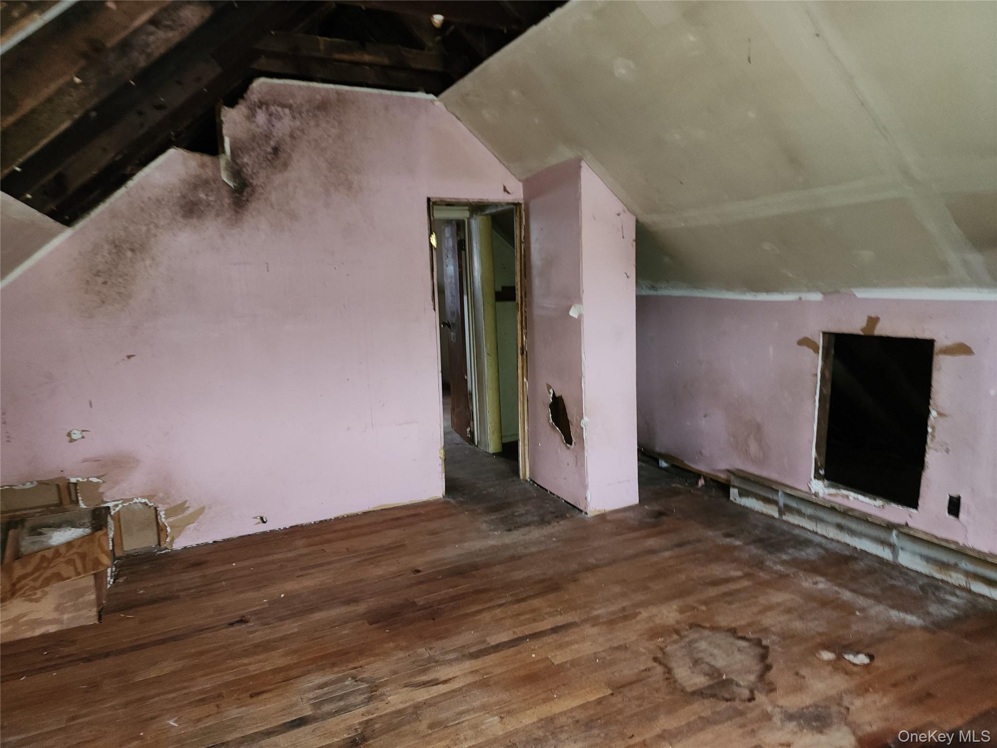 Four-bedroom, one-bath. Home needs kitchen, bath, walls etc. No basement. Sold as is bring your vision.
