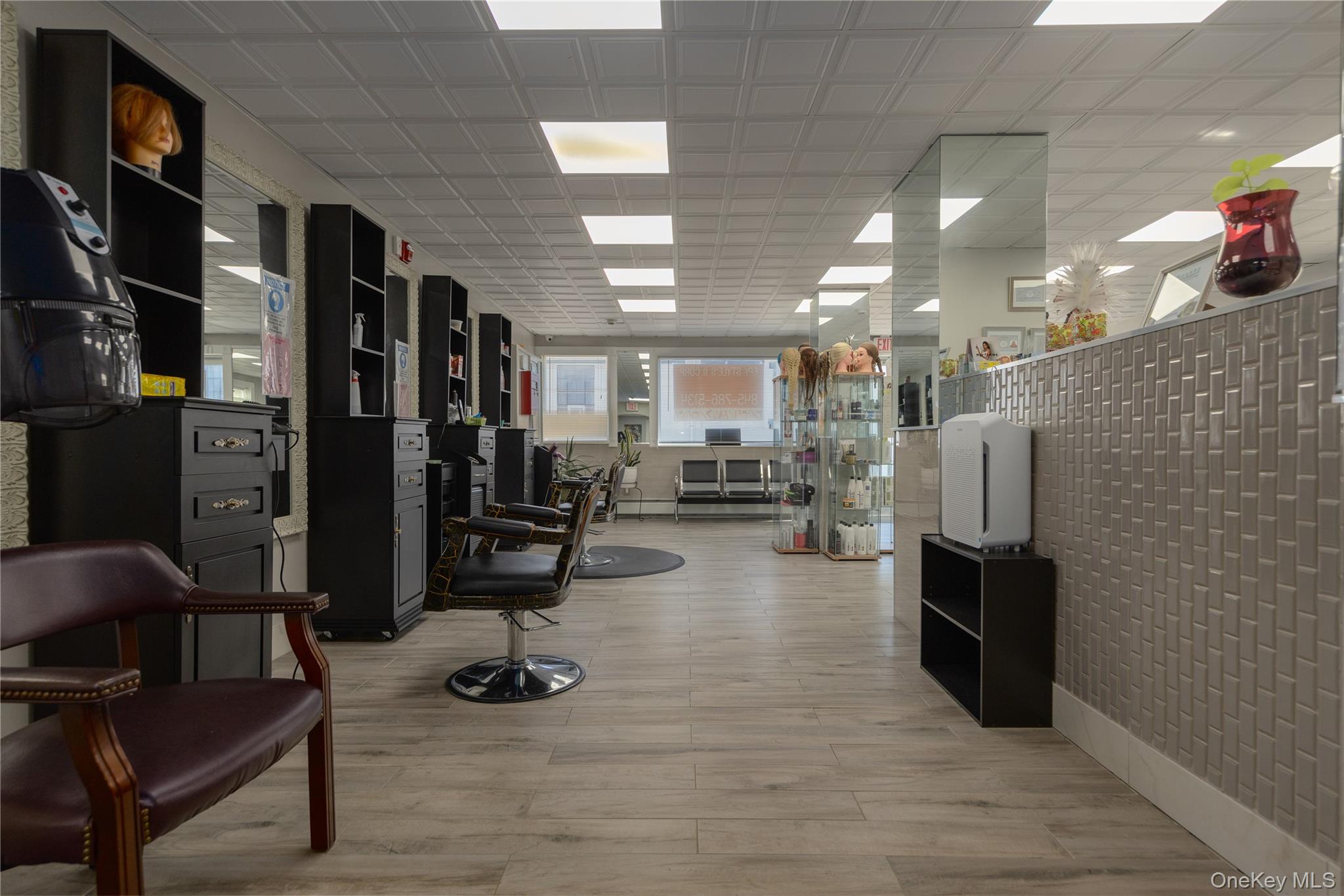Existing hair salon business for sale or retail space can be turned over vacant 2050 sq. ft. plus a totally finished basement. Highly visible storefront, Two Bedroom. one bath apartment upstairs. Right across from the Garnerville Arts and Industrial Center, Close to stores, restaurants, gas stations, pharmacy. Additional Information: