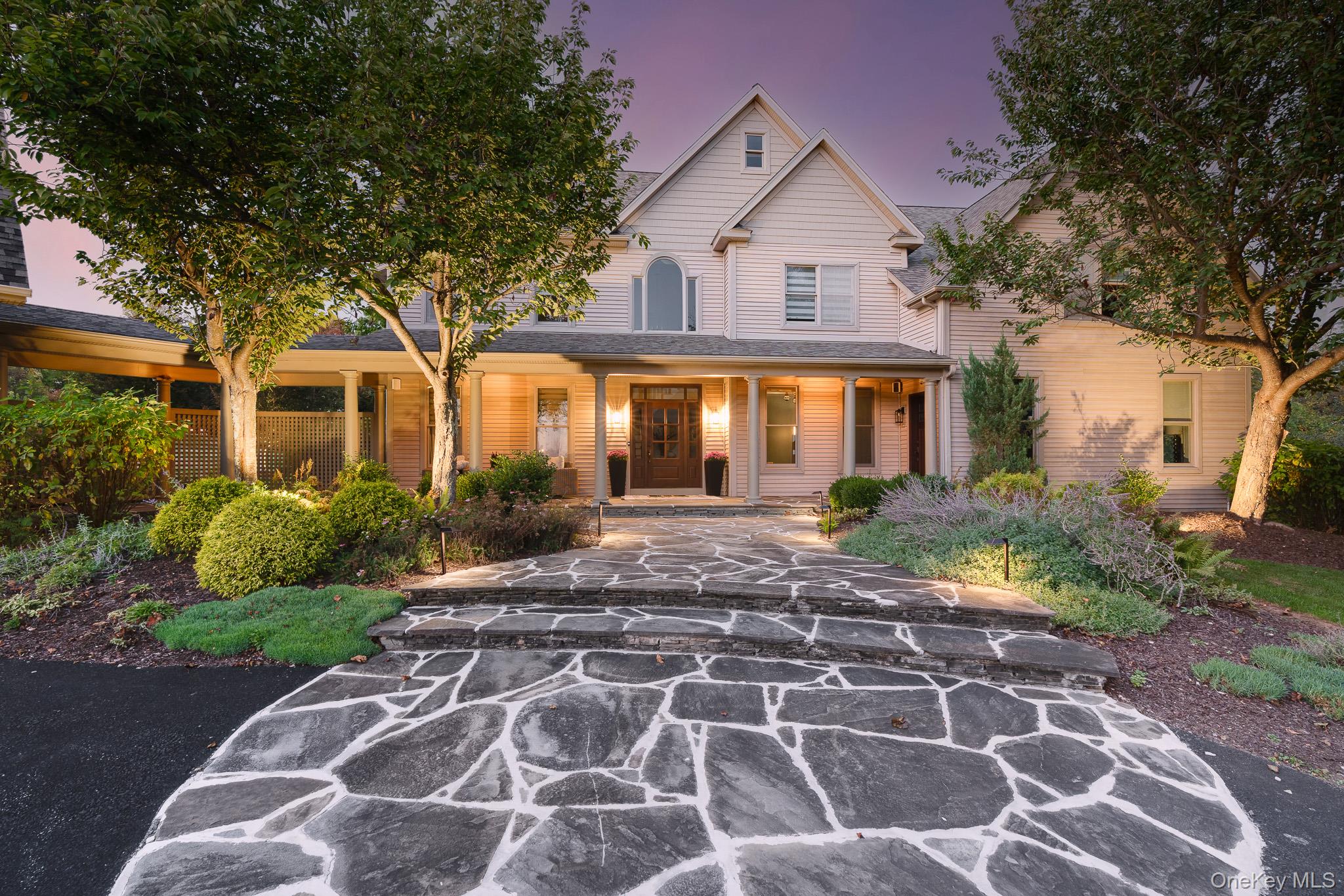 Follow the long meandering driveway to the place you'll call HOME, 55 Townsend Farm. An amazing get-a-way situated on almost 10 acres of privacy in the heart of the Hudson Valley. This stunning Farmhouse Colonial has it all. The main house features almost 7000 finished SQ FT, 4/5 bedrooms, 5. 5 baths and full rocking chair front porch. Step into the grand 2-story foyer where you are welcomed into the open first floor plan that features 9' ceilings throughout, custom yellow pine wide plank floors, formal living and dining rooms, office, first floor bedroom with en suite full bath and powder room and laundry/mud room with floor to ceiling custom lockers. The updated chefs kitchen with a light filled breakfast nook, with Viking range, 42" white shaker cabinets, Quartz countertops and stainless steel appliances opens to the 2-story great room centered around the stone floor-to-ceiling gas fireplace that leads into the cedar lined sun room with oversized windows and double French doors allowing ample natural light and egress to the outdoor oasis and blue stone patio. Upstairs you will find the primary suite with tray ceilings, oversized walk-in closet and en suite bathroom with soaker tub, double vanity and custom tile shower with glass surround. Two well sized bedrooms share a Jack & Jill full bath with a fourth princess suite. Full finished lower level has just over 2000 SQFT featuring a gym, movie room, full bath and rec/billiards room and walk-out, perfect for entertaining! Welcome to your outdoor oasis, a true Shangri-La with gunite in-ground pool with all new systems, full outdoor kitchen and bar, pool house with full bath and kitchen and full sized basketball court. Mature landscaping and gardens that have taken years to create, RAB landscape lighting and SONOS controlled audio with multiple zones throughout the entire home and pool area. Oversized 3-car garage with unfinished walk-up attic for additional storage or future bonus room and detached oversized 2-car garage at the back of the property making a total of 5 garage bays. Additional features are new roofs with warranties, full house Ubiquiti Wi-Fi with multiple access points, freshly painted throughout, in-ground irrigation, and newly sealed driveway. Excellent location, right off the Taconic PKWY, private yet relative, close to culinary grade restaurants, schools, shopping and more! Just over 70 miles to NYC, this makes the perfect weekend get-a-way or full time residence. Come see all that the Hudson Valley has to offer!