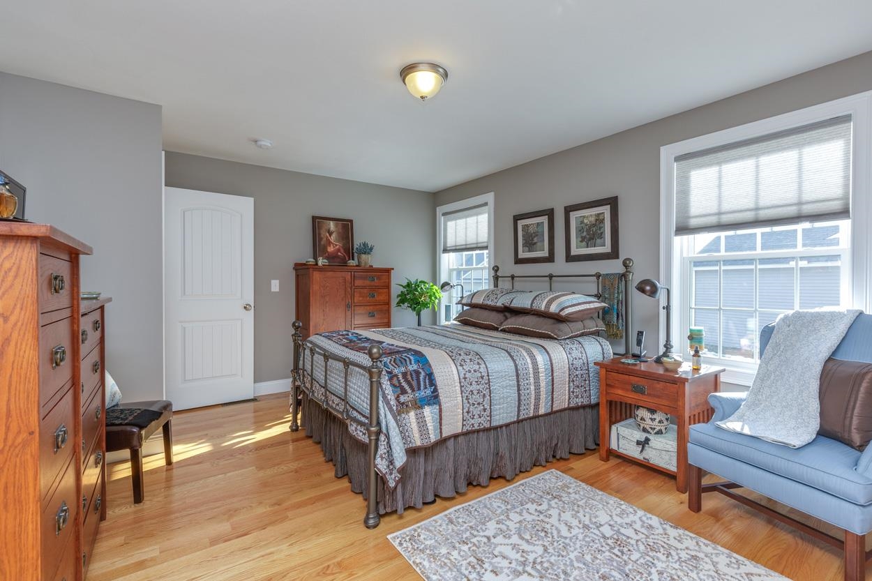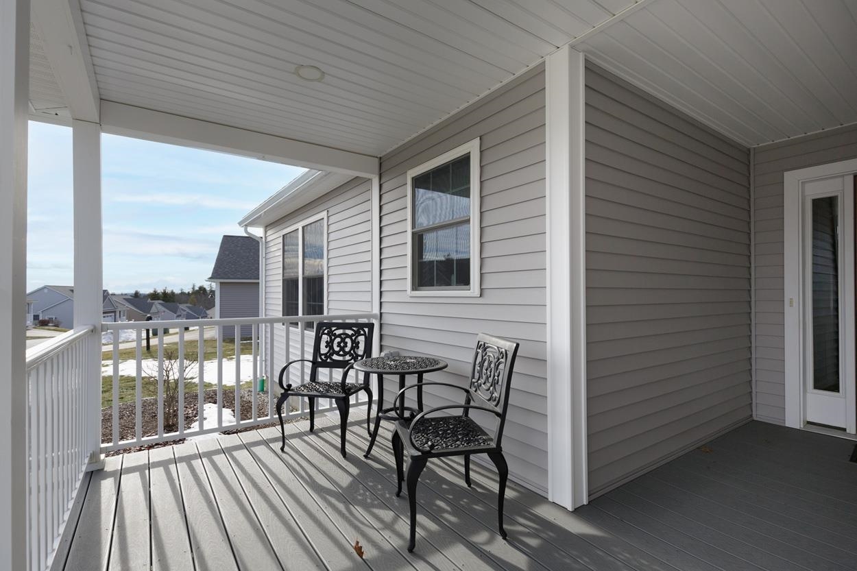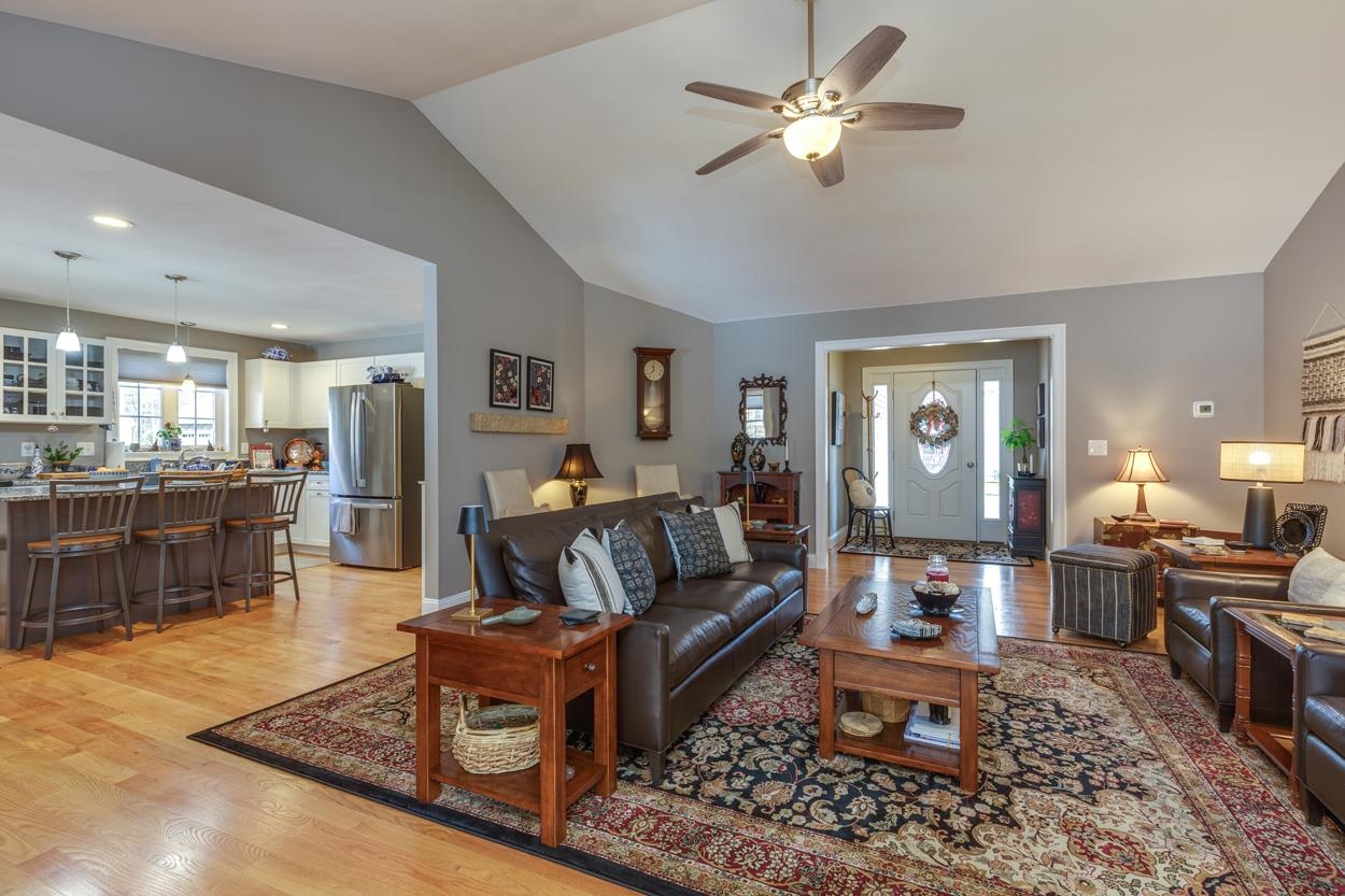 Welcome to this nearly new, highly desirable, all one level living, ranch style detached condo. This neighborly 55-plus community is located conveniently just minutes from Rt 101, yet offers a tranquil setting that is ideal for walking and enjoying the outdoors. The open concept floor plan includes a vaulted ceiling living room w/gas fireplace; office/den with access to rear deck (grill is hooked up to house propane eliminating the hassle of refills); eat-in kitchen w/ample cabinets and granite top counter space; dining area. Beautiful hardwood floors throughout w/raised panel doors. Laundry room w/half bath. Primary bedroom en-suite; Plus, guest bedroom w/common full bath. The two stall attached garage includes a ramp into the house which can be easily removed if not needed. (Basement can be finished to add bonus living area!) On demand house generator provides peace of mind. The surroundings offer both landscaped outdoor space and natural wooded areas for nature watching. This is a MUST SEE property.