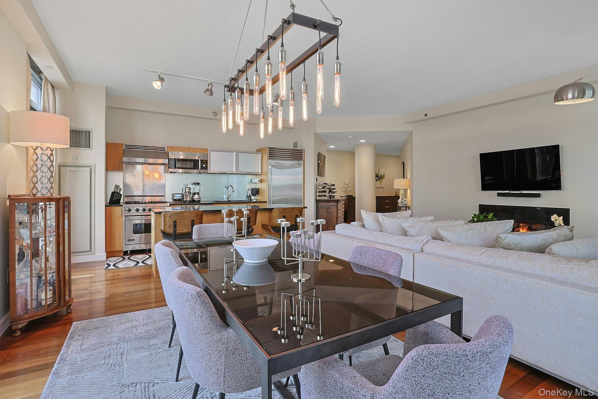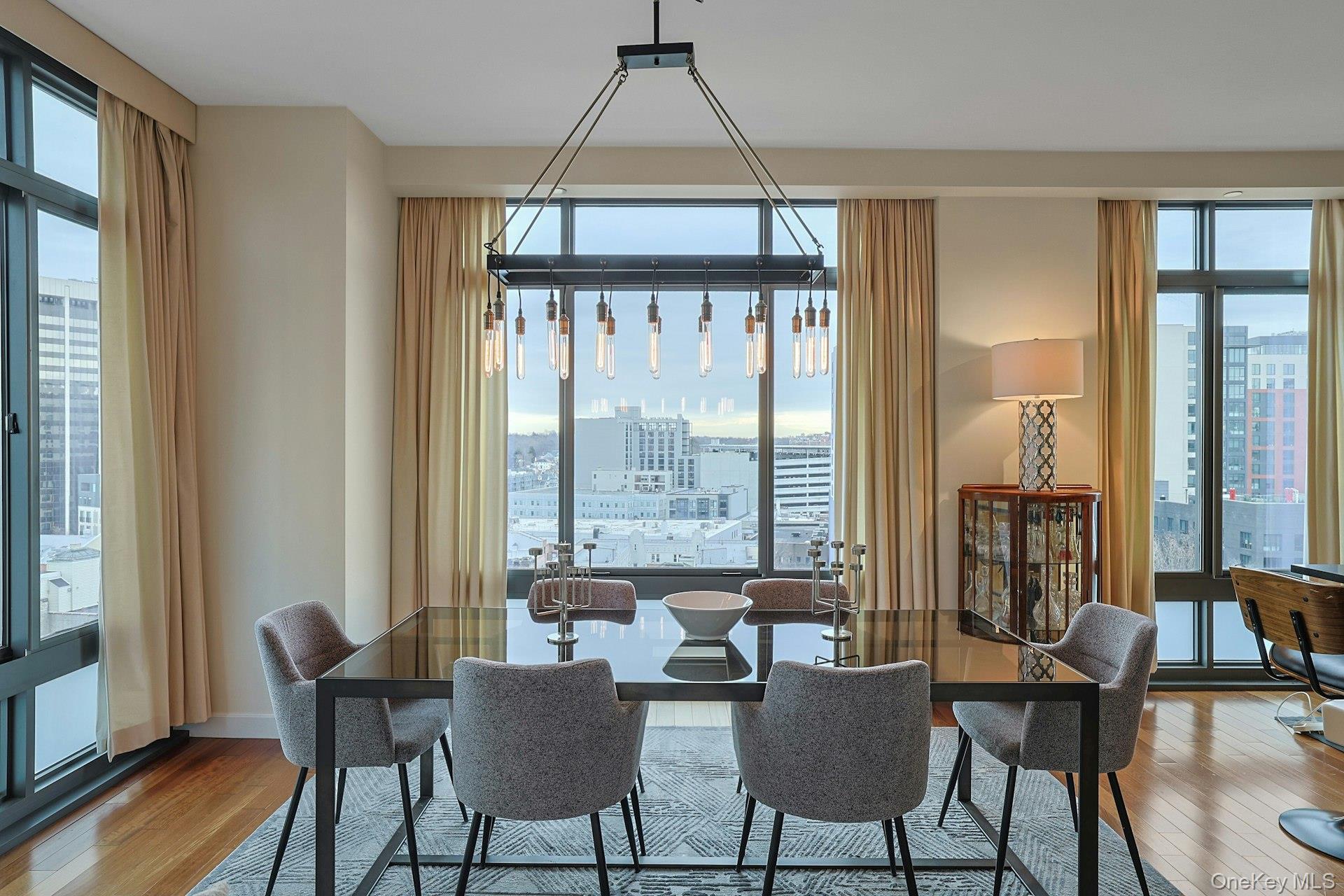 Welcome to The Lofts at City Place! This stunning boutique luxury building offers a sophisticated urban lifestyle complemented by exceptional resort-like amenities. This rare three-bedroom corner residence immediately captivates with its soaring 11-foot ceilings and expansive open-concept design, evoking the airy, modern feel of a chic SoHo loft. Floor-to-ceiling windows offer lovely views and bathe the home in natural light. An elegant gas fireplace adds warmth and a refined ambiance to the main living space. The fabulous chef’s kitchen opens seamlessly to the living and dining areas and features stone countertops, stainless steel appliances, and a generous center island with seating—perfect for relaxed everyday living as well as effortless entertaining. The tranquil and private primary suite boasts a spa-inspired, newly renovated white marble bathroom with radiant heated floors, double vanity, soaking tub, and separate shower. Two additional bedrooms offer wonderful versatility and can serve as guest suites, home offices, or creative spaces. They share a beautifully renovated hall bath with a seamless/no-step oversized shower with both rain-head and handheld fixtures. There are six Nest thermostats throughout the apartment providing customized comfort and climate control at every turn, as well as an Arlo security/camera system. Additional conveniences include a stylish marble powder room, an in-unit stackable washer/dryer and an optional lower level (L3) storage room/closet. Residents enjoy an unparalleled array of amenities, including a fabulous and sprawling 9th floor recreation deck with swimming pool (lifeguard on duty), changing rooms, night lit tennis/pickleball courts, multiple BBQ areas, basketball court, putting green, children's playground, herb gardens and walking paths. Indoor amenities are abundant with a wonderful indoor swimming pool with spa and sauna, a newly renovated fitness center with weights, Peloton bikes, and a stretching room, fabulous business center with conference facilities, playroom, and a residents lounge. The location is exceptional—short distance to Metro-North for frequent express trains to NYC, and enjoy immediate access to great shops, restaurants, and The Westchester Mall, home to Neiman Marcus, Gucci, the Apple Store, and more. Just 20 minutes to Westchester Airport. A luxurious, relaxed lifestyle awaits!