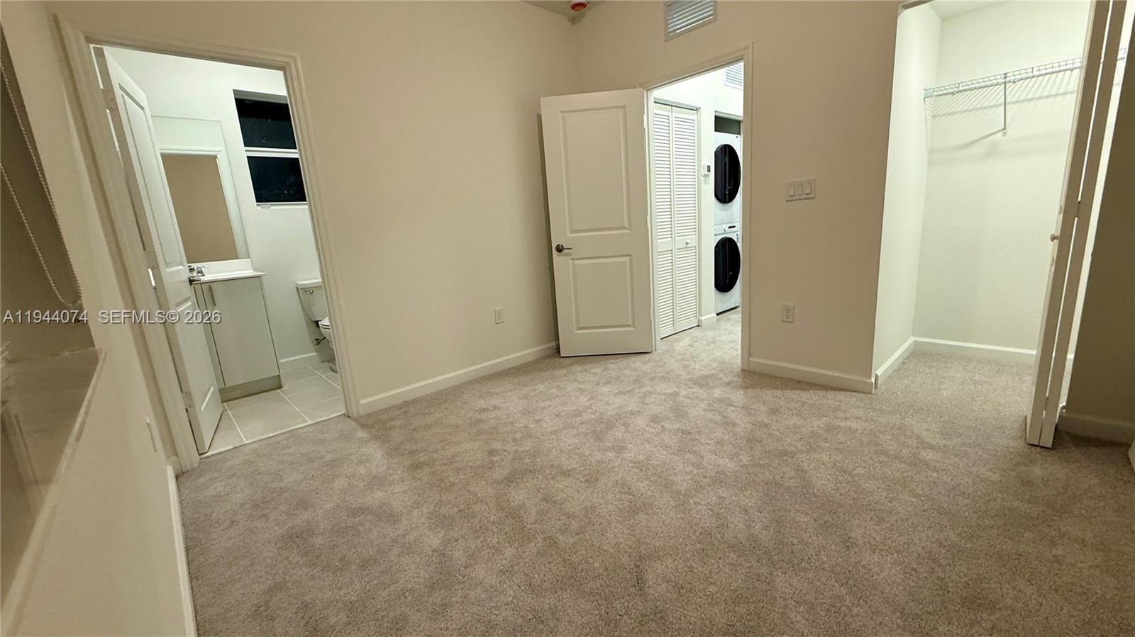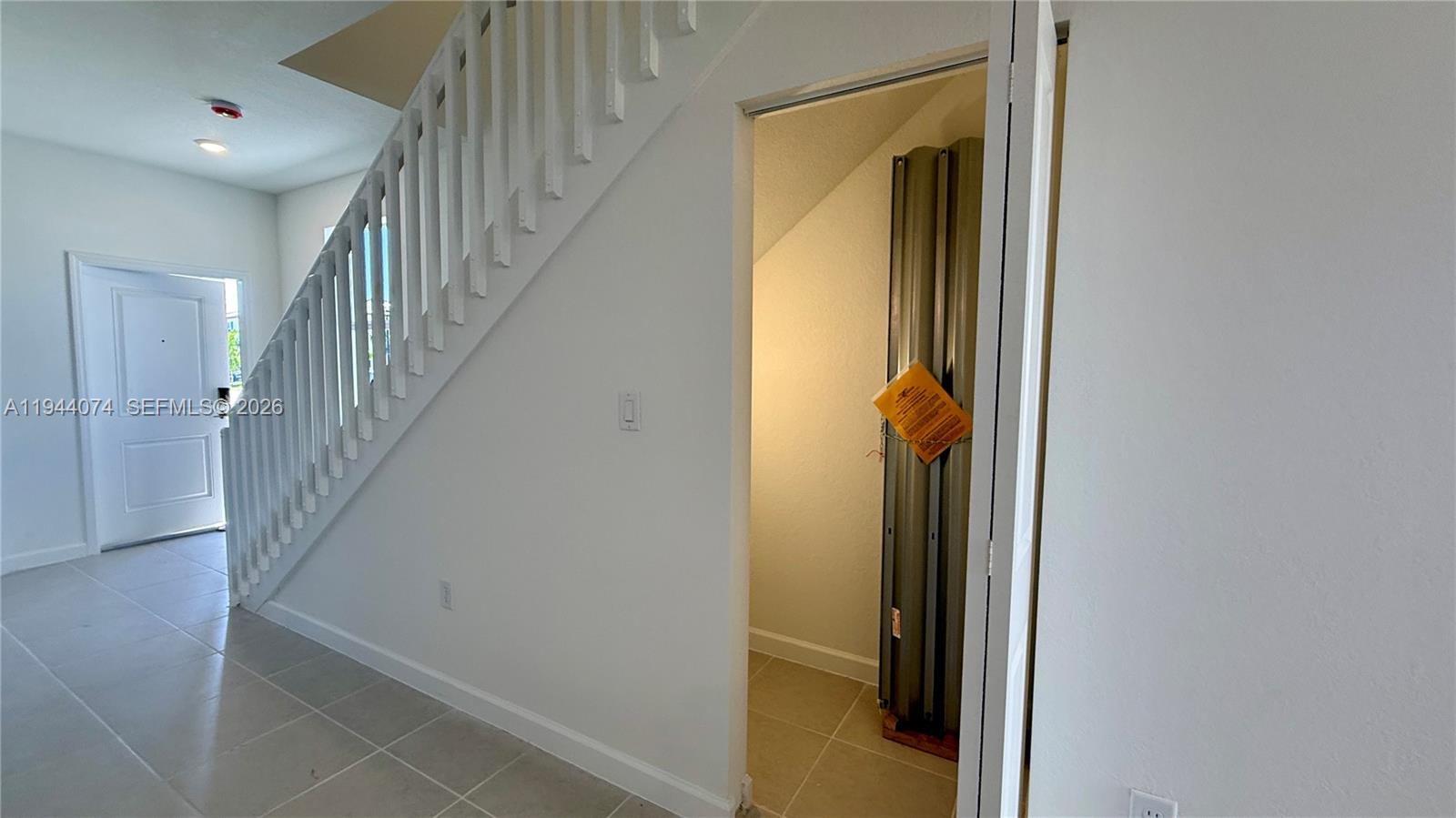 The kitchen is equipped with stainless steel appliances, solid surface countertops, and modern finishes. Stylish tile flooring in the main areas, blackout shades, screens, and a new generation washer and dryer complete the home with thoughtful details throughout.