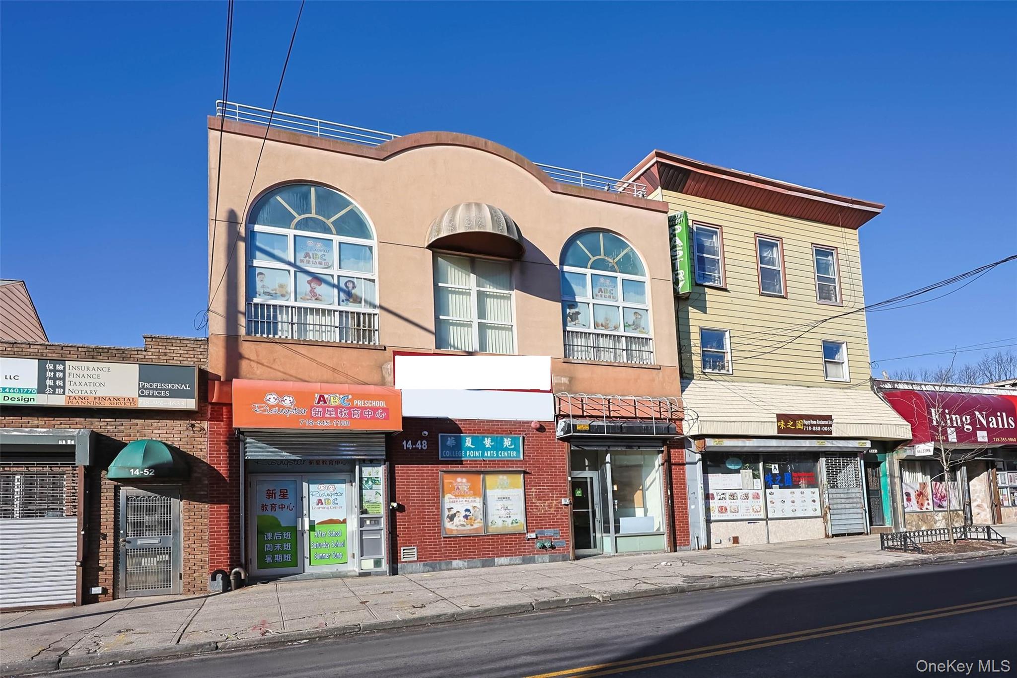 Exceptional opportunity to acquire a well-maintained, elevator commercial building in the heart of Downtown College Point. Formerly operated as the College Point Arts Center, this versatile property is ideally suited for educational, school, arts, professional, medical, religious, or community uses. Property Highlights: Approx. 2, 600 SF per floor (1st & 2nd floors), Full finished basement. Elevator servicing multiple levels, Central A/C (CAC) & sprinkler system, Back playground approx. 1, 320 SF, Additional rooftop space, Excellent street visibility on College Point Blvd, Turn-key condition. Layout Breakdown: Basement: Office, dryer, washer, utility room, water meter room, elevator machine room; 1st Floor: Office, school reception area, classrooms, kitchen; 2nd Floor: Office and classrooms; 3rd Floor: Storage. Zoning & Usage Flexible layout and infrastructure make this property ideal for: Schools & educational institutions; Art centers & studios; Professional offices; Medical or wellness centers; Religious or community facilities