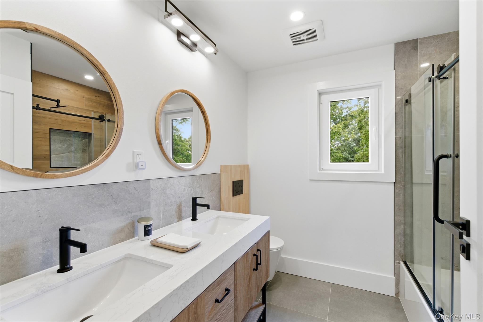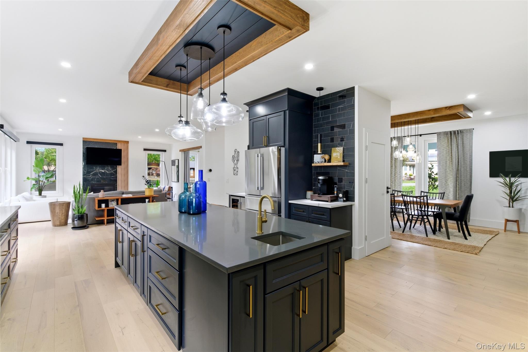 Nestled in the highly desirable North Shore hamlet of Mount Sinai, this exquisite newly constructed residence seamlessly blends modern luxury with classic Long Island living. Set on a generous 0. 69-acre lot, the home offers an exceptional combination of thoughtful design, prime location, and elevated lifestyle. Boasting five spacious bedrooms and three full bathrooms, every detail reflects quality craftsmanship and meticulous attention throughout. Upon entry, you are greeted by a dramatic cathedral-ceiling foyer highlighted by a striking staircase, elegant moldings, and expansive tilt-and-turn windows that bathe the home in natural light. The open-concept main level is ideal for both everyday living and entertaining, featuring a formal living room, formal dining room, and a grand great room with a gas fireplace and soaring 10-foot ceilings. The gourmet kitchen is a chef’s dream, showcasing an oversized quartz waterfall island, custom cabinetry, gas cooking, premium stainless-steel appliances, and a walk-in pantry. Upstairs, the luxurious primary suite offers vaulted ceilings, a spacious walk-in closet, and a spa-inspired bathroom complete with a soaking tub, glass-enclosed shower, double vanity, and radiant heated floors. Four additional generously sized bedrooms share a beautifully appointed full bathroom, while a conveniently located second-floor laundry room enhances everyday ease. The full unfinished basement with an outside entrance provides endless potential for future customization. Additional highlights include an oversized two-car attached garage and ample driveway parking. Ideally located just 3. 5 miles from Cedar Beach, 2. 7 miles from Port Jefferson Village and ferry to Connecticut, and 1. 5 miles from the Port Jefferson train station. Situated within the award-winning Mount Sinai School District, this exceptional property offers the perfect balance of convenience, comfort, and refined living.
