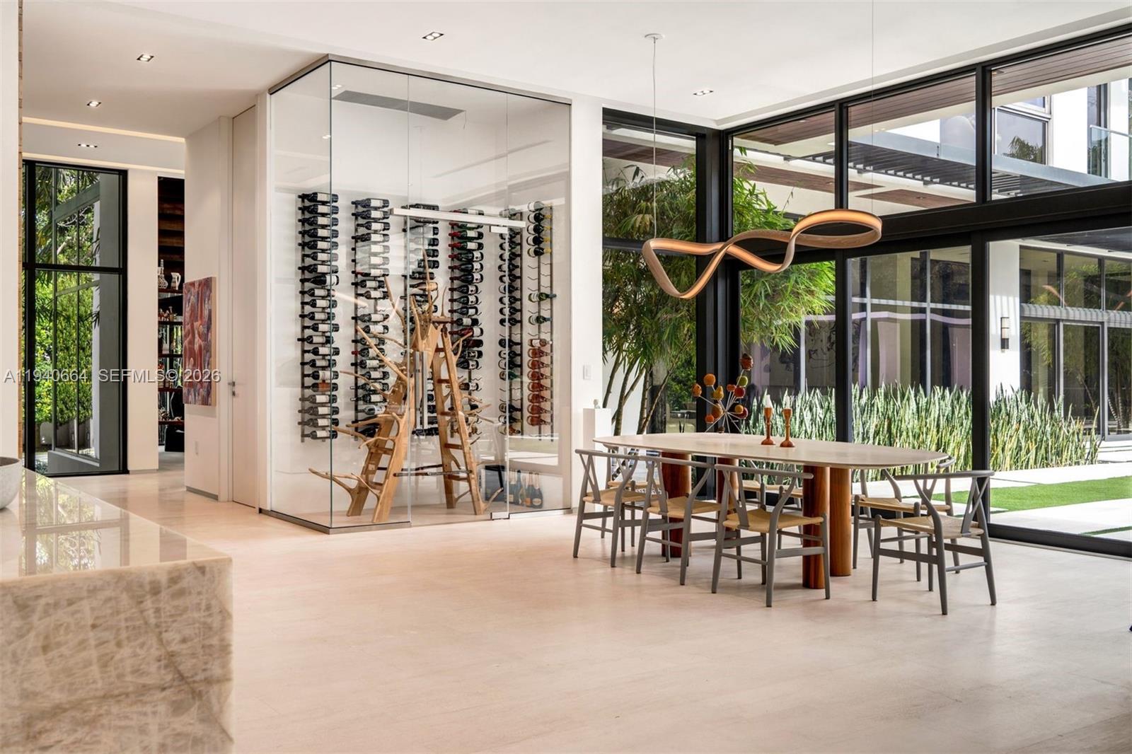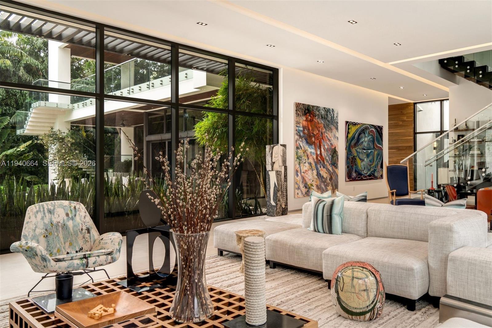 Designed by renowned architect Alberto Cordovez, this extraordinary Ponce Davis estate delivers nearly 10, 000 SF under air on an expansive 45, 302 SF lot. Featuring 7 bedrooms, 8 full baths, and 1 half bath, the residence blends striking modern architecture with resort-style living. A private gated drive leads to an oversized driveway and a 3-car garage with space for 3 additional car lifts, surrounded by lush tropical landscaping featuring bamboo and foxtail trees. Interiors showcase soaring ceilings, limestone and hardwood floors, fluted walls, integrated architectural ceiling system, custom Italian doors, elevator, Crestron automation, private movie theater, full gym, and multiple family and entertaining spaces—all bedrooms overlooking the pool. The chef’s Mia Cucina kitchen is equipped with Wolf and Sub-Zero appliances, double ovens, steam oven, wine room, and oversized island. Outdoors, enjoy covered terraces, summer kitchen, cabana, and a 20’ x 40’ saltwater infinity pool with spa and waterfall. A full-house generator, a full house water filtration system, advanced security, and premium systems complete this one-of-a-kind modern retreat.