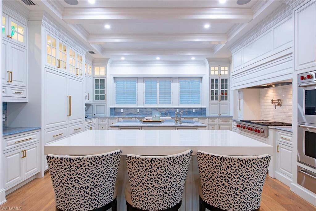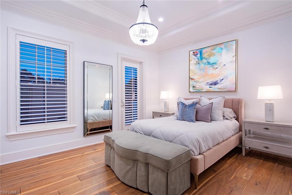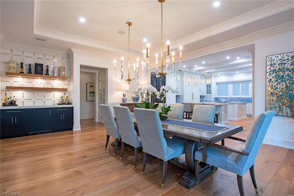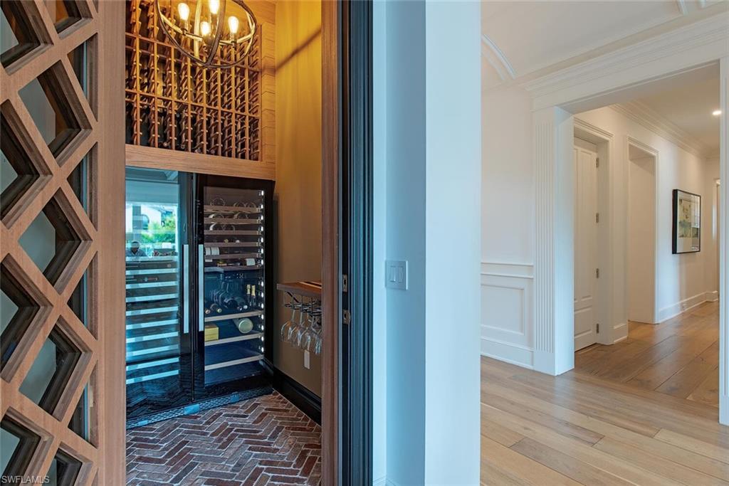 A landmark, custom built, Old Naples estate just four homes from the Gulf. Elevated and recently renovated, this exceptional residence offers over 7, 500 square feet of refined AC-living with timeless architecture and exquisite craftsmanship. Features include a grand two-story foyer, coffered ceilings, rich millwork, library, formal dining, and expansive living spaces filled with natural light. The chef’s kitchen boasts Wolf and Sub-Zero appliances, dual islands, marble prep areas, butler’s pantry, and wine cellar. The luxurious master suite offers a sitting area, dual walk-in closets, spa bath, and private balcony. Outdoor living includes a heated, salt system pool and spa, outdoor kitchen, fireplace, lush landscaping, and shaded entertaining areas. Rare, air-conditioned garage for 10+ vehicles, impact windows and doors, private elevator, and generator. High and dry, moments to beaches, dining, and shopping—this is Old Naples luxury at its finest.