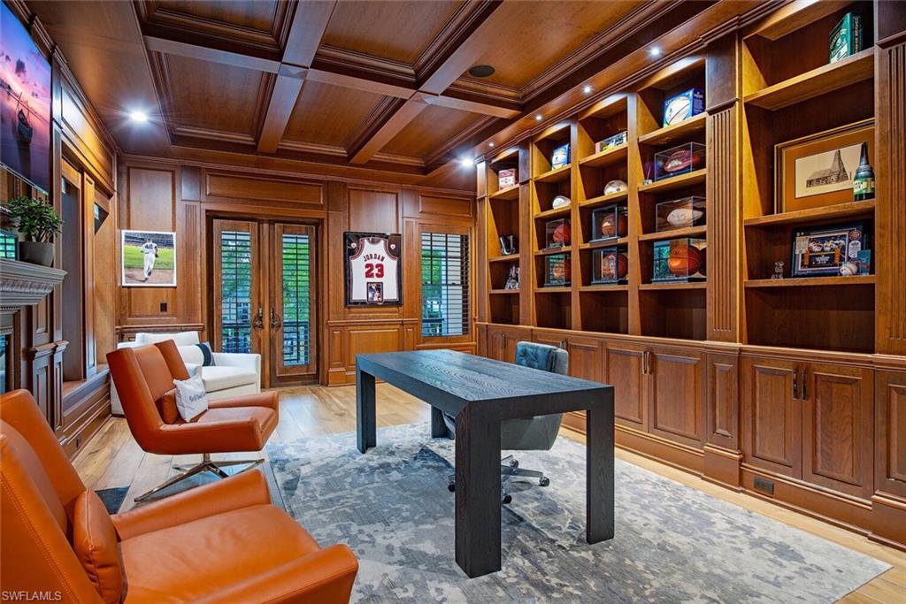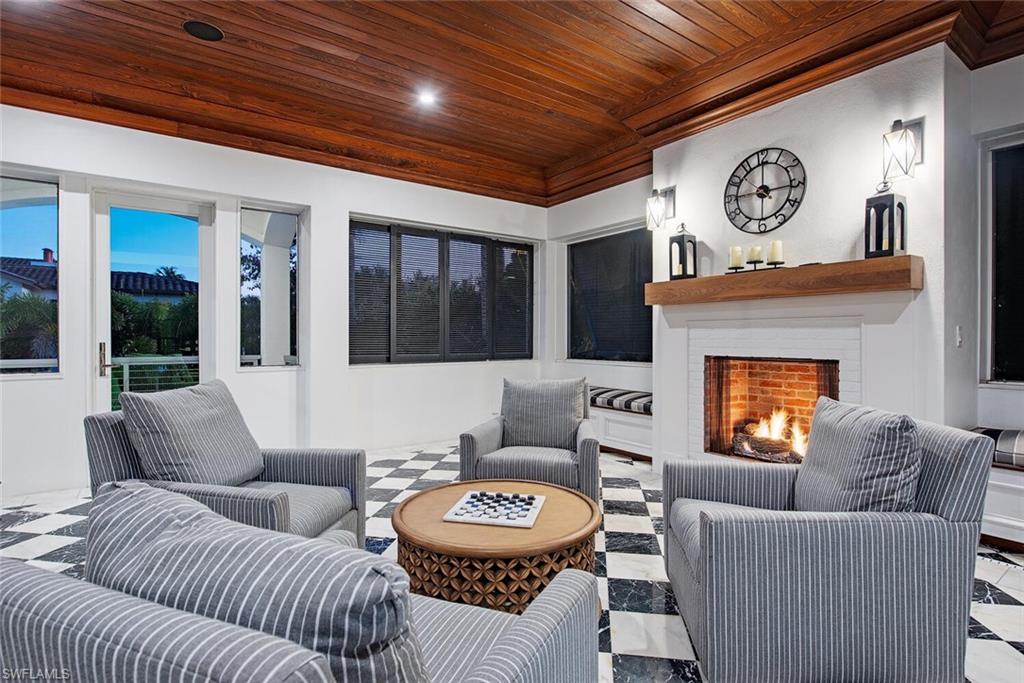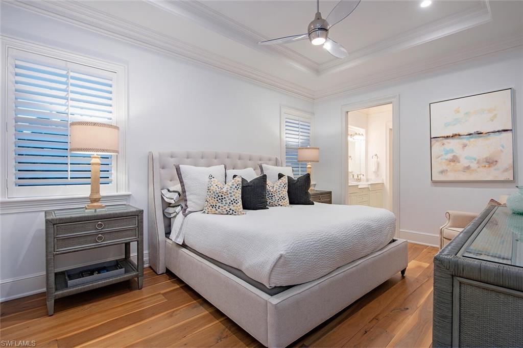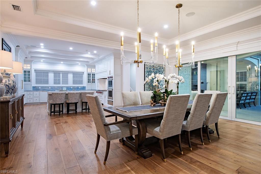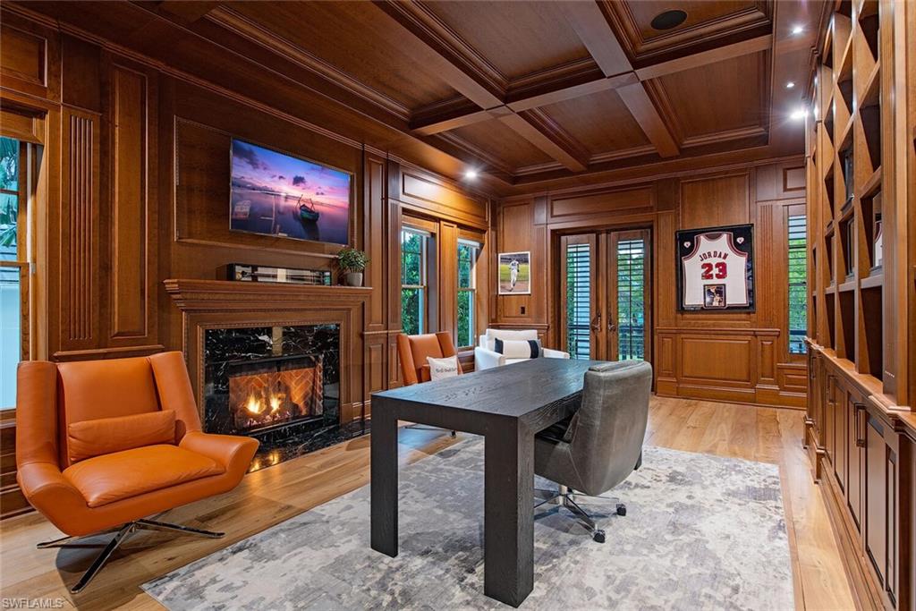 A landmark, custom built, Old Naples estate just four homes from the Gulf. Elevated and recently renovated, this exceptional residence offers over 7, 500 square feet of refined AC-living with timeless architecture and exquisite craftsmanship. Features include a grand two-story foyer, coffered ceilings, rich millwork, library, formal dining, and expansive living spaces filled with natural light. The chef’s kitchen boasts Wolf and Sub-Zero appliances, dual islands, marble prep areas, butler’s pantry, and wine cellar. The luxurious master suite offers a sitting area, dual walk-in closets, spa bath, and private balcony. Outdoor living includes a heated, salt system pool and spa, outdoor kitchen, fireplace, lush landscaping, and shaded entertaining areas. Rare, air-conditioned garage for 10+ vehicles, impact windows and doors, private elevator, and generator. High and dry, moments to beaches, dining, and shopping—this is Old Naples luxury at its finest.
