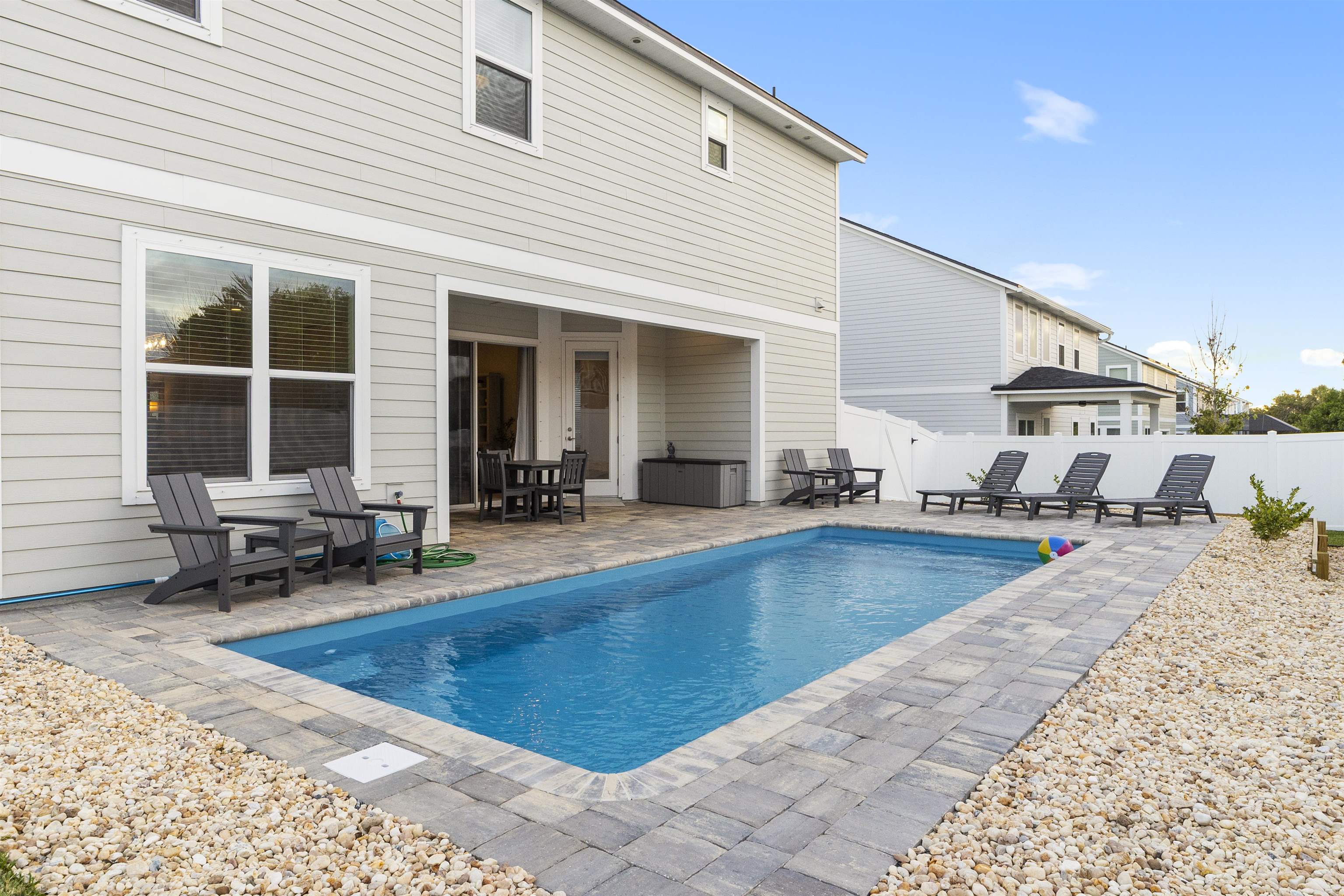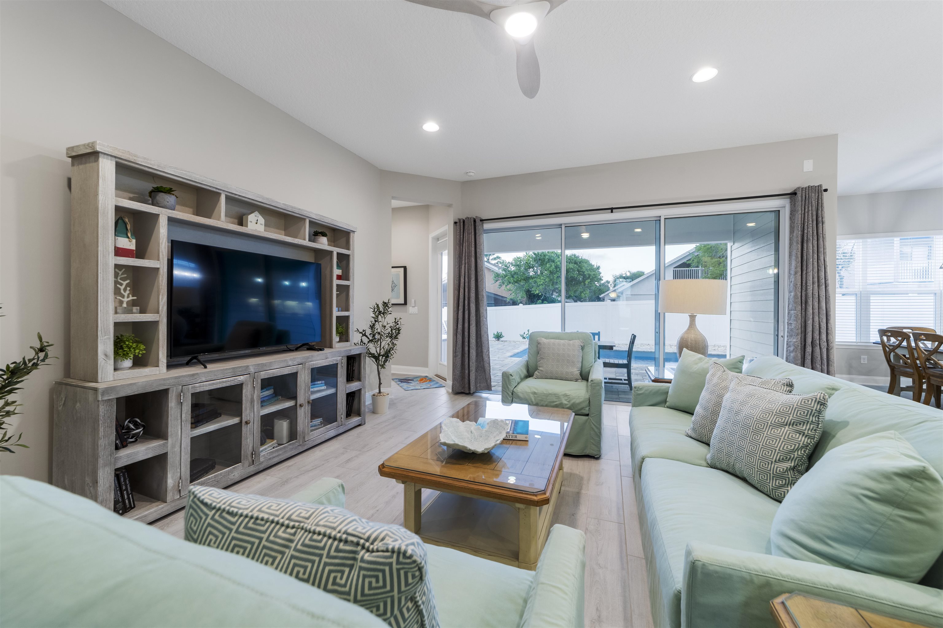 Move right into your coastal pool home at Seaside Vista today! This beautiful, luxurious home is available furnished or unfurnished. Only a few homes from the ocean via the community beach walkover. This 5-bedroom, 4-bathroom home is located in South Ponte Vedra Beach in a small HOA community of 28 homes. No detail has been overlooked! The gourmet chef's kitchen features high-end appliances, a huge walk-in pantry, and a casual dining area overlooking the pool! An oversized family room overlooks the heated pool and patio. A relaxed, formal dining room on the opposite side of the stairway is excellent for family meals or hosting guests. A first-floor bedroom and a first-floor bathroom are a great addition to the main floor. Upstairs, you will find the large primary ensuite bedroom, as well as 3 additional bedrooms and 2 full bathrooms. A big loft-style great room is perfect for hosting family and guests alike. The large ocean/beach-view balcony is directly off the great room and is a great place to catch up with friends or read a book! This home also features a 2-car garage with ample storage and plenty of room for your cars. The backyard oasis features a heated pool with plenty of outside seating areas. On the side of the home, you will find a custom elevated walkway leading to an outdoor shower. The walk to the beach is only a few minutes from your front door! This home is sure to please and is move-in ready. All furnishings are high-end and may be negotiated outside of the sale of the house.