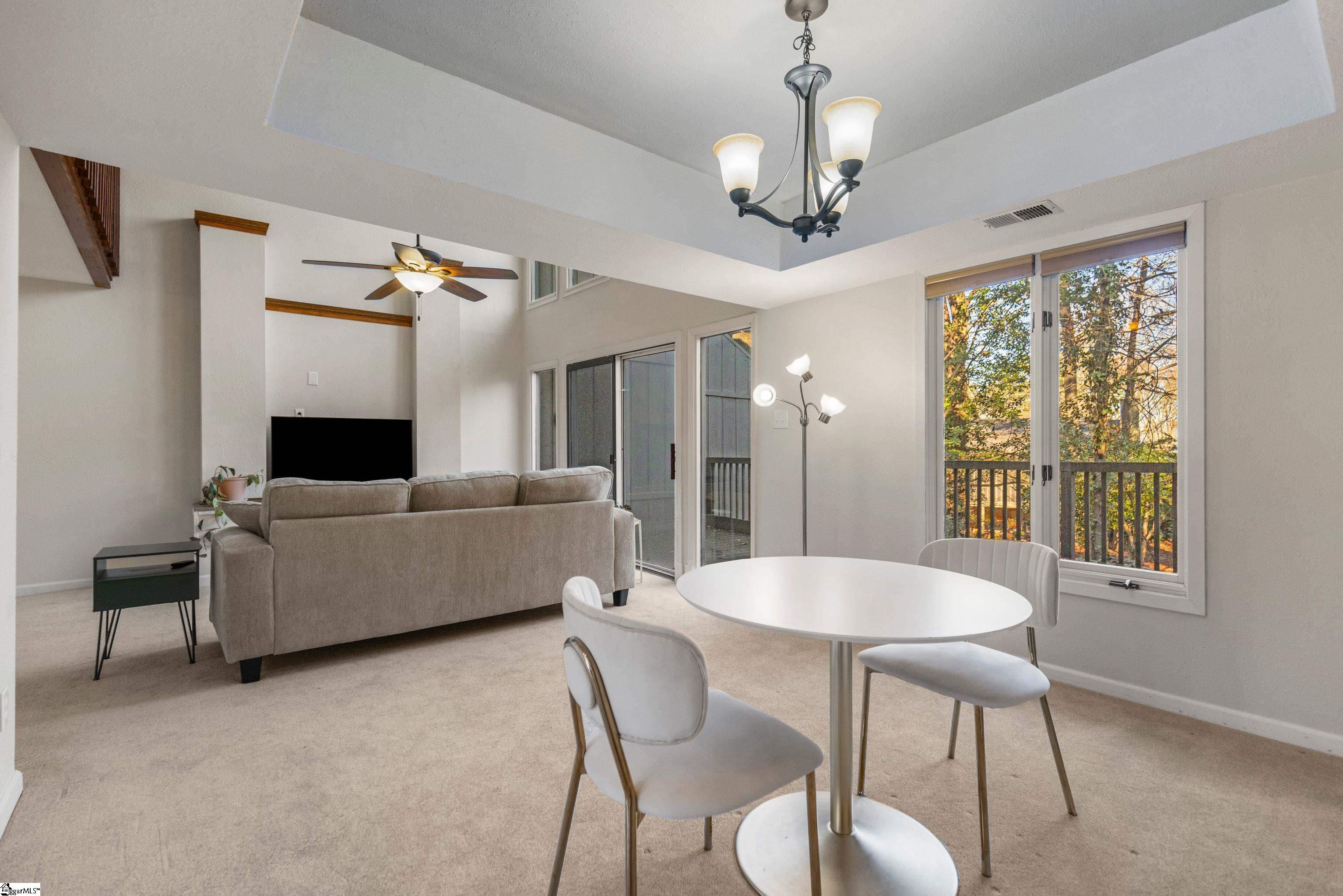 Ideally located off Pelham Road in Greenville, this 2-bedroom, 2. 5-bath condo offers comfort, style, and convenience just minutes from Downtown Greenville, Haywood Road shopping and dining, and Interstate 385. The bright and open living room features dramatic two-story glass, flooding the space with natural light and creating a welcoming atmosphere. Smooth ceilings throughout enhance the home’s clean, modern feel. Both bedrooms include private full bathrooms, making the layout perfect for homeowners or guests alike. The main bedroom features French doors leading to a new private balcony, ideal for morning coffee or evening relaxation. Additional highlights include a large laundry room, a new HVAC system installed in 2023, and a washer and dryer purchased in 2023 that convey with the condo for added convenience. Enjoy low-maintenance living with access to community amenities including a pool and tennis courts. This well-appointed condo combines location, upgrades, and lifestyle—an excellent opportunity to enjoy everything Greenville has to offer.