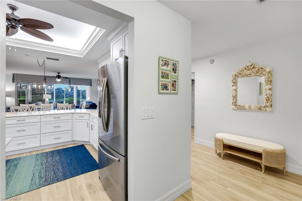 Beautifully updated, this first-floor residence in Waterford at Bonita Bay offers sweeping golf course views that put you right in the action on the greens while maintaining a peaceful, private feel. Recent enhancements include new flooring throughout the main living areas and screened lanai, along with a remodeled kitchen featuring new countertops, updated hardware, and stainless steel appliances—creating a fresh, modern space. The thoughtfully designed layout features three bedrooms with each guest suite enjoying its own private bath and generous proportions in their own right. A two-car garage adds rare convenience and storage, allowing this condo to live with the comfort and ease of a single-family home. Residents of Waterford enjoy a private community pool and a prime setting within Bonita Bay, one of Southwest Florida’s most coveted communities. Bonita Bay offers tennis and pickleball, 12. 5 miles of scenic walking and biking trails, a full-service marina, and a private beach park on the Gulf. There is also the optional membership to Bonita Bay Club, featuring five championship golf courses and world-class amenities. An exceptional opportunity awaits to enjoy updated interiors, captivating views, and a premier coastal lifestyle in Bonita Bay.