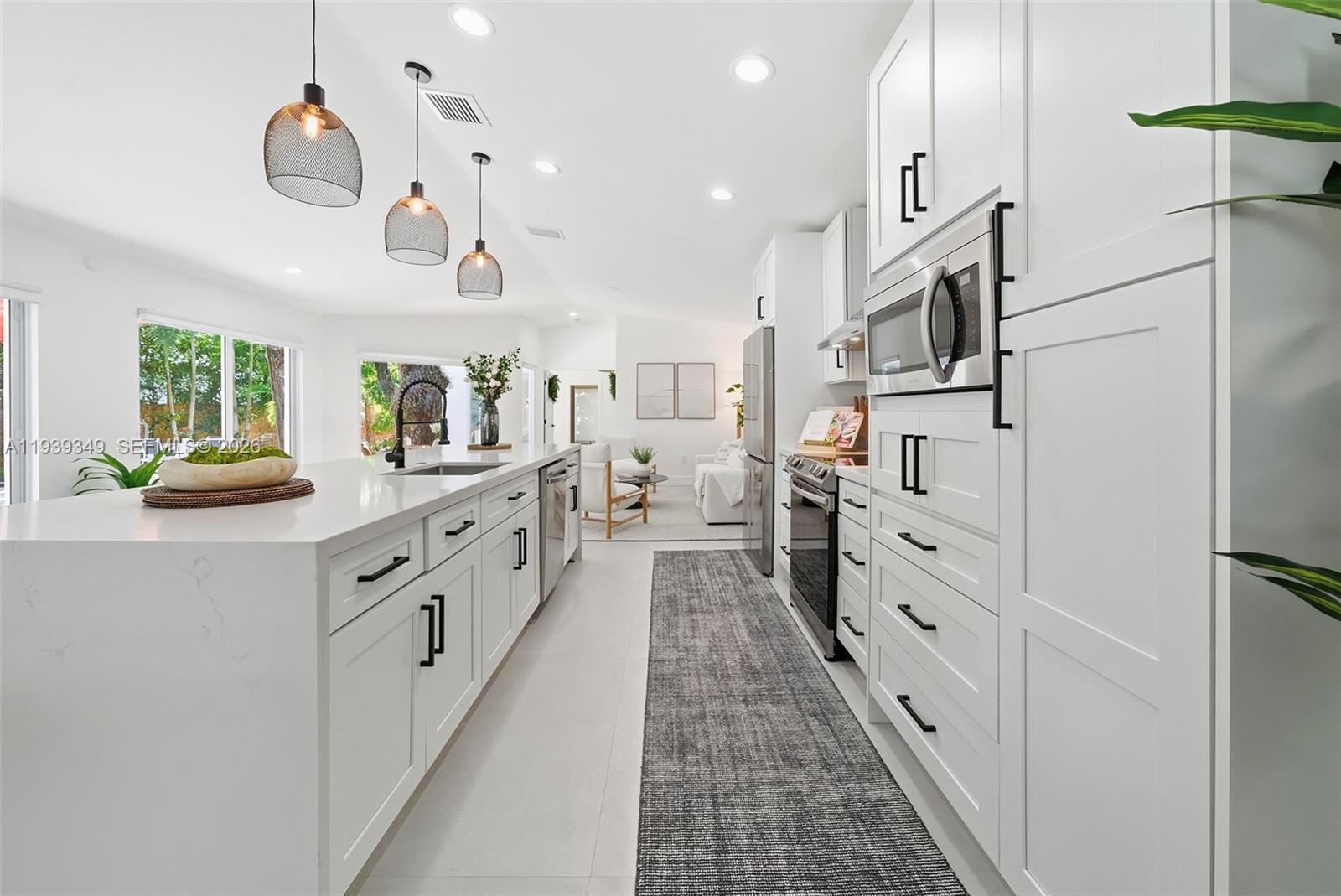 Nestled in the desirable South Coconut Grove neighborhood, this 4-bedroom, 2. 5-bathroom home feels like a private tropical retreat, surrounded by spectacular foliage and canopied oak trees. Beautifully renovated and move-in ready, this one-story corner-lot residence features a modern kitchen with updated bathrooms, vaulted ceilings, all impact-glass windows and sliding doors, and loads of natural light, offering serene views of oak trees, landscaping, and the pool from nearly every room. The fourth bedroom is currently configured as a family/media room but can easily be converted back to a bedroom. Enjoy spacious parking, security, and privacy behind a motorized gate & coral rock wall, with the convenience of walking or biking throughout the Village of the Grove. Ideally located near Miami’s best urban neighborhoods, this home offers the perfect blend of privacy, charm, and accessibility.