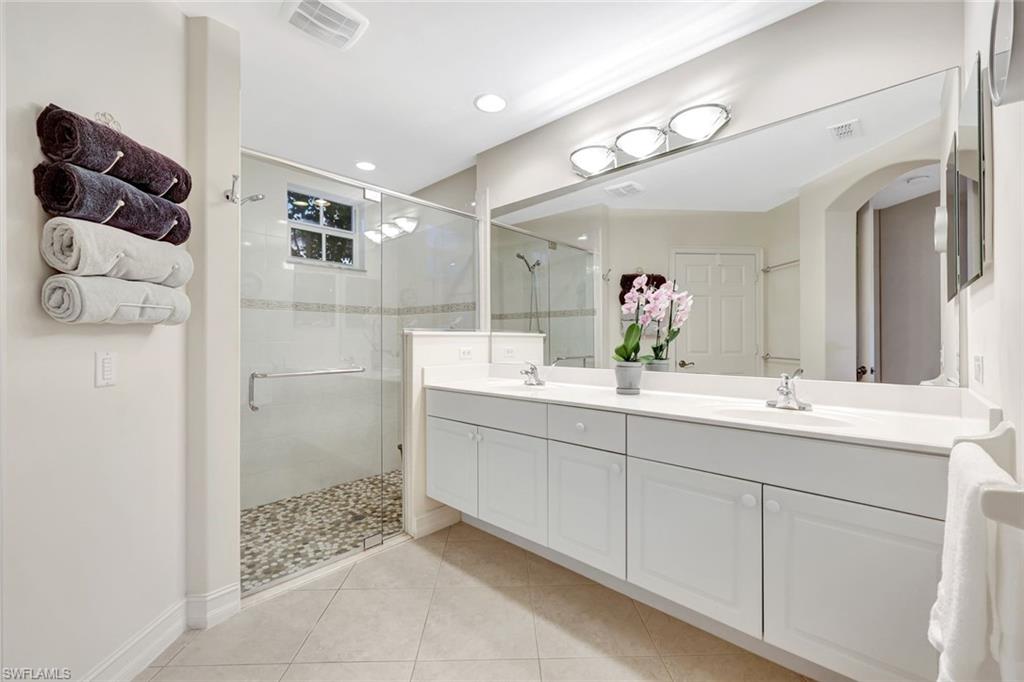There Is NO better view in Pelican Sound! From the moment you enter, this home pulls you to the gorgeous lake and golf-green view right outside your new 9-foot-tall Cat 5 rated patio doors. The new Cat 5 doors are designed to give you the best use of your lanai space as the owners opted to put the 4 section doors on the exterior wall of the home and leave the sliding glass doors that separate the living area from the lanai. This has created a wonderful four-season room that can be air conditioned, or the 2 screened center sections can be opened to let in our ‘winter’ breezes! The windows are also Cat 5 impact glass for your peace of mind. This home is light and bright with fresh paint in the entry and living area that gives a sunny and comfortable feeling! This home has always been gently used and all systems meticulously maintained. Owner has updated the master bath shower with a frameless glass enclosure and classic ‘penny round’ stone flooring. Both toilets are newer and Elongated COMFORT HEIGHT! High quality, newer MAYTAG washer and dryer; NEWER ceiling fans! Open-plan kitchen brings everyone together for every event and gathering; Featuring granite countertops, newer ‘Insinkerator’ ¾ HP disposal; Amazing HALO WHOLE HOUSE WATER FILTRATION entails NO maintenance, and you will love the improvement in your water! Offered partly furnished (inventory attached) and includes quality mattresses and 4 lb density memory foam toppers too! New roofs, new gutters and exterior paint in 2024. LOWER QUARTERLY FEES because of lower insurance costs! Pelican Sound is widely considered to be the best bundled golf in the region and features direct Gulf access on the scenic Estero River! Recently re-imagined and re-built River Club and Golf Club are debt free. The Golf Club and the wildly popular River Club encompass 4 fabulous dining opportunities – the Vista Room for elegant dining and dancing; the Pelican Pub for indoor and outdoor food and fun; the Pavilion for open-air casual dining! Don’t miss the 5 large fire pit seating areas out on the patio! Put in your own boat and enjoy beautiful scenery and bird life on your way to the Bay and the Gulf of Mexico. You can store your boat right in the secure storage area, for minimal cost. Don’t want your own boat but love the water and the beach? Hop on the community water taxi and take the most relaxing trip to our to scarcely used- except by the birds – Lover’s Key State Recreation Area, right on the Gulf! It’s like living in a resort, offering world class pickle ball with 14 courts, great tennis facilities with 8 har-tru courts, plus bocce ball, 6 heated resort style pools, spas, and children’s and dog parks. Amazing, attended fitness center where you can even get PT! Miles of sidewalks and trails to get fit out in the abundant Florida sunshine. Situated quietly west of US 41 on the scenic Estero River, yet very close to world-class shopping and restaurants and a short 15 minutes the SWFL airport too!