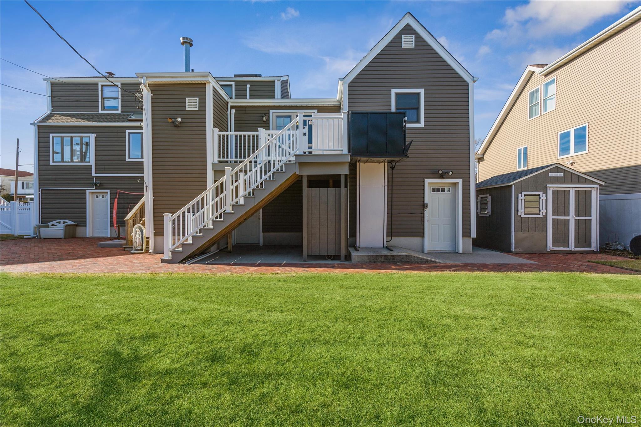 FEMA-Compliant Raised Home with Flexible Living Space & Oversized Yard. Welcome to this well-maintained home offering 4 bedrooms, 2 full bathrooms, and exceptional flexibility for today’s lifestyle. The entry level features a den with access to a deck and stairs leading to the backyard, along with a laundry and utility room and abundant storage in the partially finished lower level. An exterior elevator lift provides convenient access to the main living areas. The main level includes an open-concept kitchen, dining, and living area, highlighted by stainless steel appliances, granite countertops, a peninsula with additional seating, and a skylight that fills the space with natural light. The living room features a wood-burning fireplace, creating a warm and inviting atmosphere. This level also offers a bedroom or home office and a full bathroom. Split A/C units serve the den and kitchen/living area for added comfort. The second level features a spacious primary bedroom with ample closet space, skylight, and split A/C unit, along with a full bathroom with skylight and two additional bedrooms. An unfinished attic provides future expansion potential. Additional highlights include an unfinished room over the garage, ideal for a possible fifth bedroom or additional living space, hardwood floors beneath existing flooring, and an oversized, well-manicured yard complete with sprinkler system, outdoor shower and a shed with electric. This home offers comfort, accessibility, and room to grow—perfect for year-round living or a coastal retreat.